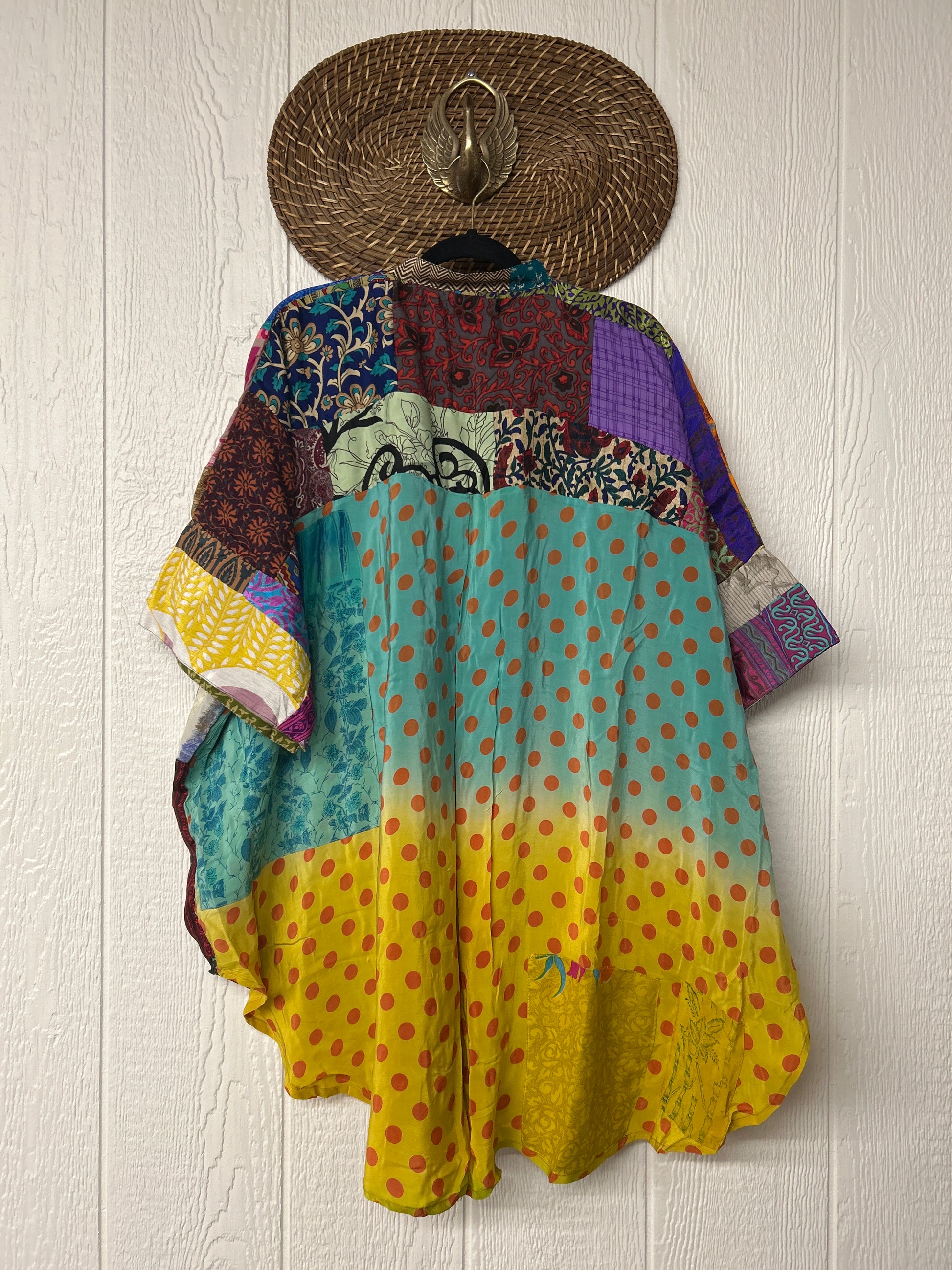 Made from hand-stitched patchwork vintage crepe sari, this billowy dream is fully lined in the front with cotton sari. Features a crepe panel in the back, functional buttons, two slouchy pockets in the front, and a curved bottom.