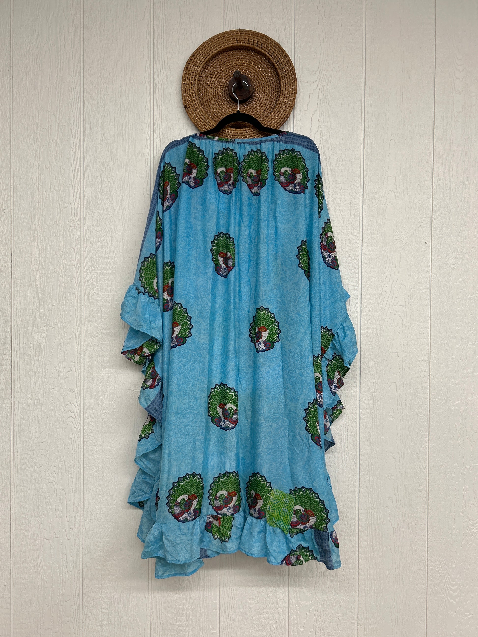 Fabrics may have small threads or holes in the layers. Color inconsistency or small stains may be present. The saris are sewn together and extend the life of each design. Imperfections should be celebrated.