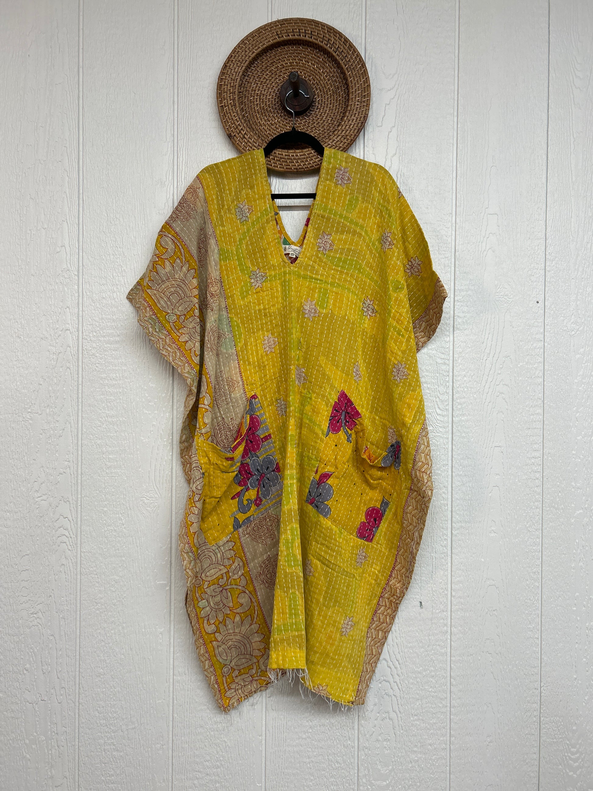 Disclosure: Our vintage styles have lived a full life before becoming the designs in our shop. Fabrics may have small threads or holes in the layers. Color inconsistency or small stains may be present. The saris are sewn together and extend the life of each design. Imperfections should be celebrated.