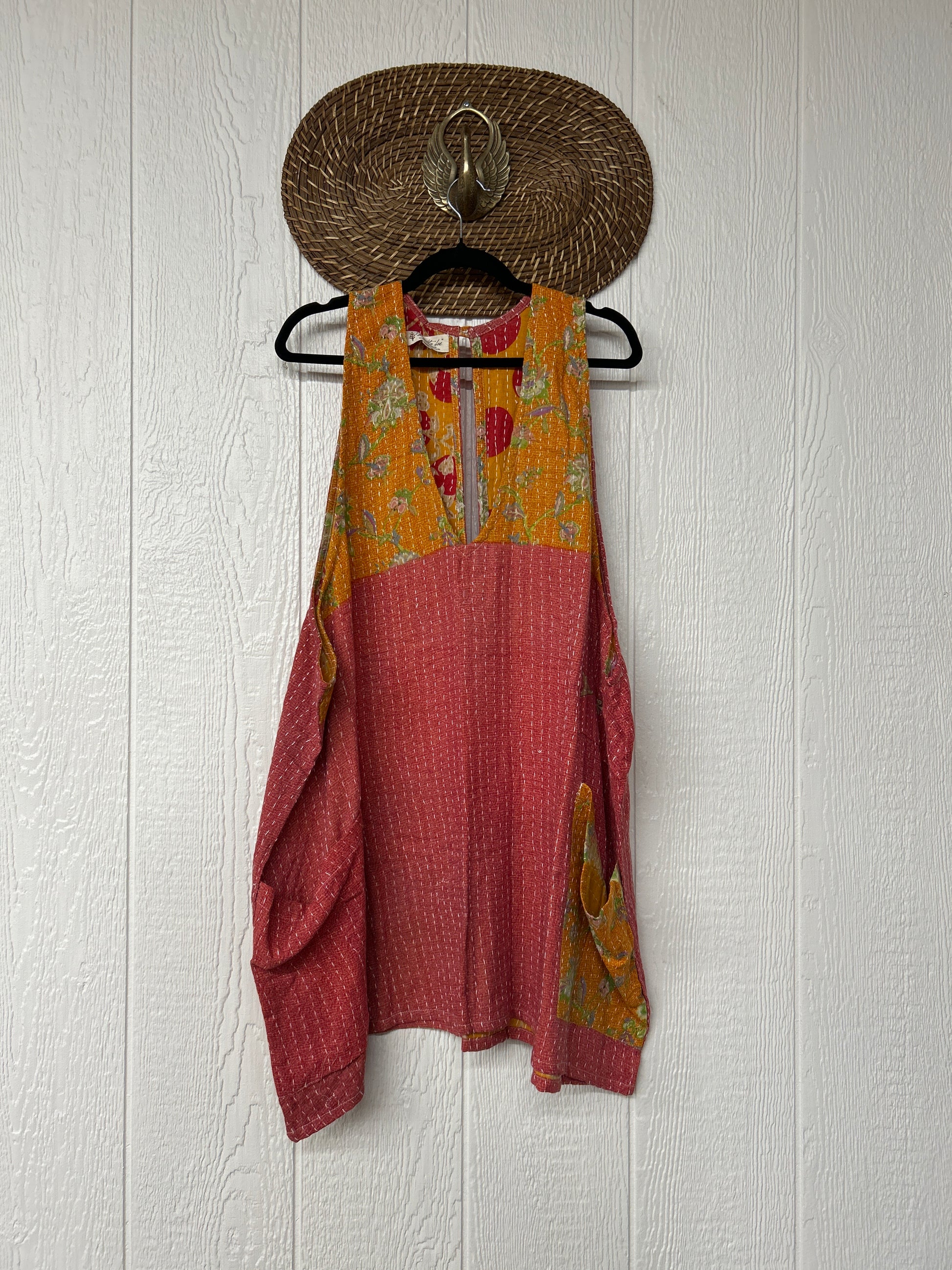 Our harmony mini dress is made from our vintage kantha stitched cotton sari.