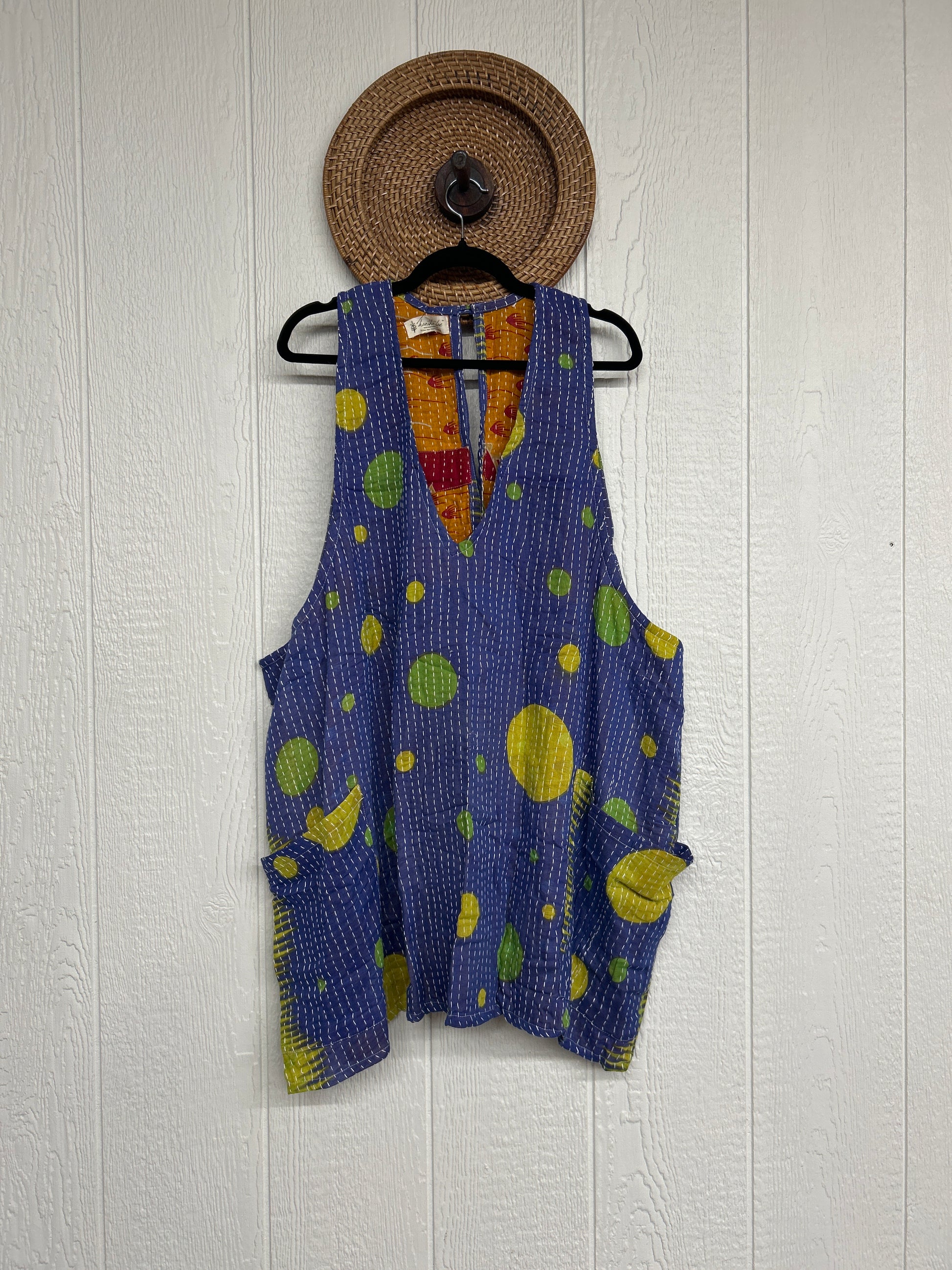 Disclosure: Our vintage styles have lived a full life before becoming the designs in our shop. Fabrics may have small threads or holes in the layers. Color inconsistency or small stains may be present. The saris are sewn together and extend the life of each design. Imperfections should be celebrated.