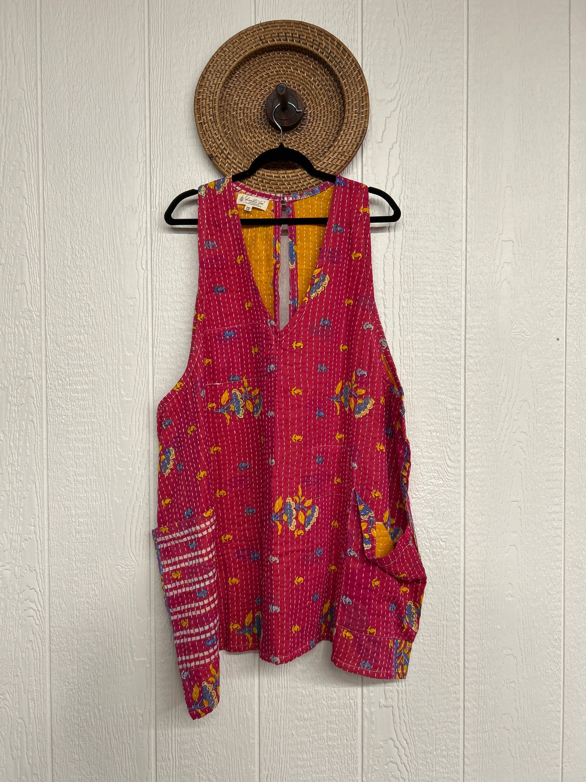Disclosure: Our vintage styles have lived a full life before becoming the designs in our shop. Fabrics may have small threads or holes in the layers. Color inconsistency or small stains may be present. The saris are sewn together and extend the life of each design. Imperfections should be celebrated.