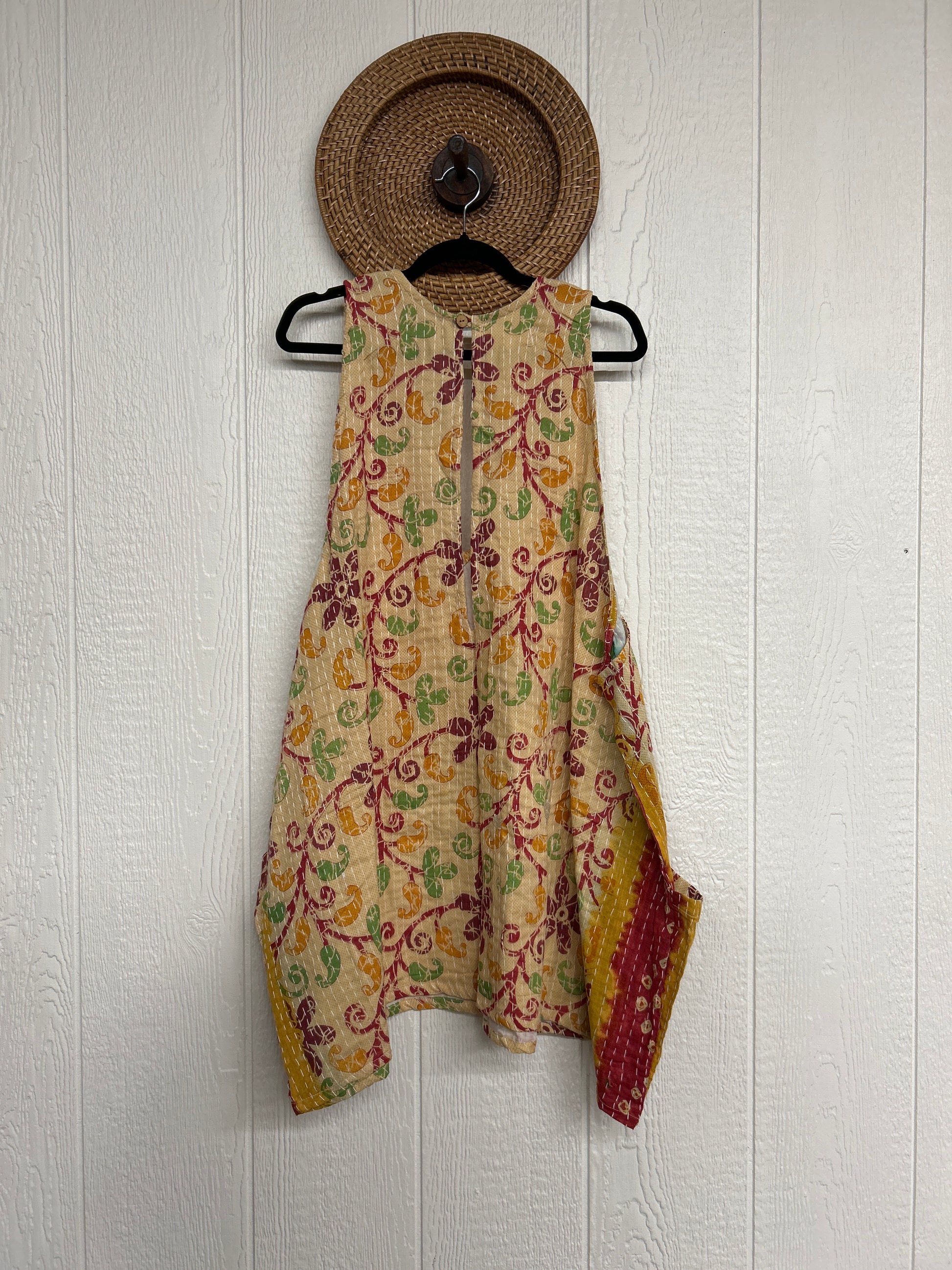 Disclosure: Our vintage styles have lived a full life before becoming the designs in our shop. Fabrics may have small threads or holes in the layers. Color inconsistency or small stains may be present. The saris are sewn together and extend the life of each design. Imperfections should be celebrated.
