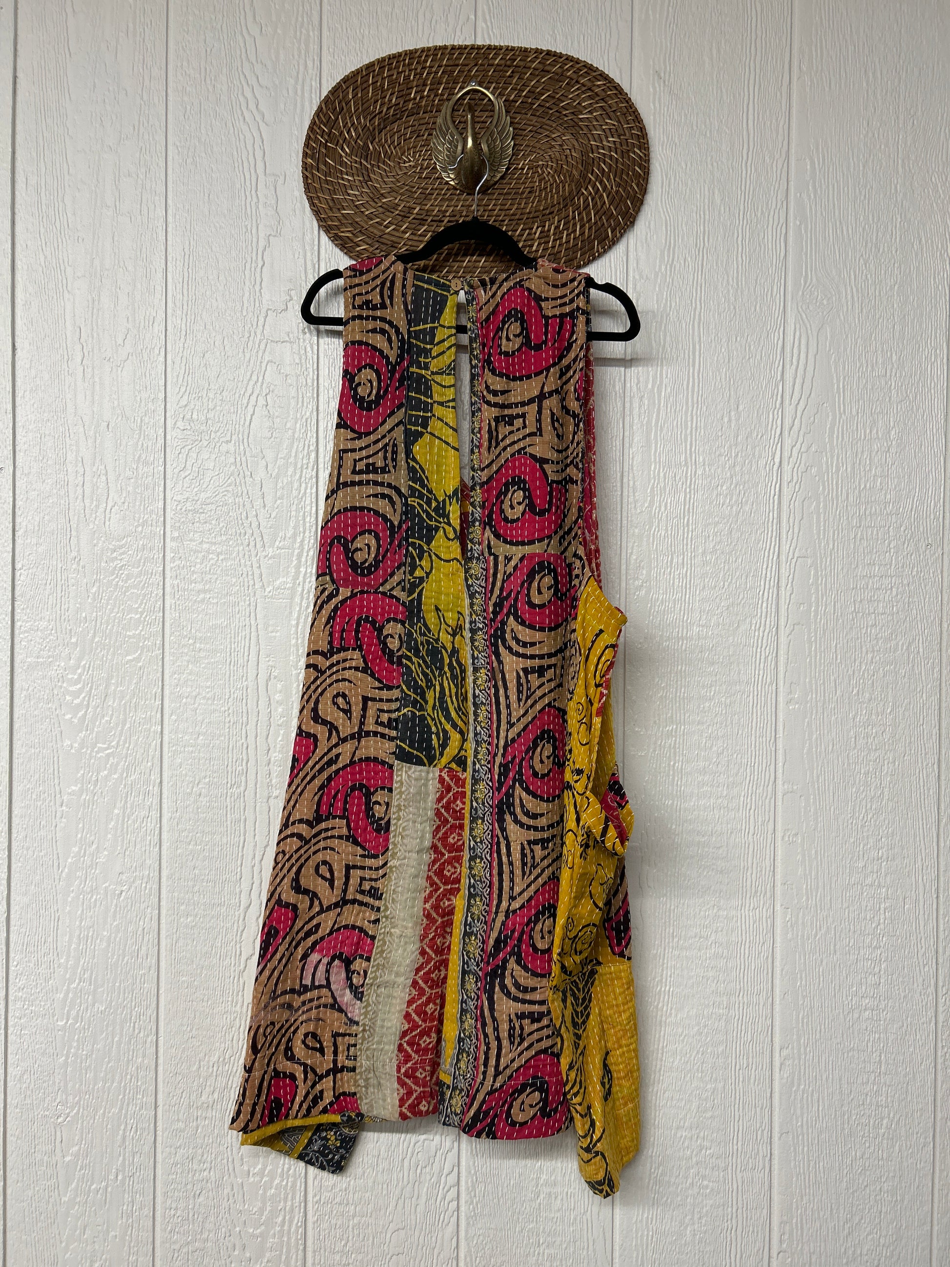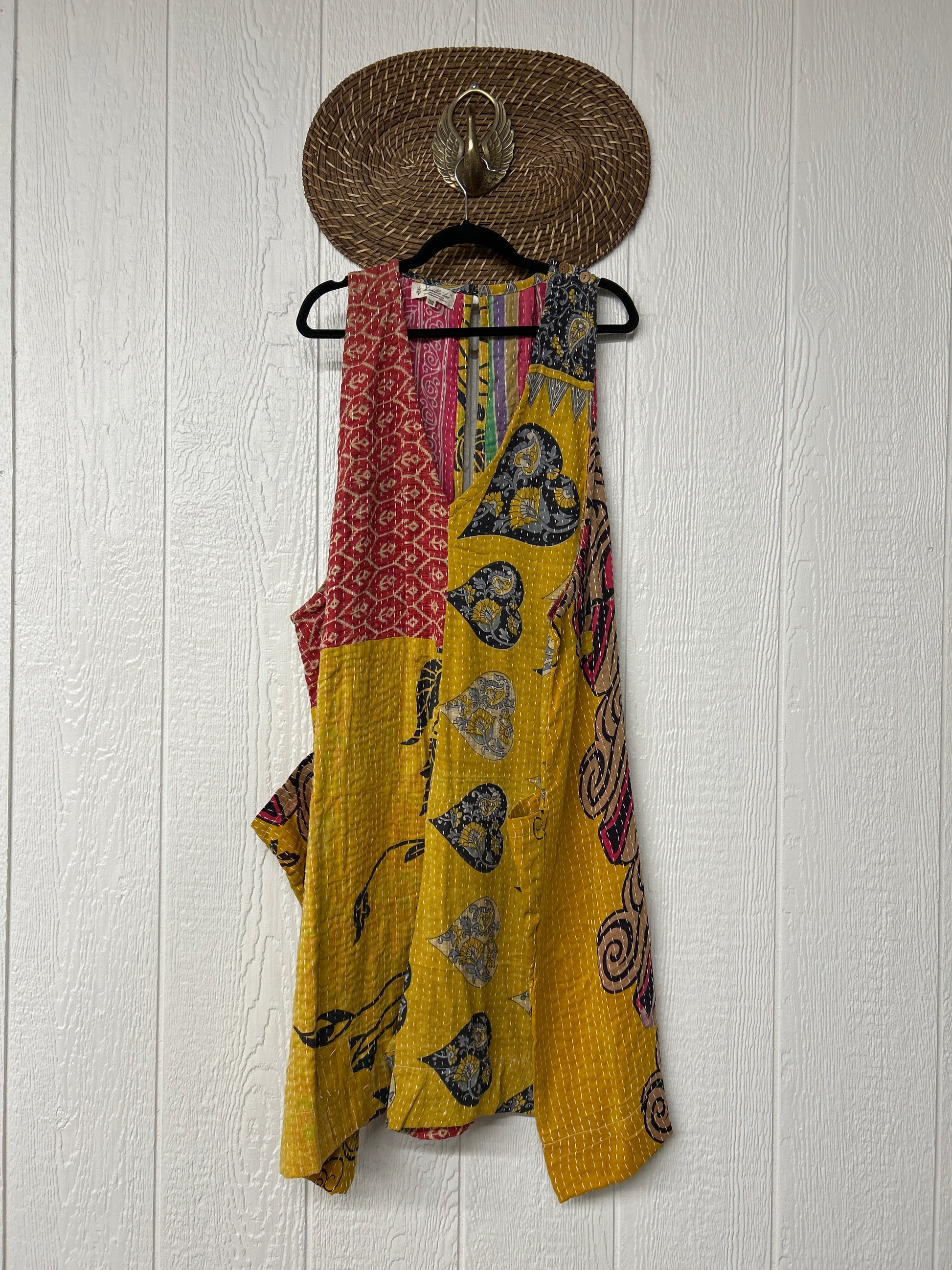 Disclosure: Our vintage styles have lived a full life before becoming the designs in our shop. Fabrics may have small threads or holes in the layers. Color inconsistency or small stains may be present. The saris are sewn together and extend the life of each design. Imperfections should be celebrated.