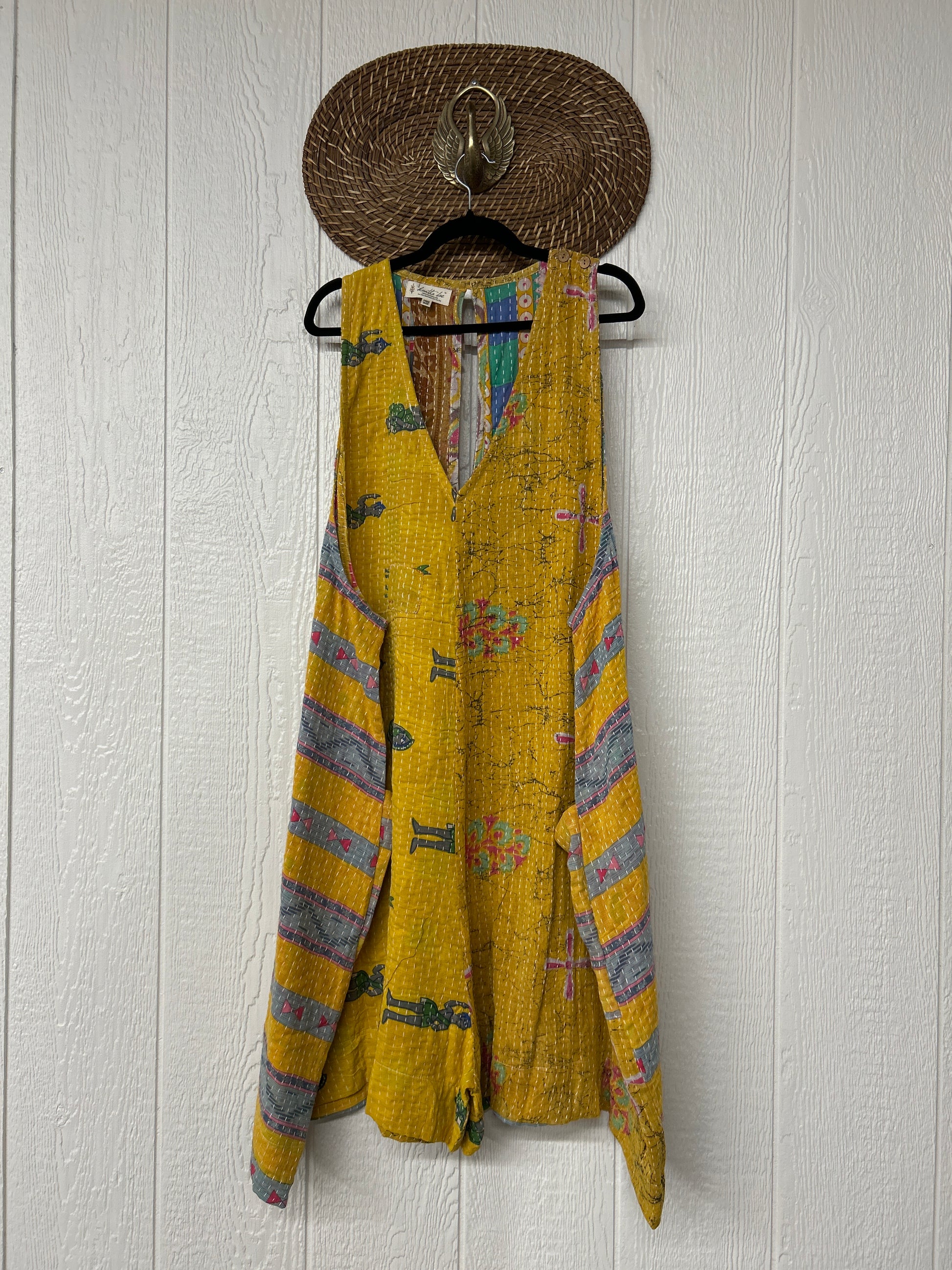 Our jumpsuit is made from our vintage kantha stitched cotton sari.