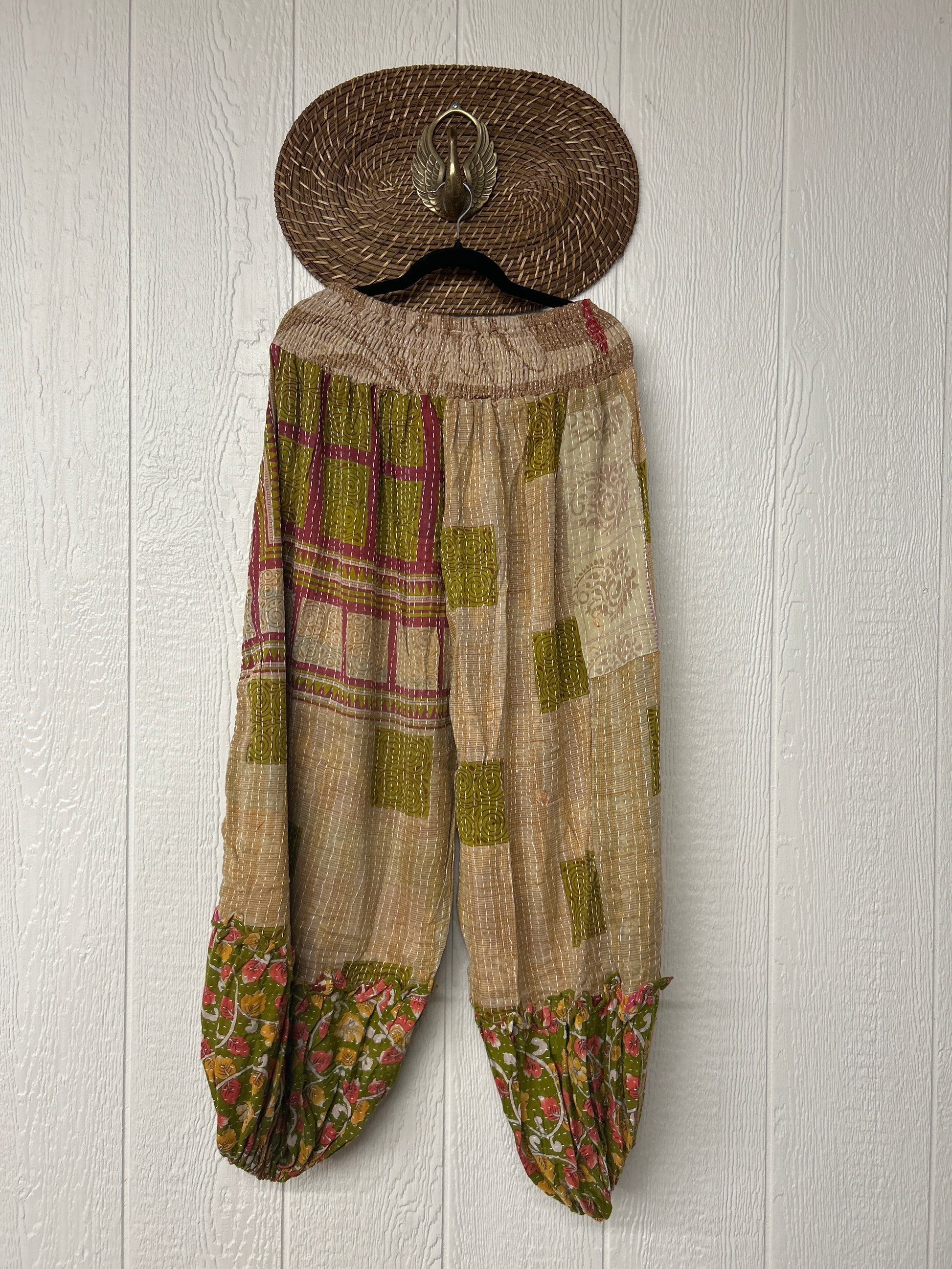 Crafted from our ultra lux kantha stitched vintage cotton sari these pants feature exterior slouchy pockets, a stretchy waistband and an elastic ankle opening. Dress these dream pants up or down to become the ultimate vibe!