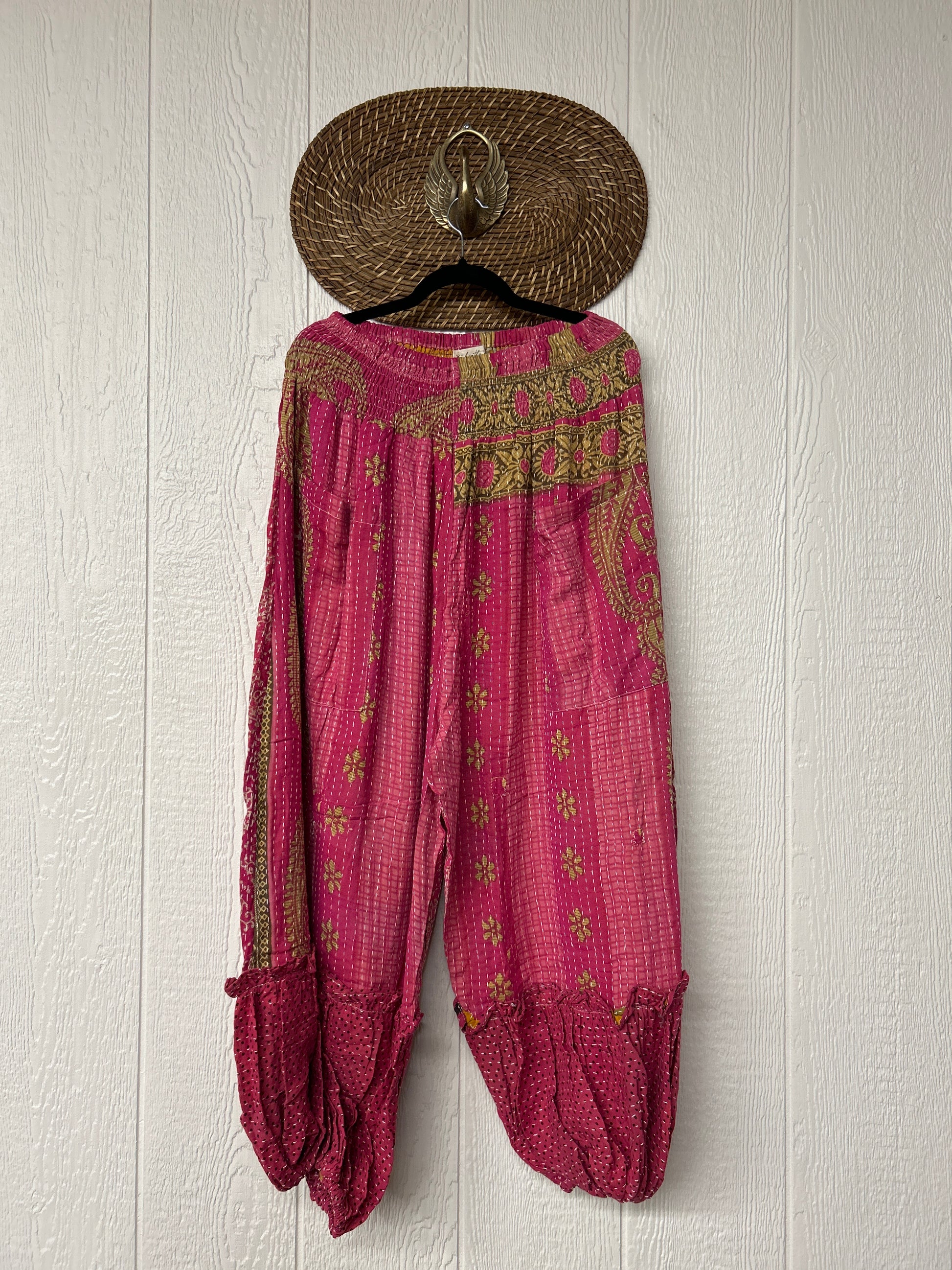 Crafted from our ultra lux kantha stitched vintage cotton sari these pants feature exterior slouchy pockets, a stretchy waistband and an elastic ankle opening. Dress these dream pants up or down to become the ultimate vibe!