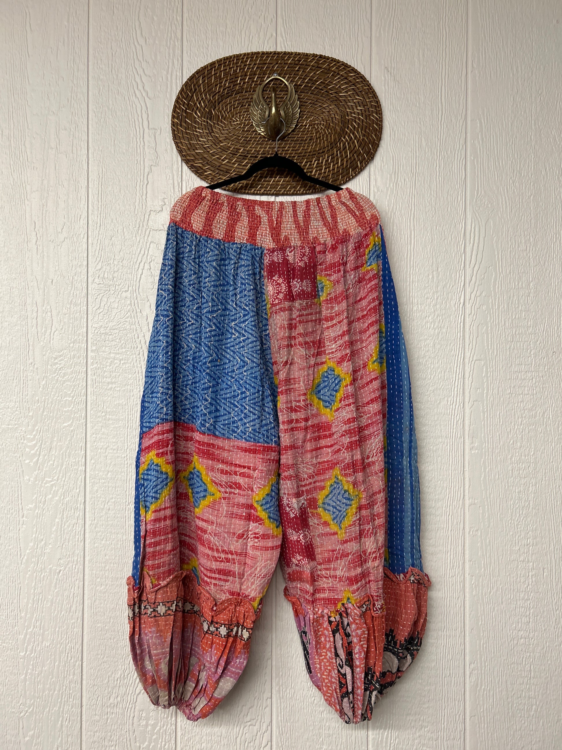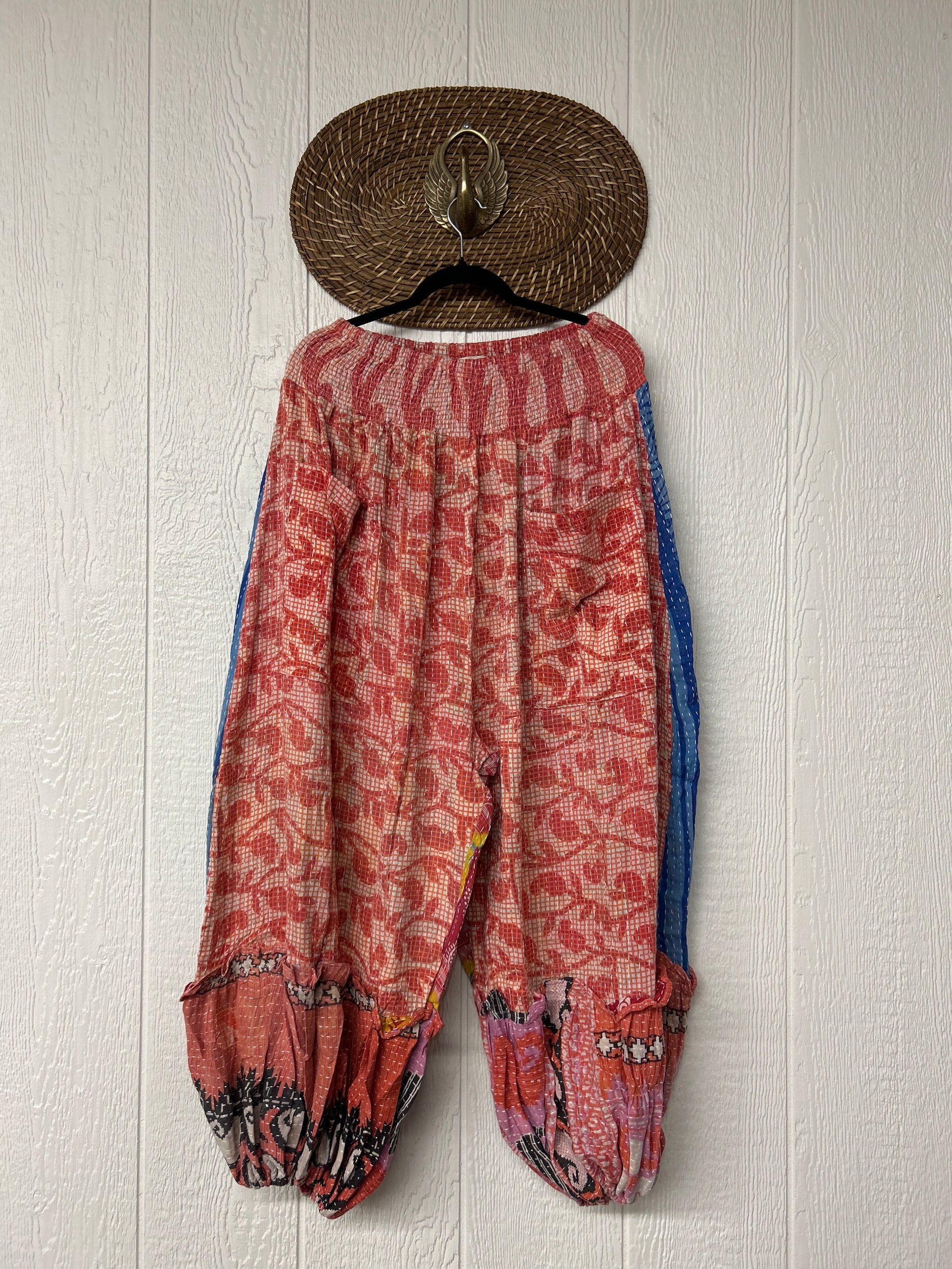 Crafted from our ultra lux kantha stitched vintage cotton sari these pants feature exterior slouchy pockets, a stretchy waistband and an elastic ankle opening. Dress these dream pants up or down to become the ultimate vibe!