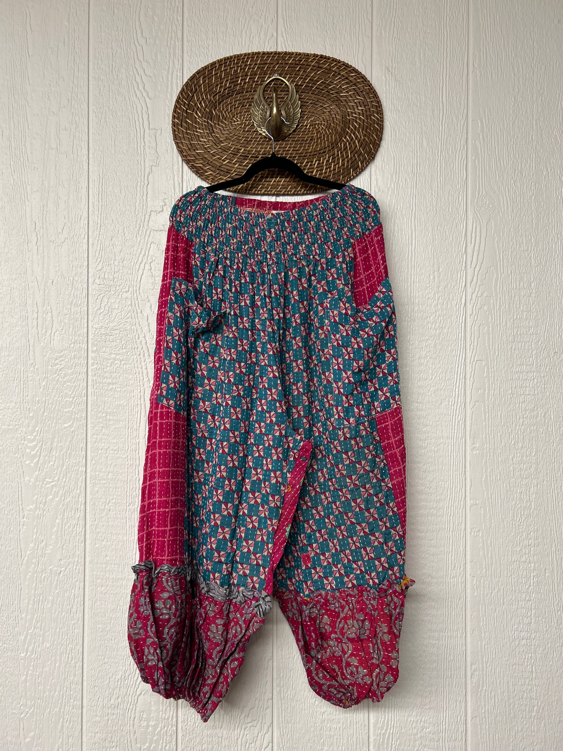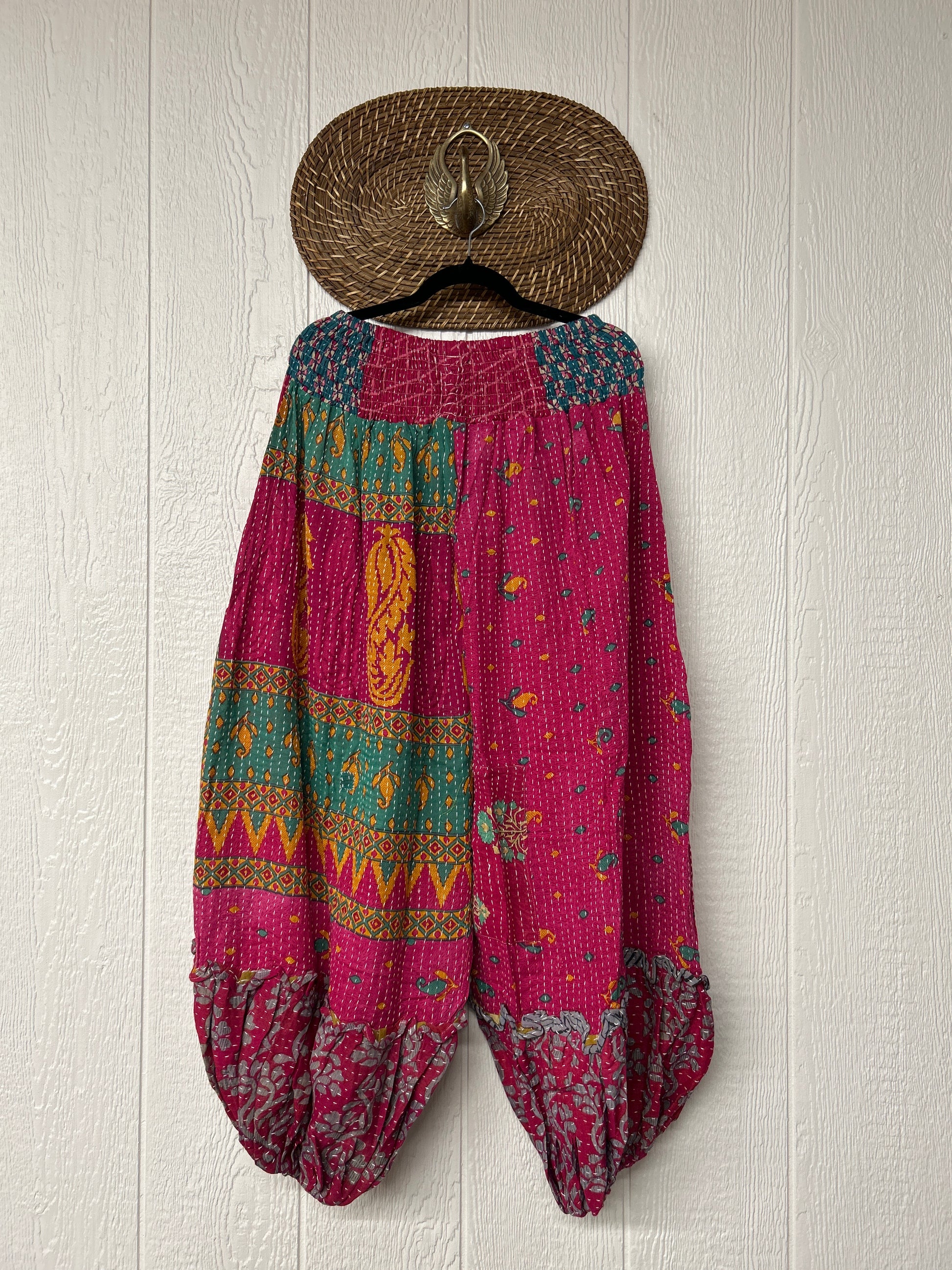 Crafted from our ultra lux kantha stitched vintage cotton sari these pants feature exterior slouchy pockets, a stretchy waistband and an elastic ankle opening. Dress these dream pants up or down to become the ultimate vibe!