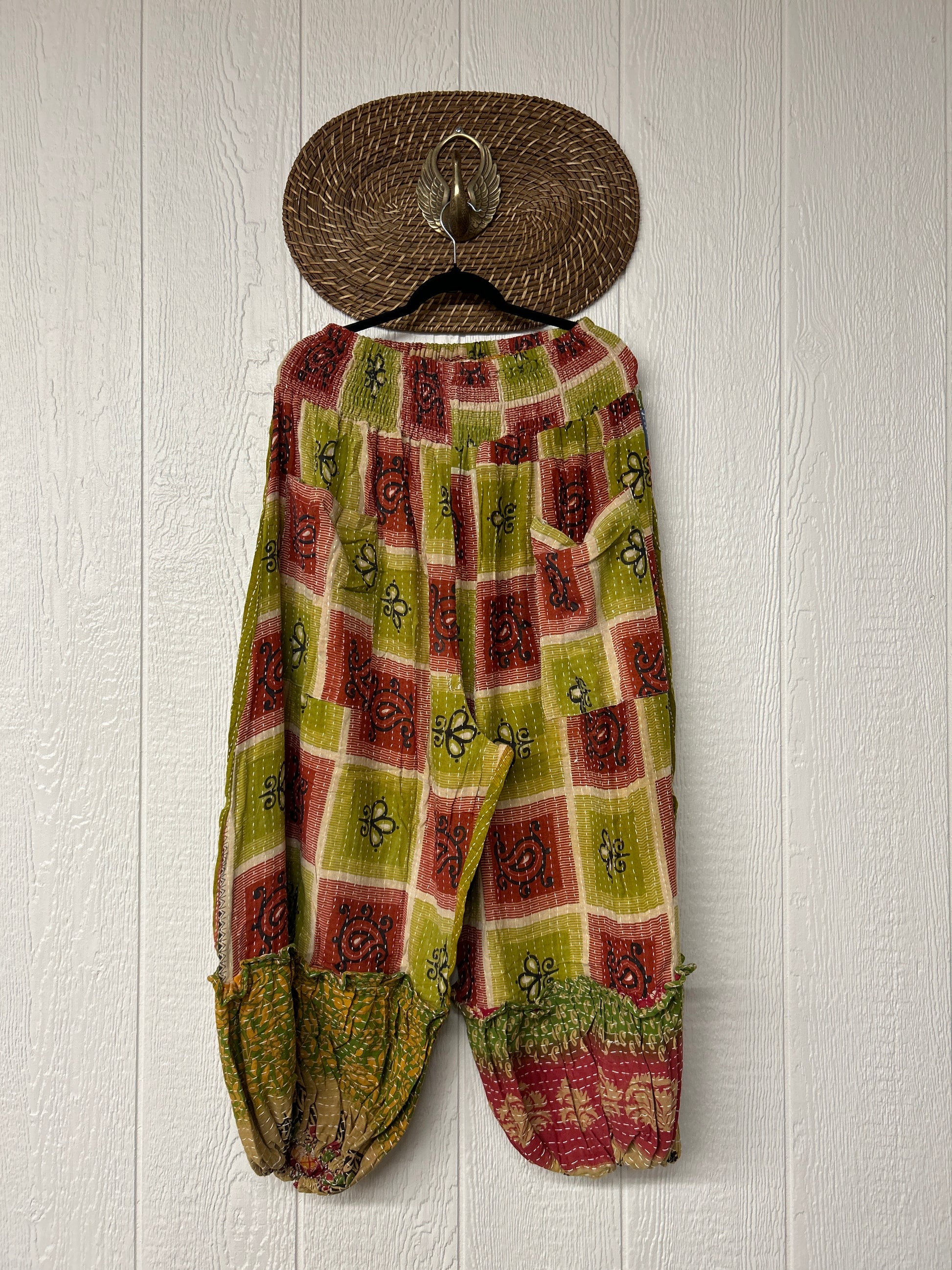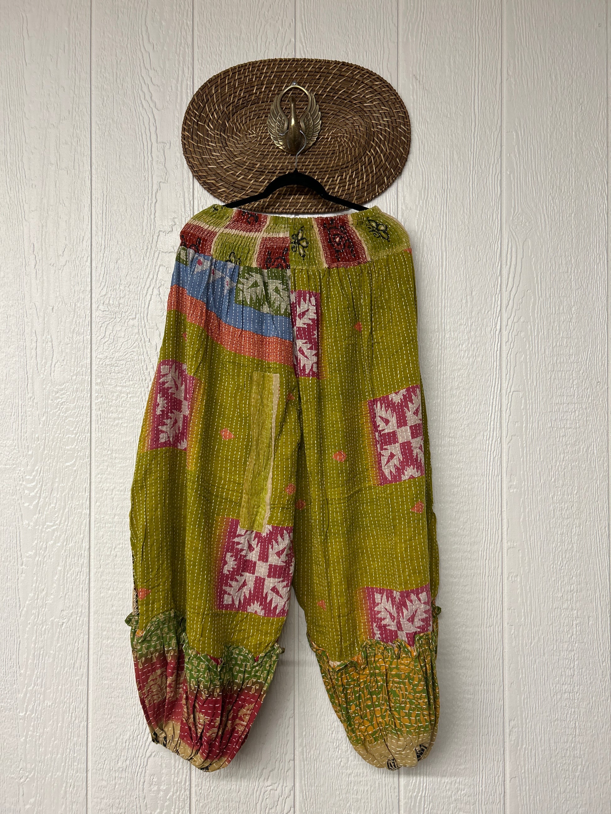 Crafted from our ultra lux kantha stitched vintage cotton sari these pants feature exterior slouchy pockets, a stretchy waistband and an elastic ankle opening. Dress these dream pants up or down to become the ultimate vibe!