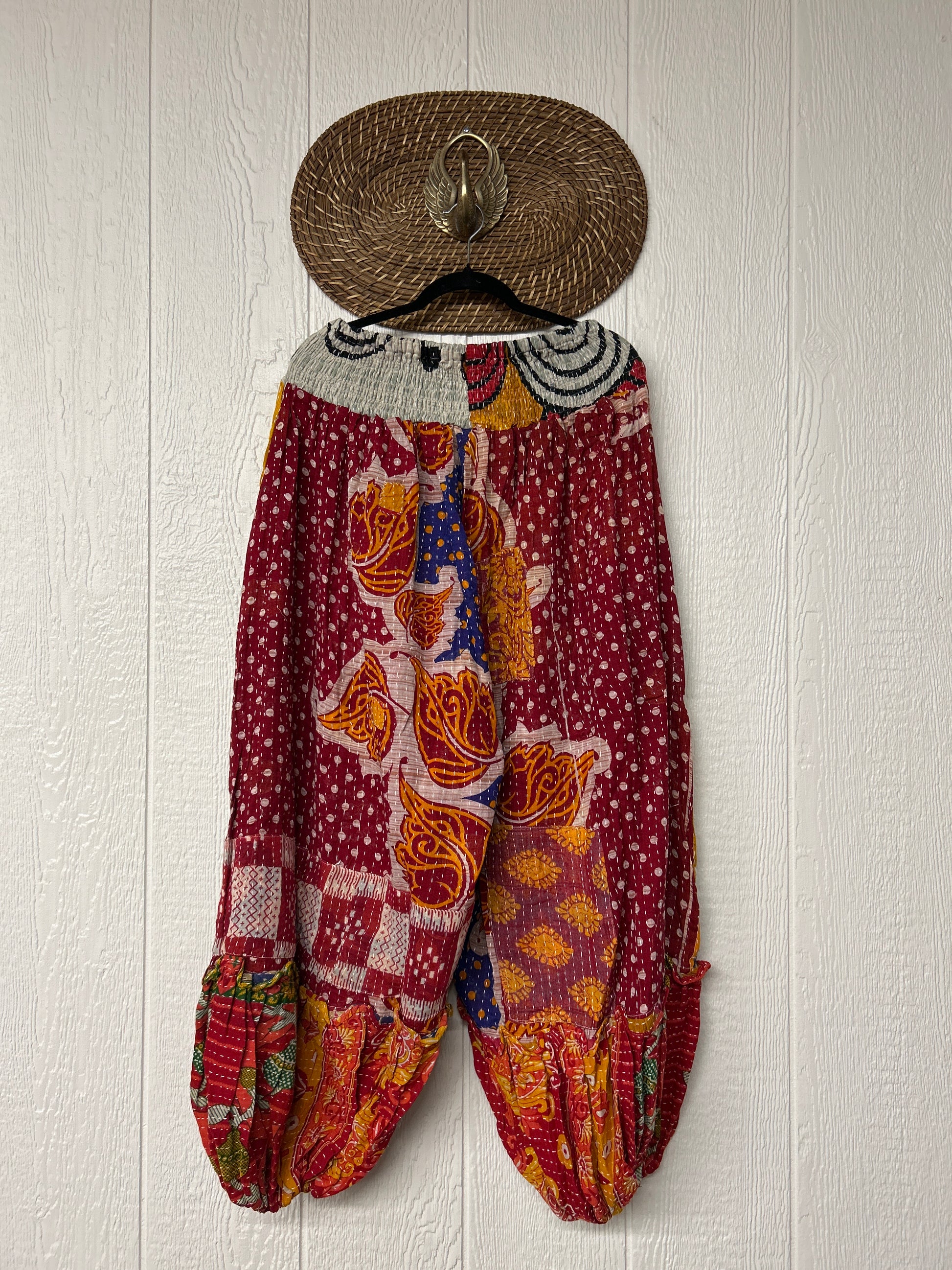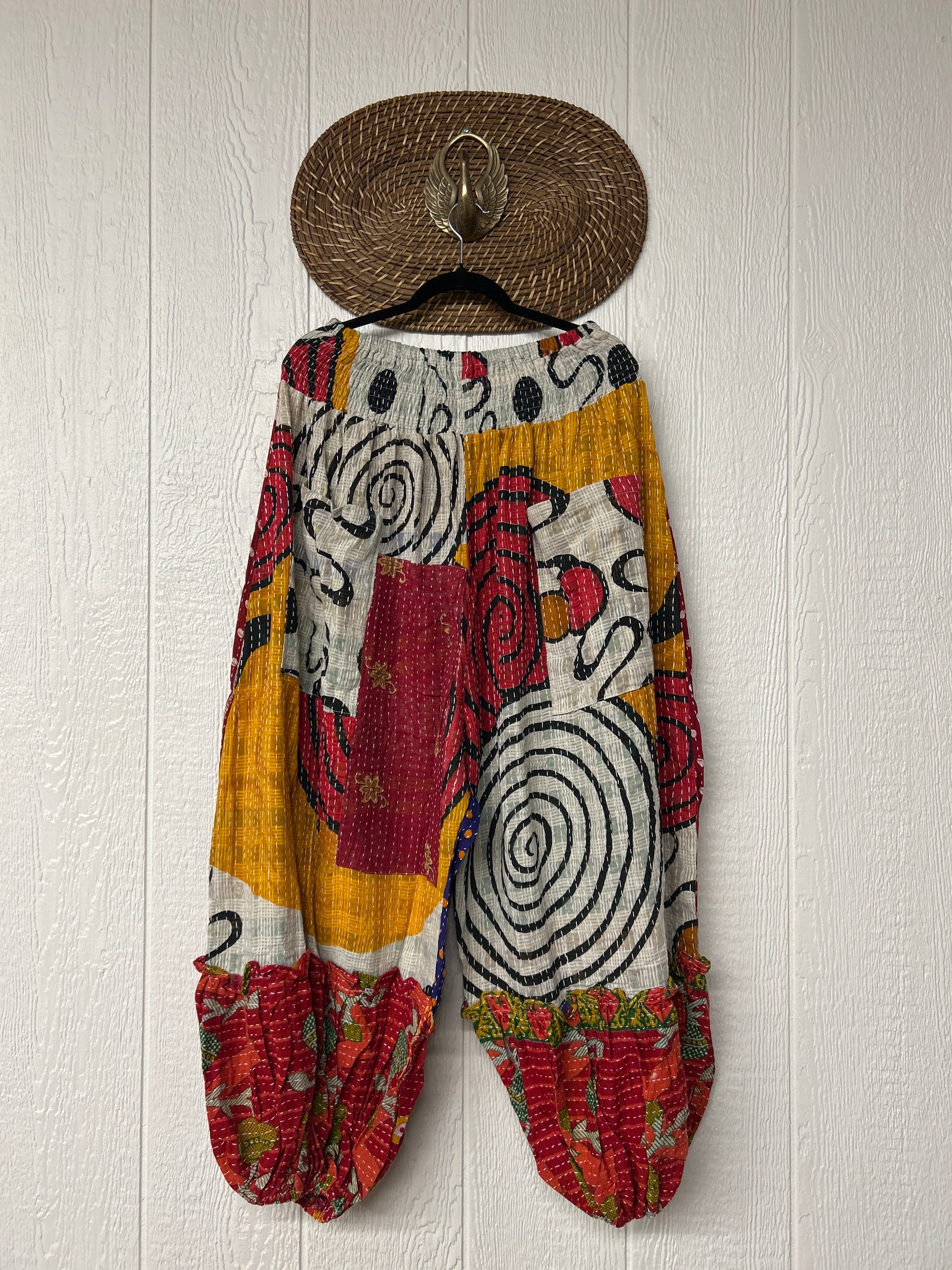 Crafted from our ultra lux kantha stitched vintage cotton sari these pants feature exterior slouchy pockets, a stretchy waistband and an elastic ankle opening. Dress these dream pants up or down to become the ultimate vibe!