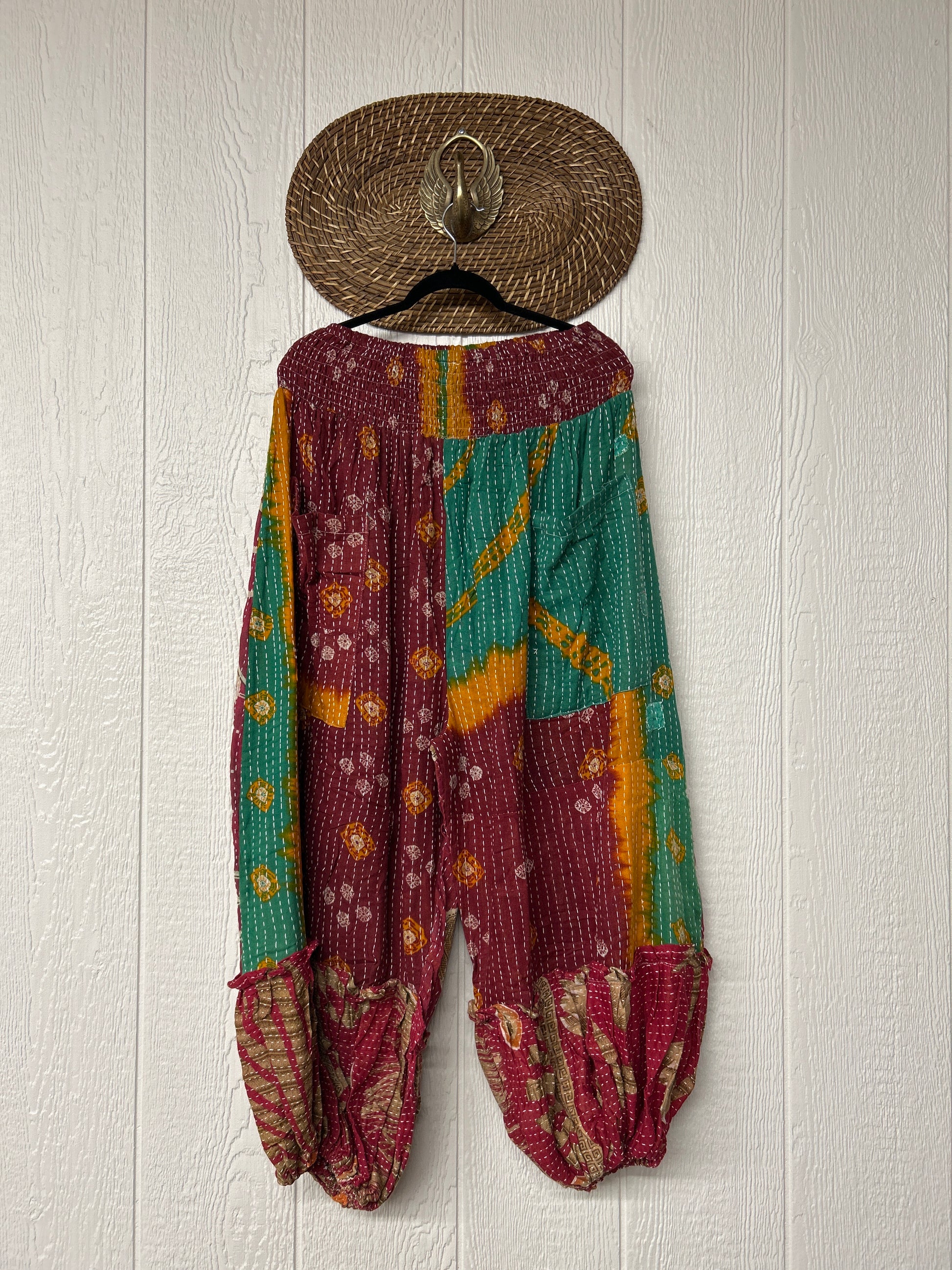 Crafted from our ultra lux kantha stitched vintage cotton sari these pants feature exterior slouchy pockets, a stretchy waistband and an elastic ankle opening. Dress these dream pants up or down to become the ultimate vibe!