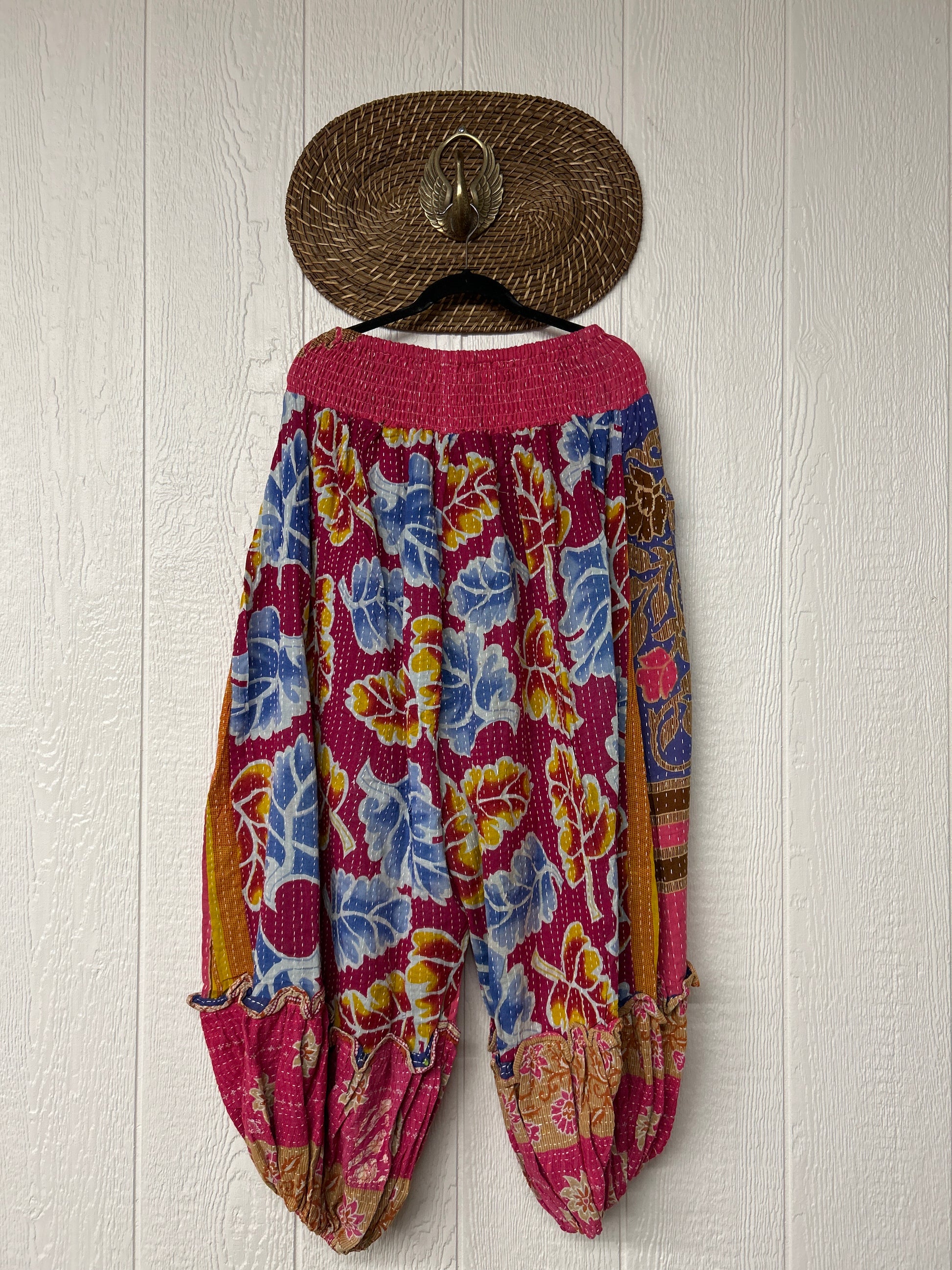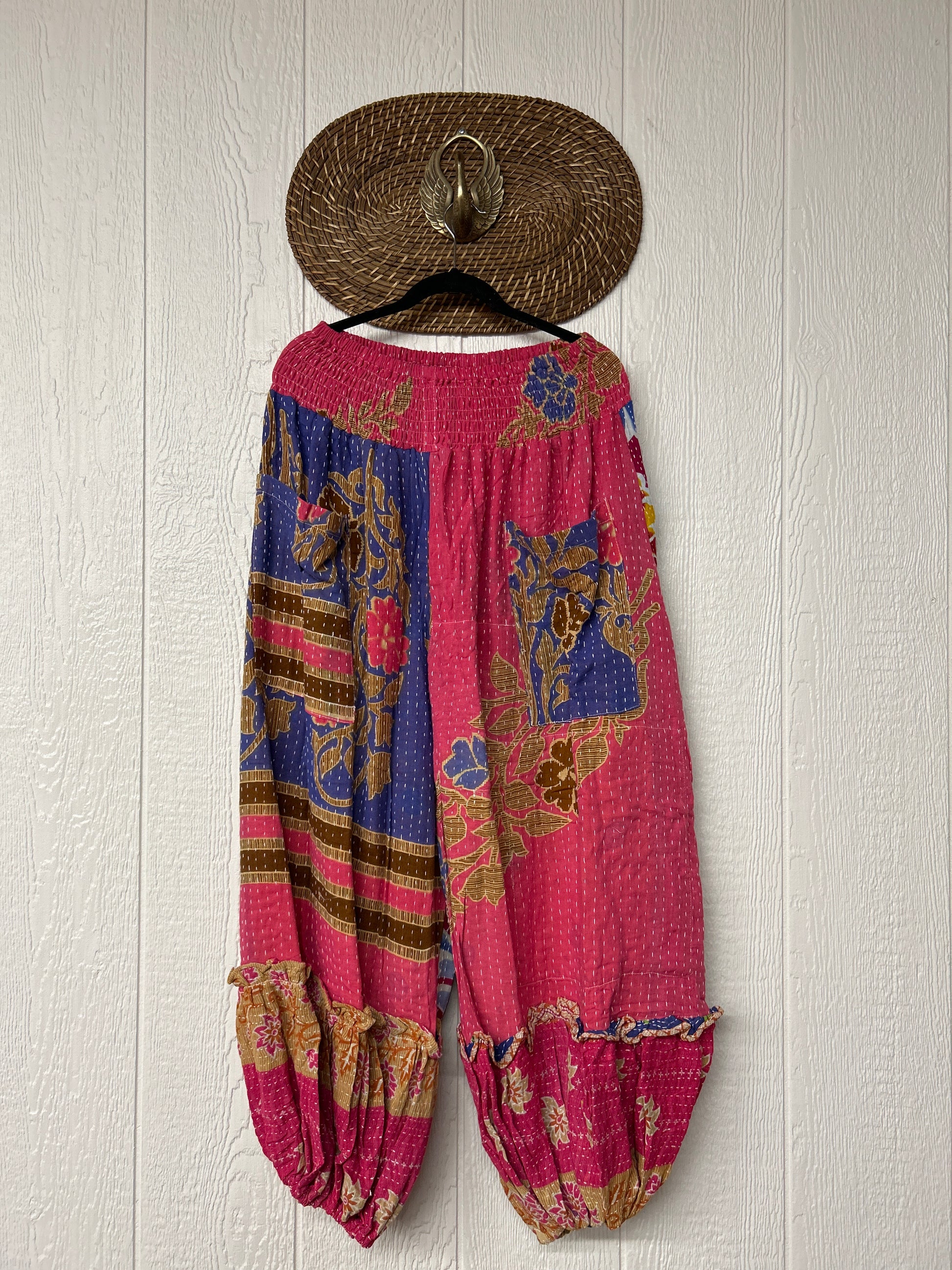 Crafted from our ultra lux kantha stitched vintage cotton sari these pants feature exterior slouchy pockets, a stretchy waistband and an elastic ankle opening. Dress these dream pants up or down to become the ultimate vibe!