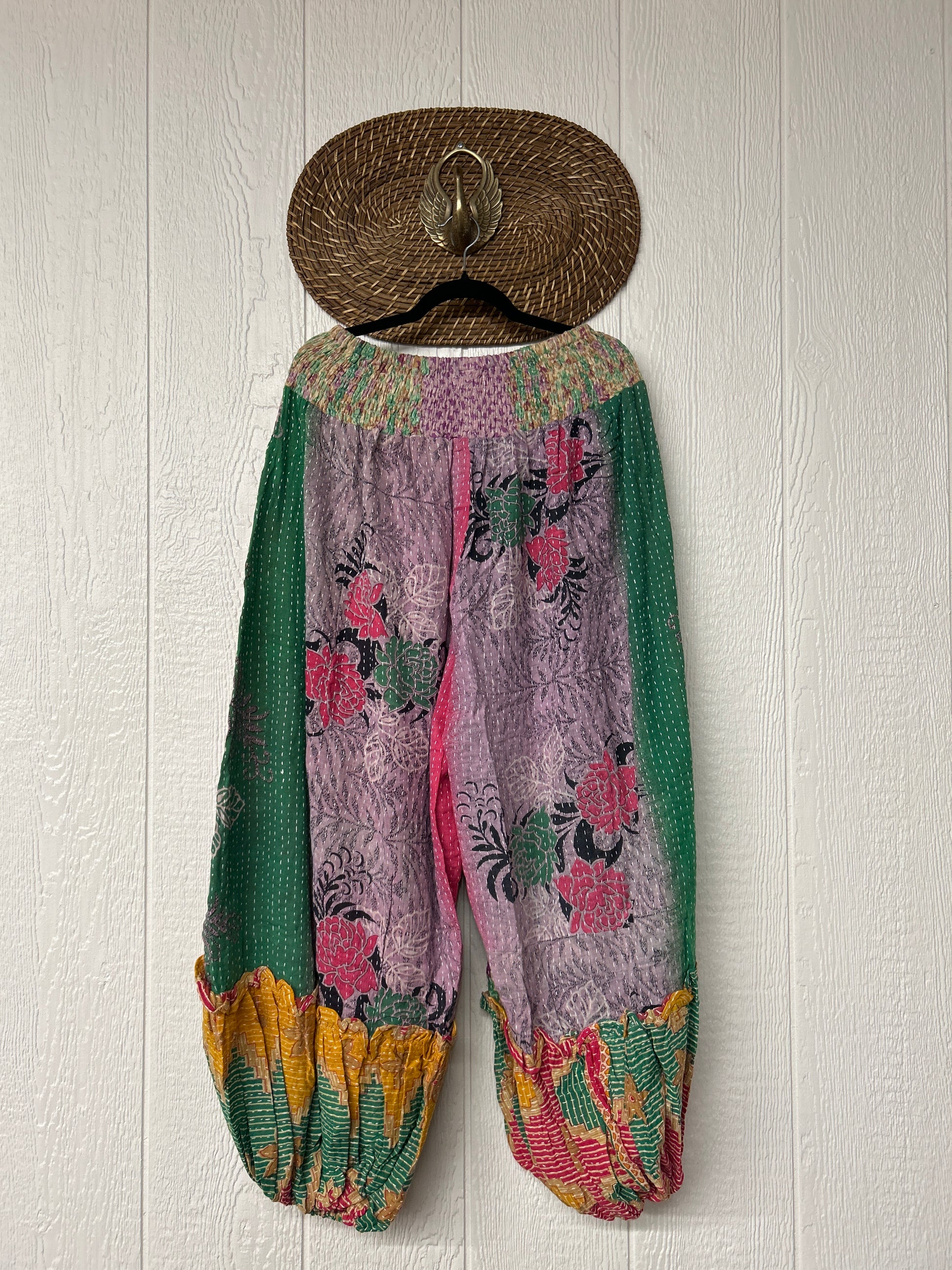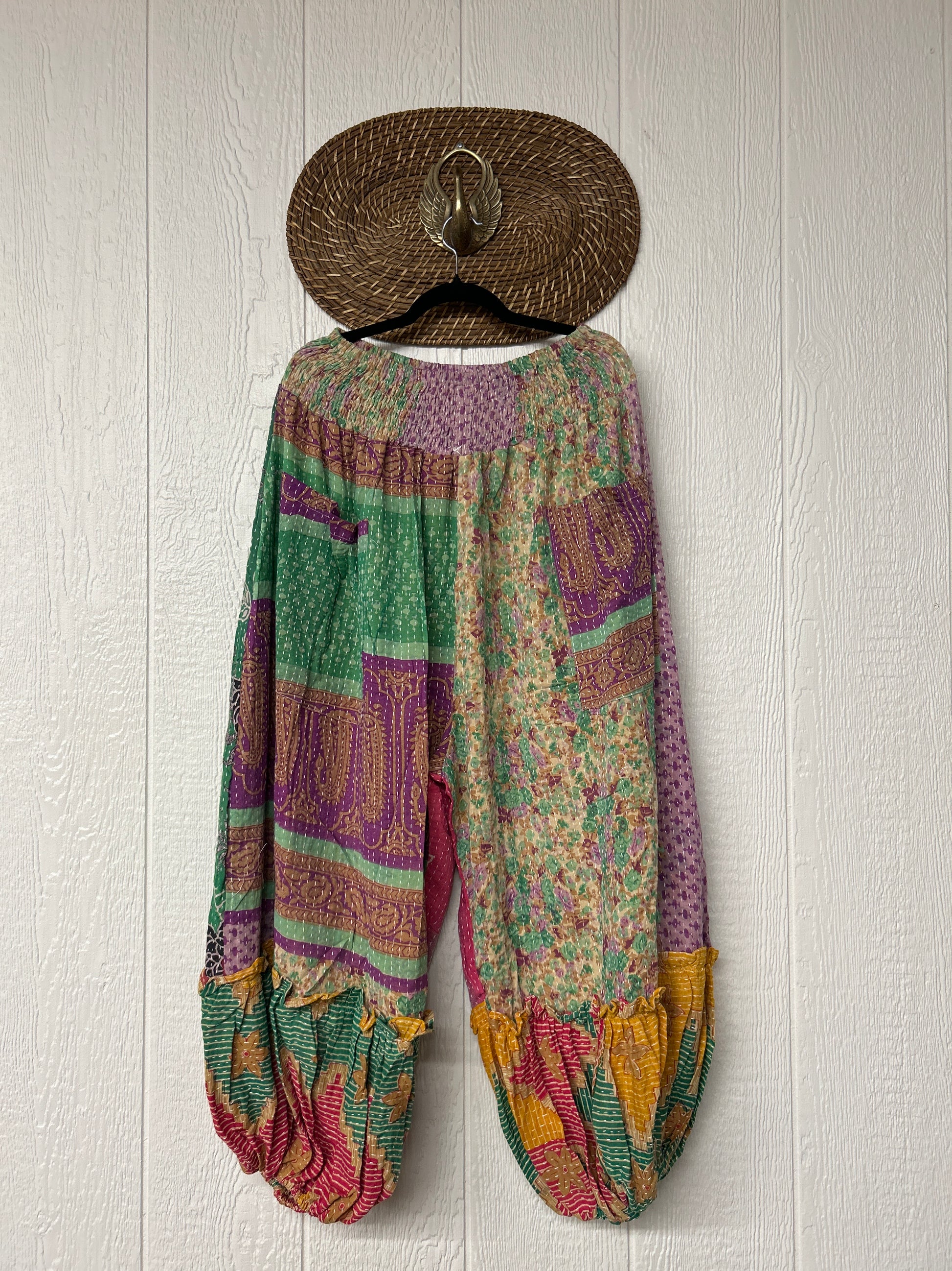 Crafted from our ultra lux kantha stitched vintage cotton sari these pants feature exterior slouchy pockets, a stretchy waistband and an elastic ankle opening. Dress these dream pants up or down to become the ultimate vibe!