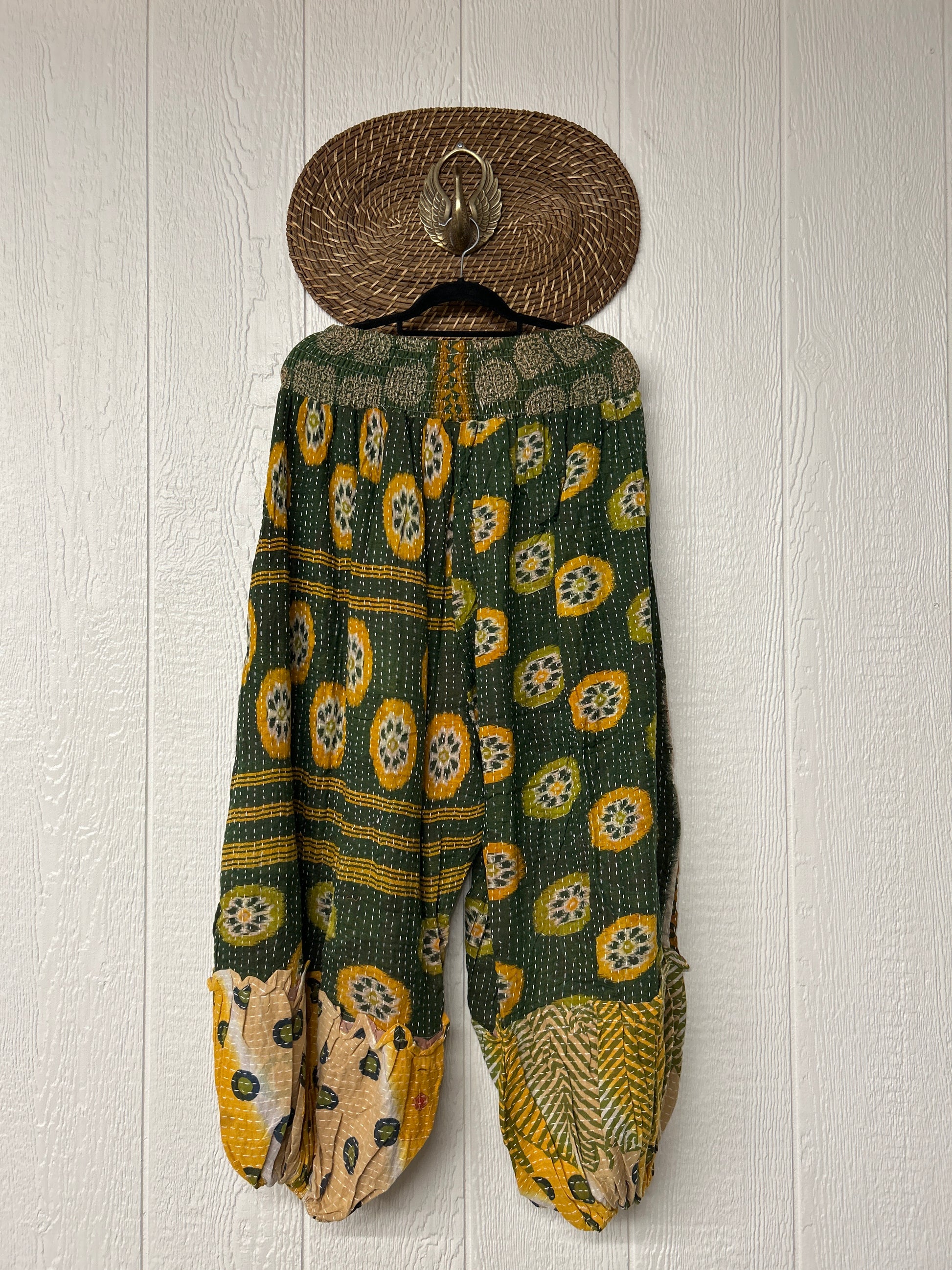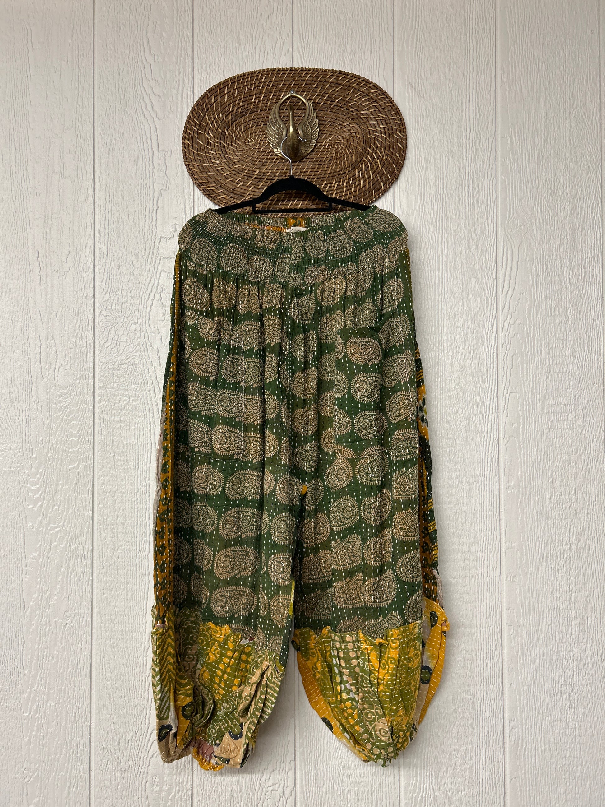Crafted from our ultra lux kantha stitched vintage cotton sari these pants feature exterior slouchy pockets, a stretchy waistband and an elastic ankle opening. Dress these dream pants up or down to become the ultimate vibe!