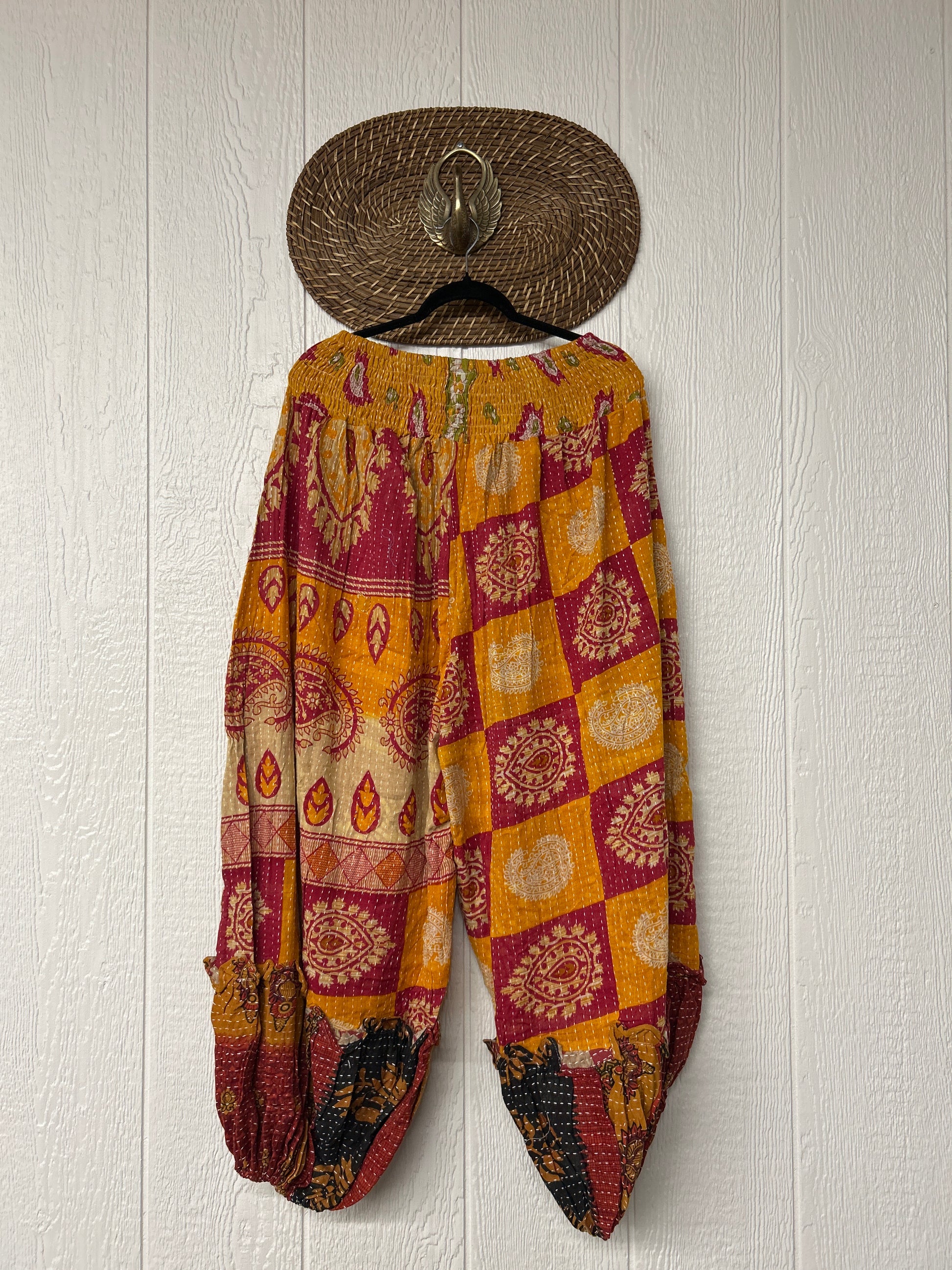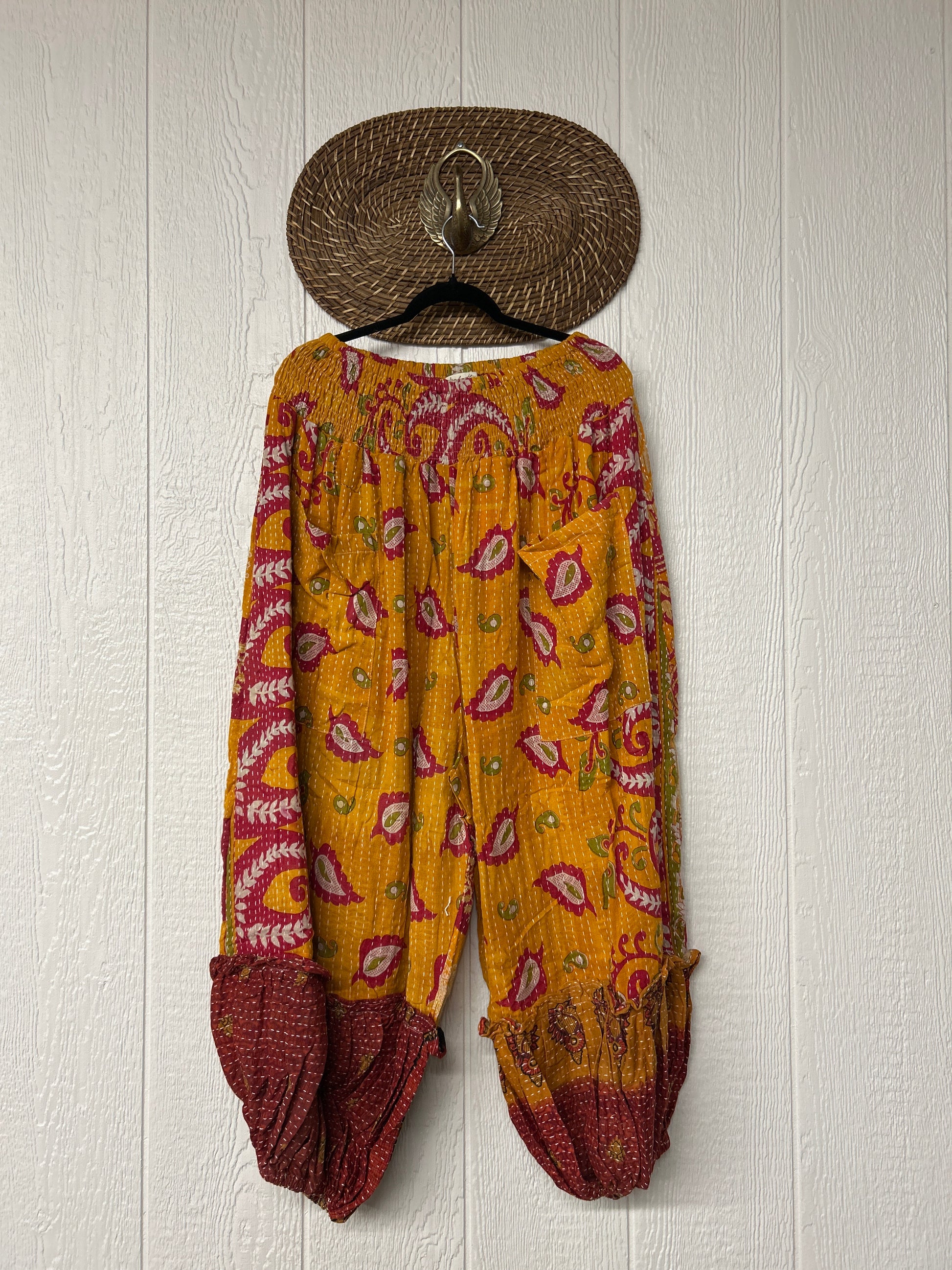 Crafted from our ultra lux kantha stitched vintage cotton sari these pants feature exterior slouchy pockets, a stretchy waistband and an elastic ankle opening. Dress these dream pants up or down to become the ultimate vibe!