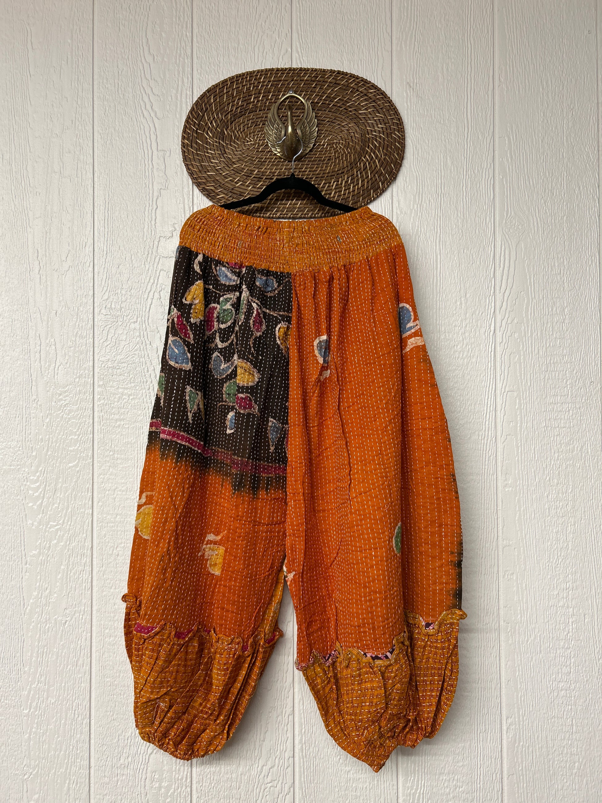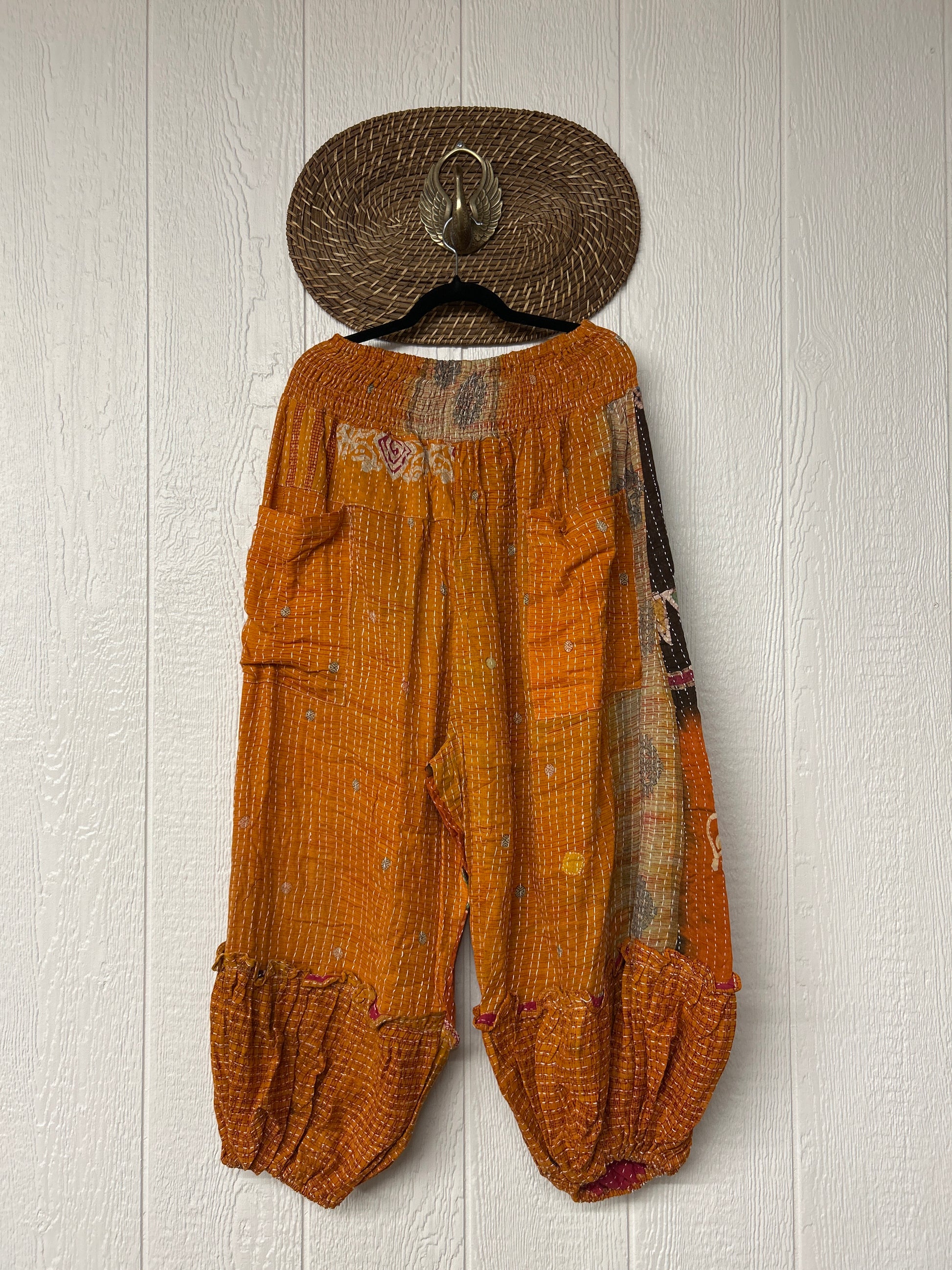 Crafted from our ultra lux kantha stitched vintage cotton sari these pants feature exterior slouchy pockets, a stretchy waistband and an elastic ankle opening. Dress these dream pants up or down to become the ultimate vibe!