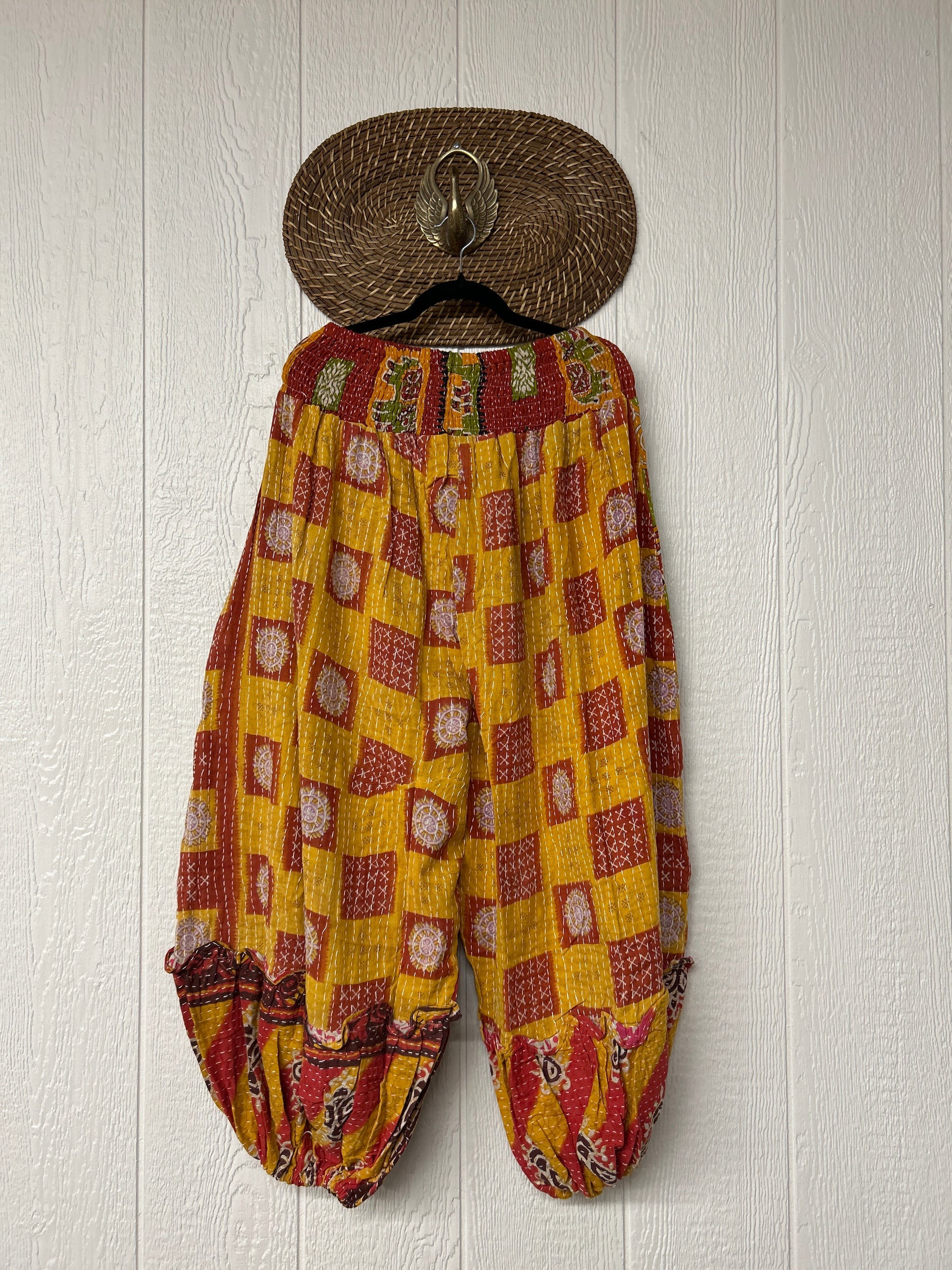Crafted from our ultra lux kantha stitched vintage cotton sari these pants feature exterior slouchy pockets, a stretchy waistband and an elastic ankle opening. Dress these dream pants up or down to become the ultimate vibe!