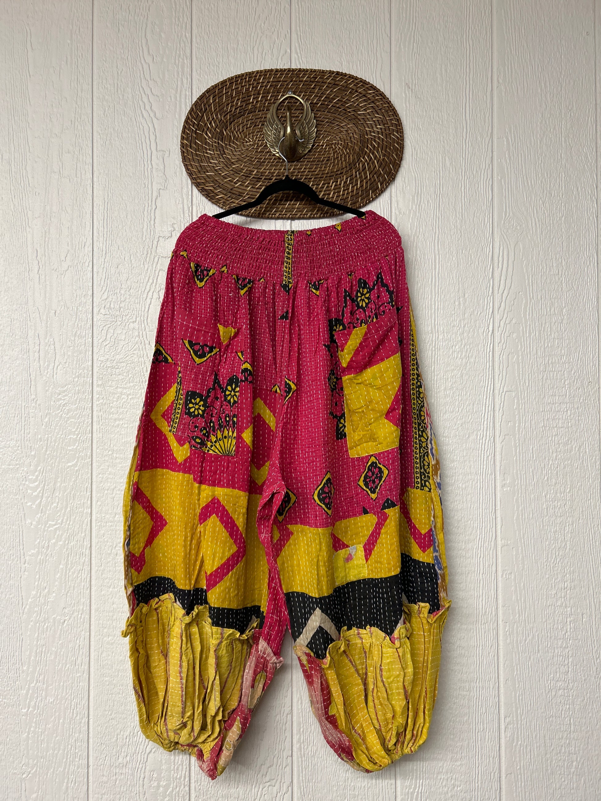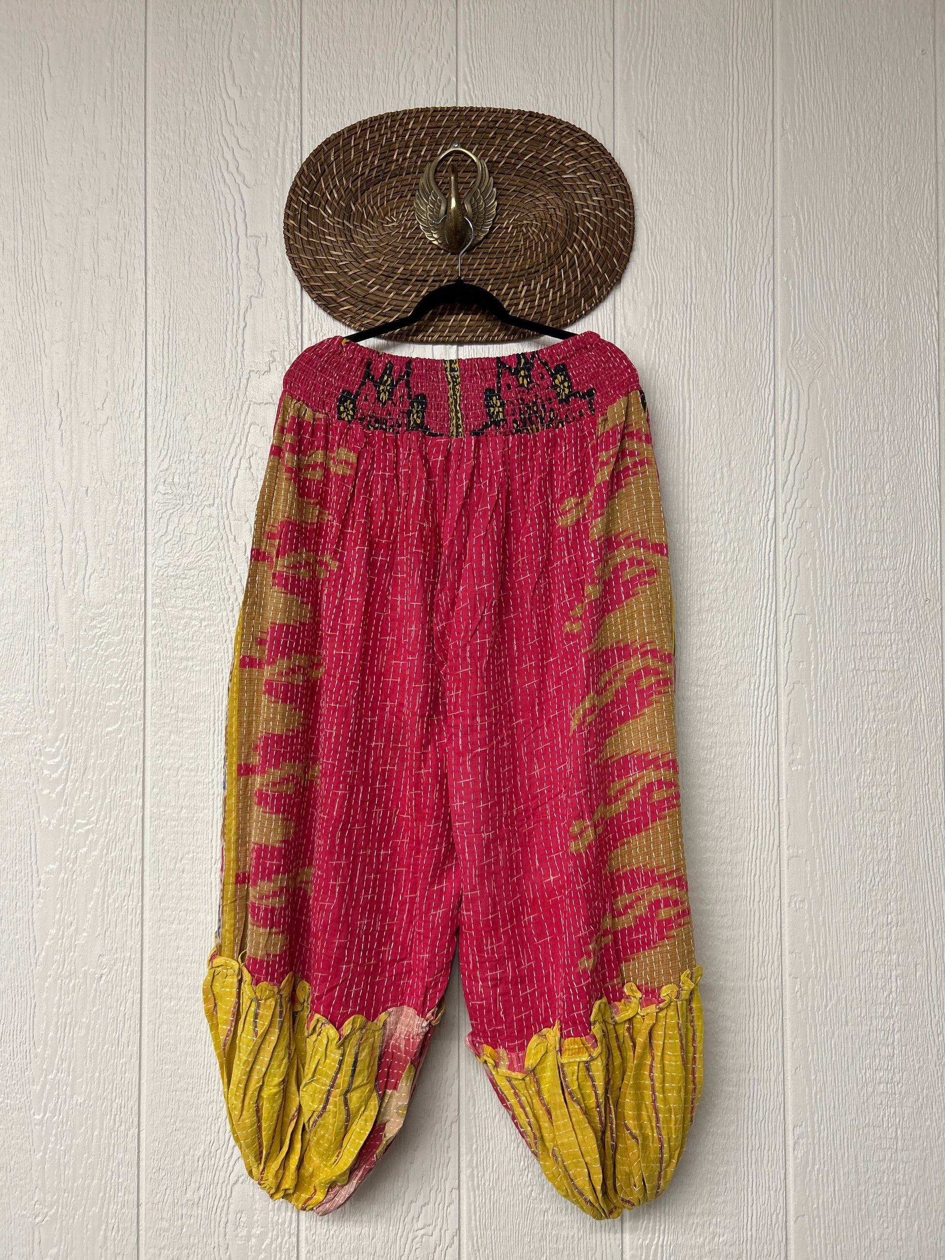 Crafted from our ultra lux kantha stitched vintage cotton sari these pants feature exterior slouchy pockets, a stretchy waistband and an elastic ankle opening. Dress these dream pants up or down to become the ultimate vibe!