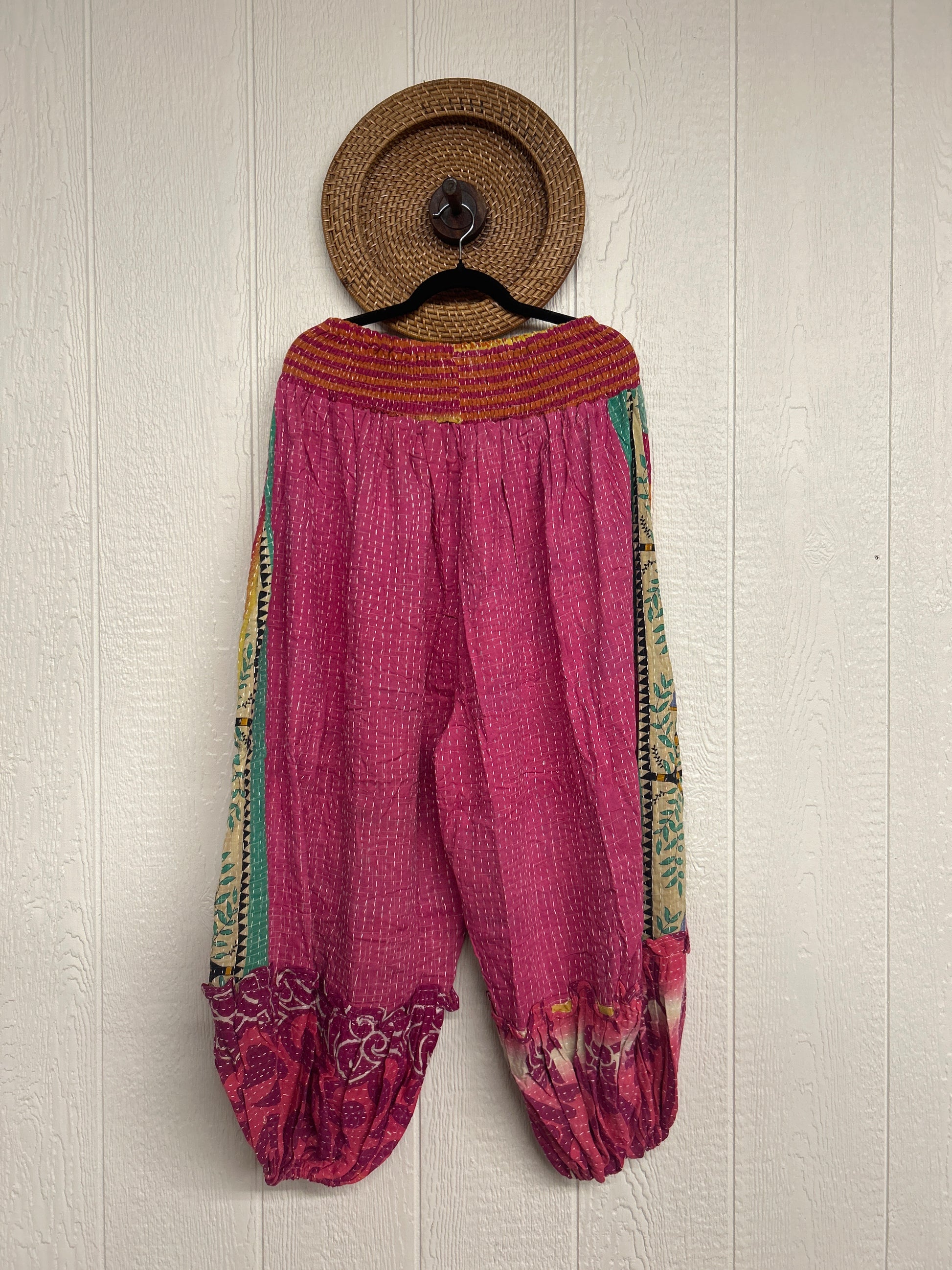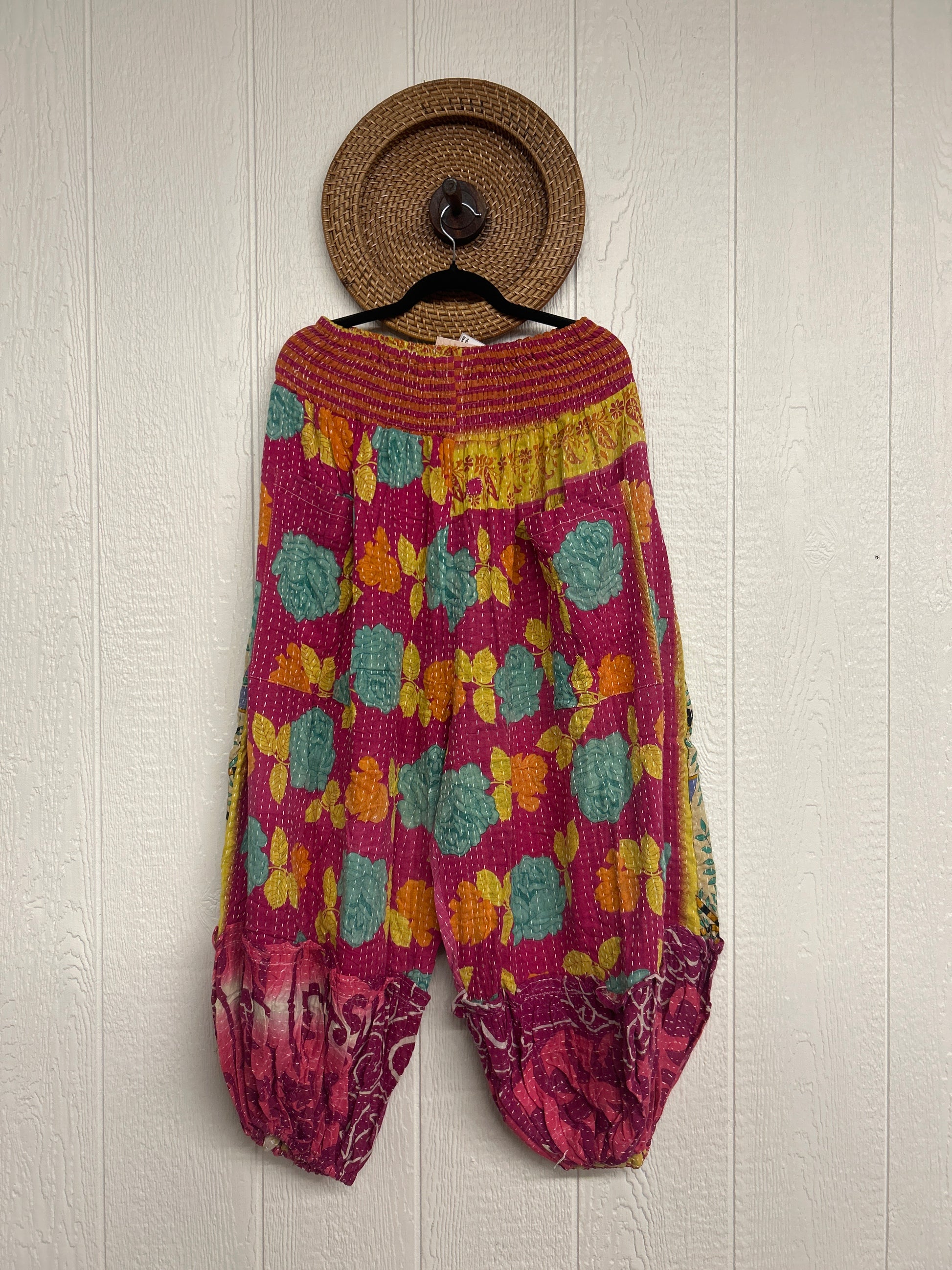 Crafted from our ultra lux kantha stitched vintage cotton sari these pants feature exterior slouchy pockets, a stretchy waistband and an elastic ankle opening. Dress these dream pants up or down to become the ultimate vibe!