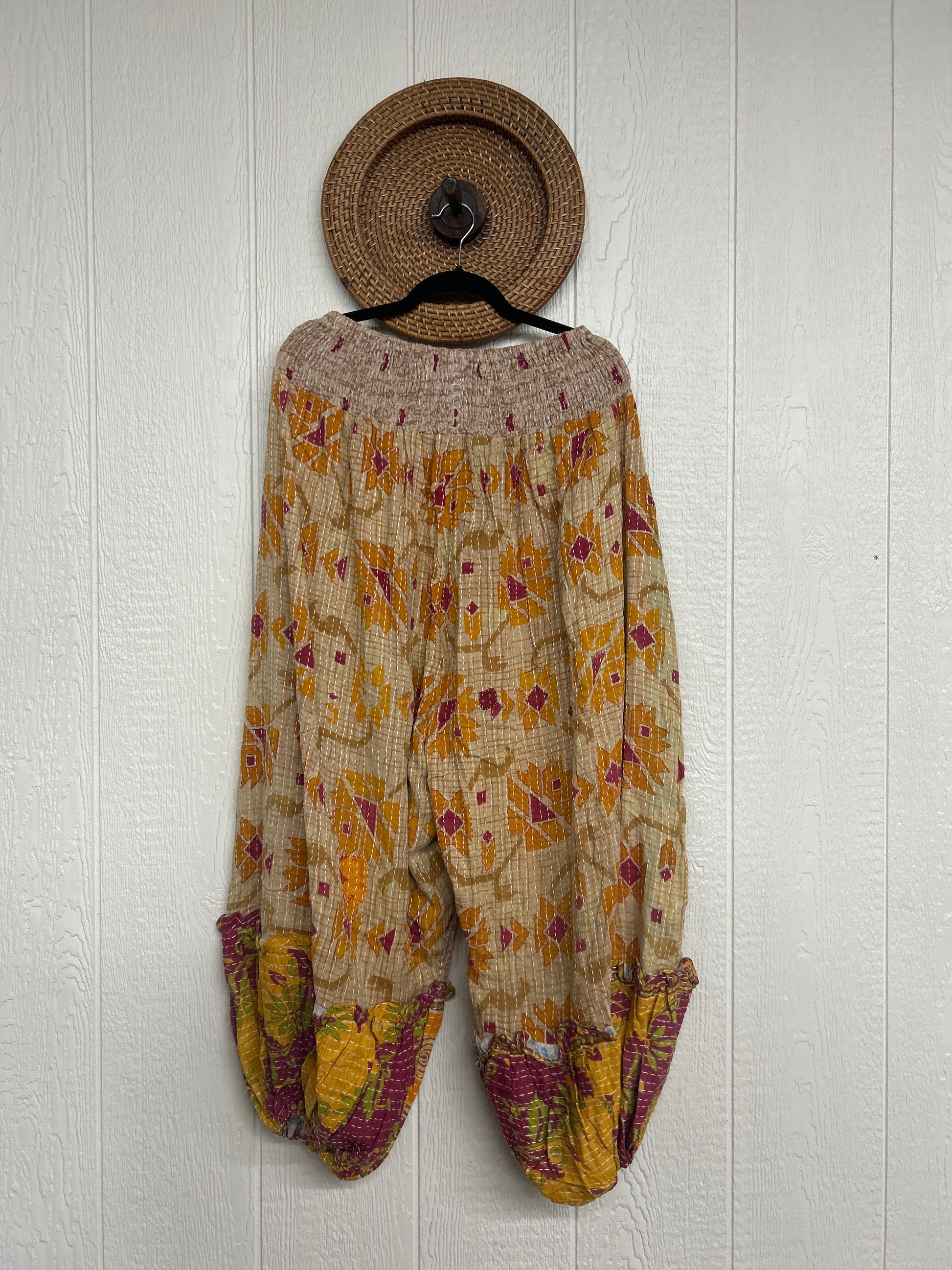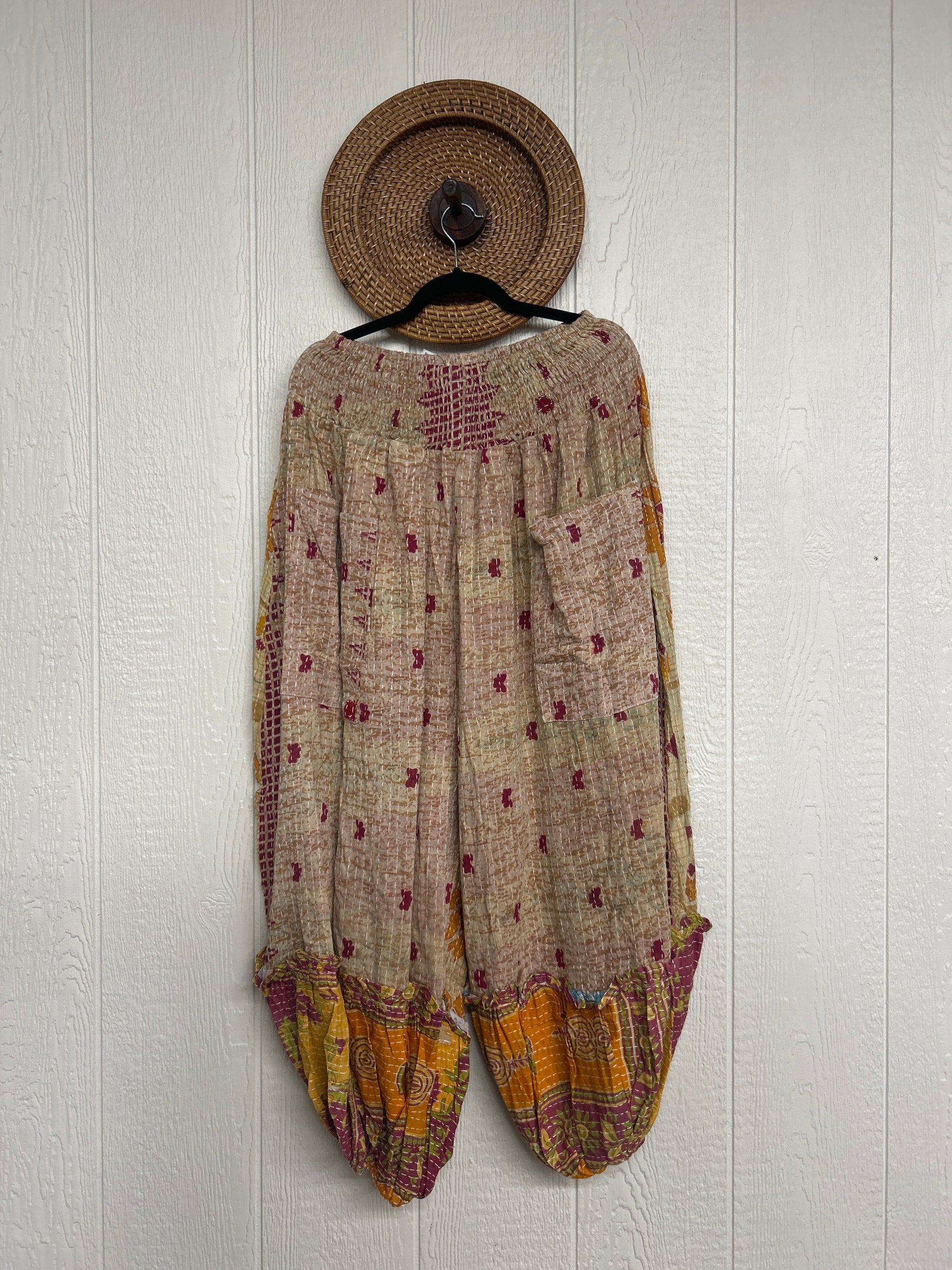 Crafted from our ultra lux kantha stitched vintage cotton sari these pants feature exterior slouchy pockets, a stretchy waistband and an elastic ankle opening. Dress these dream pants up or down to become the ultimate vibe!