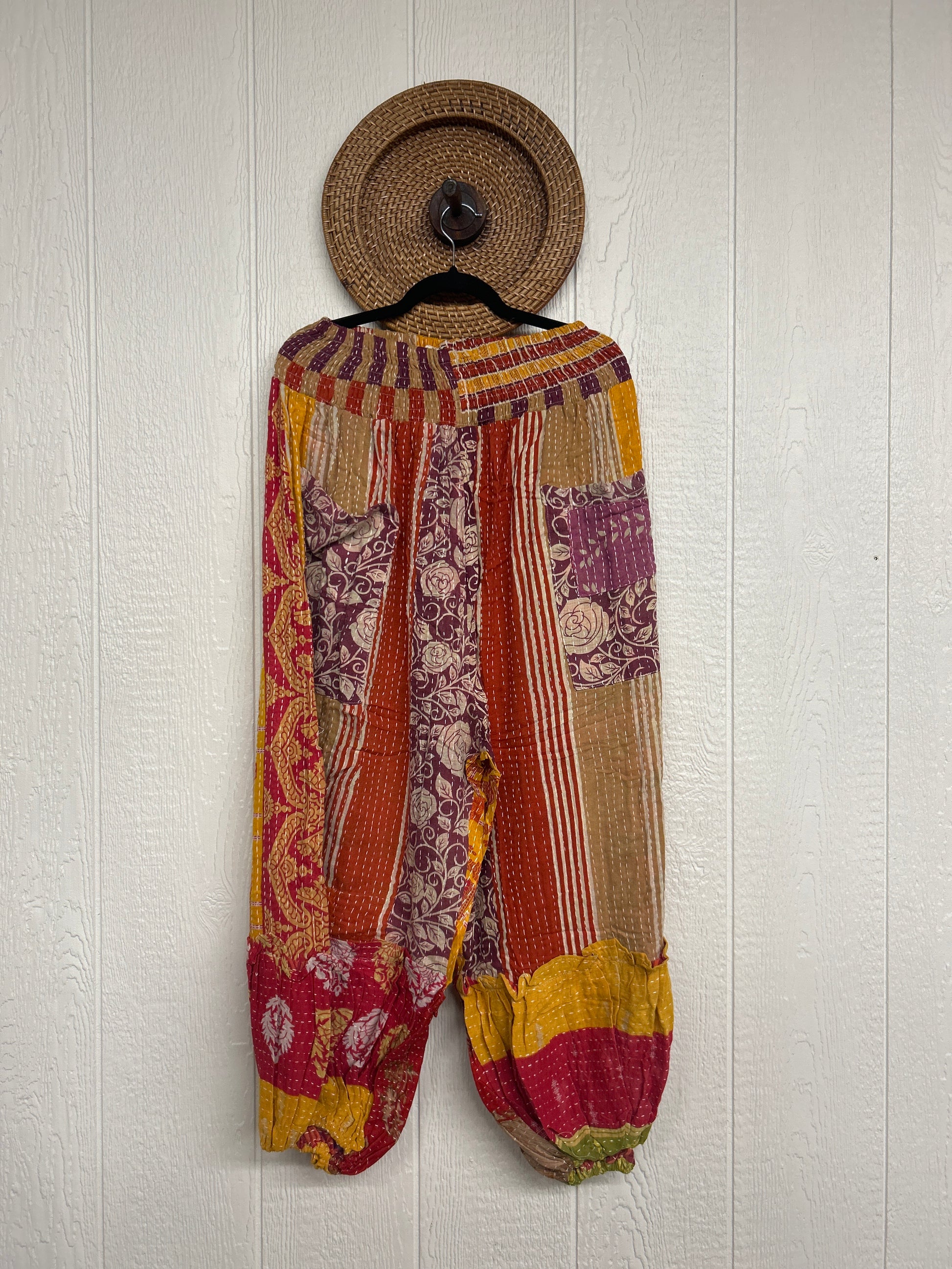Crafted from our ultra lux kantha stitched vintage cotton sari these pants feature exterior slouchy pockets, a stretchy waistband and an elastic ankle opening. Dress these dream pants up or down to become the ultimate vibe!