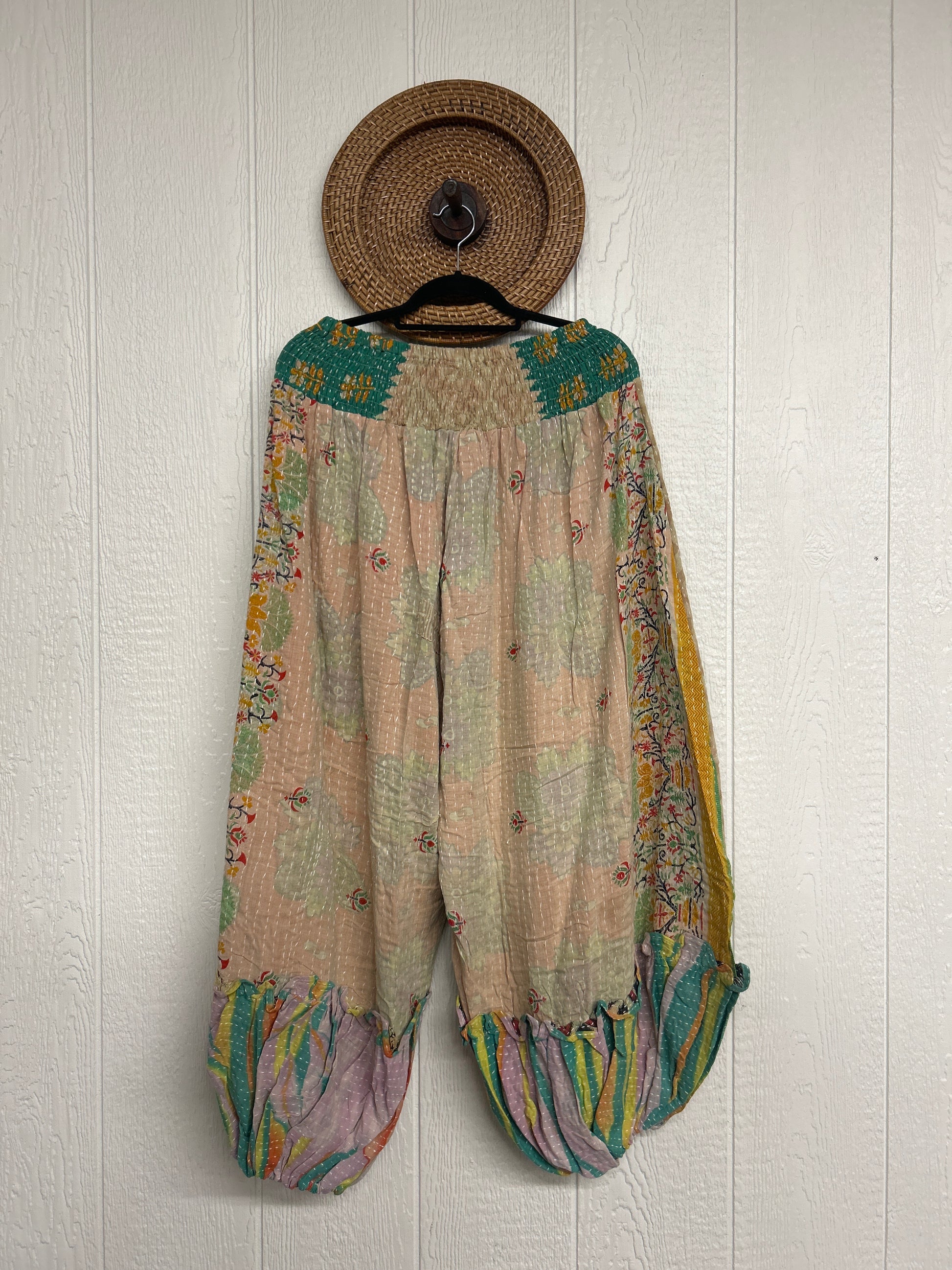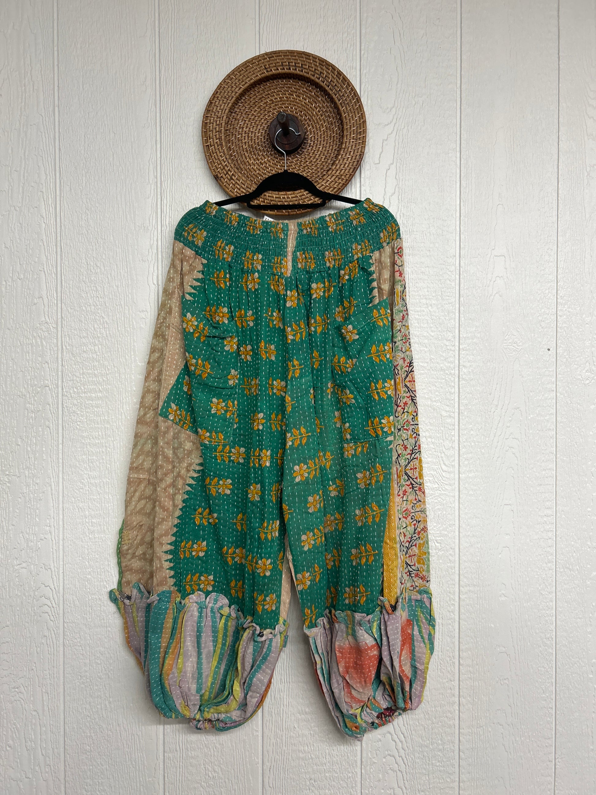 Crafted from our ultra lux kantha stitched vintage cotton sari these pants feature exterior slouchy pockets, a stretchy waistband and an elastic ankle opening. Dress these dream pants up or down to become the ultimate vibe!