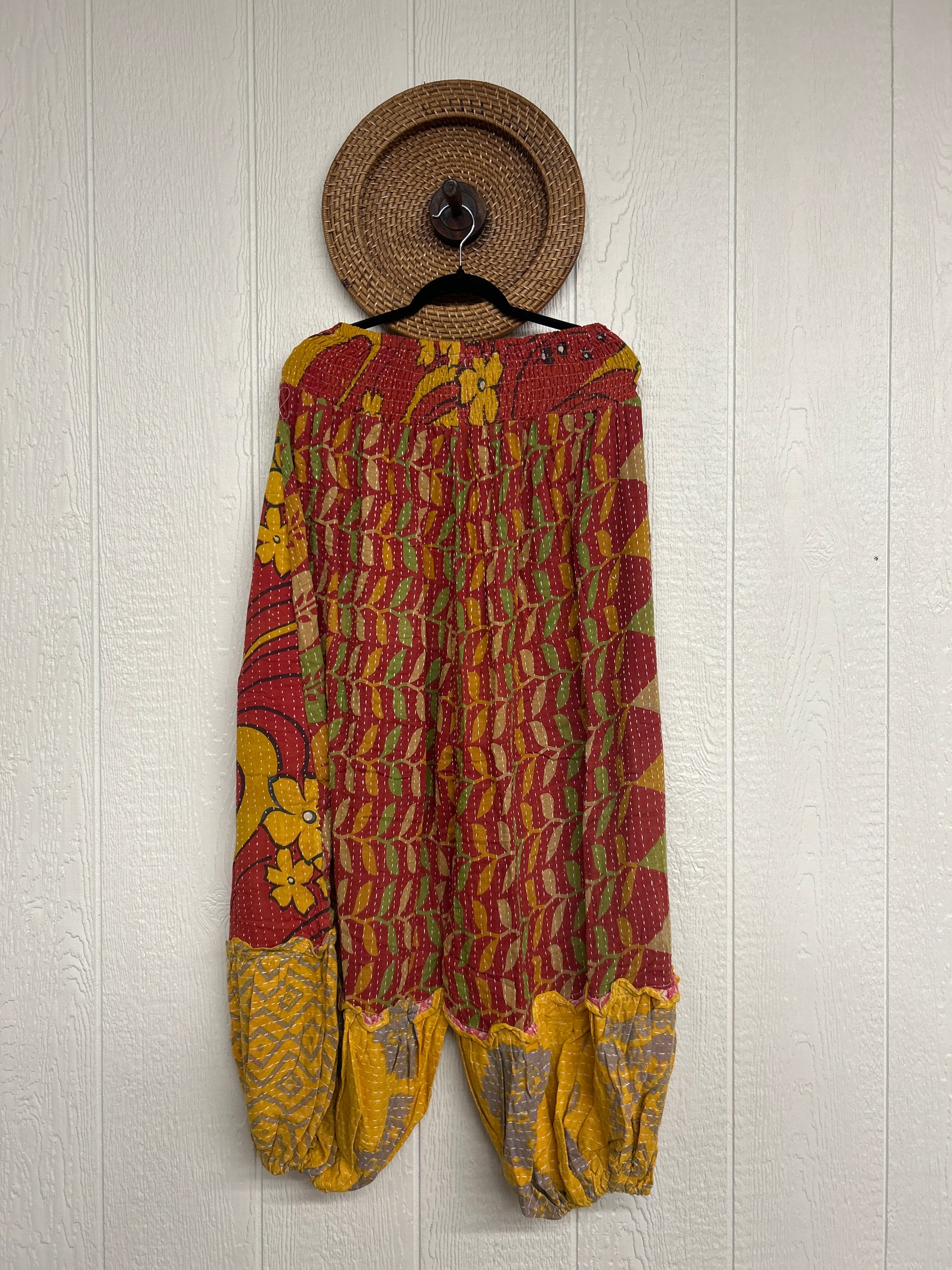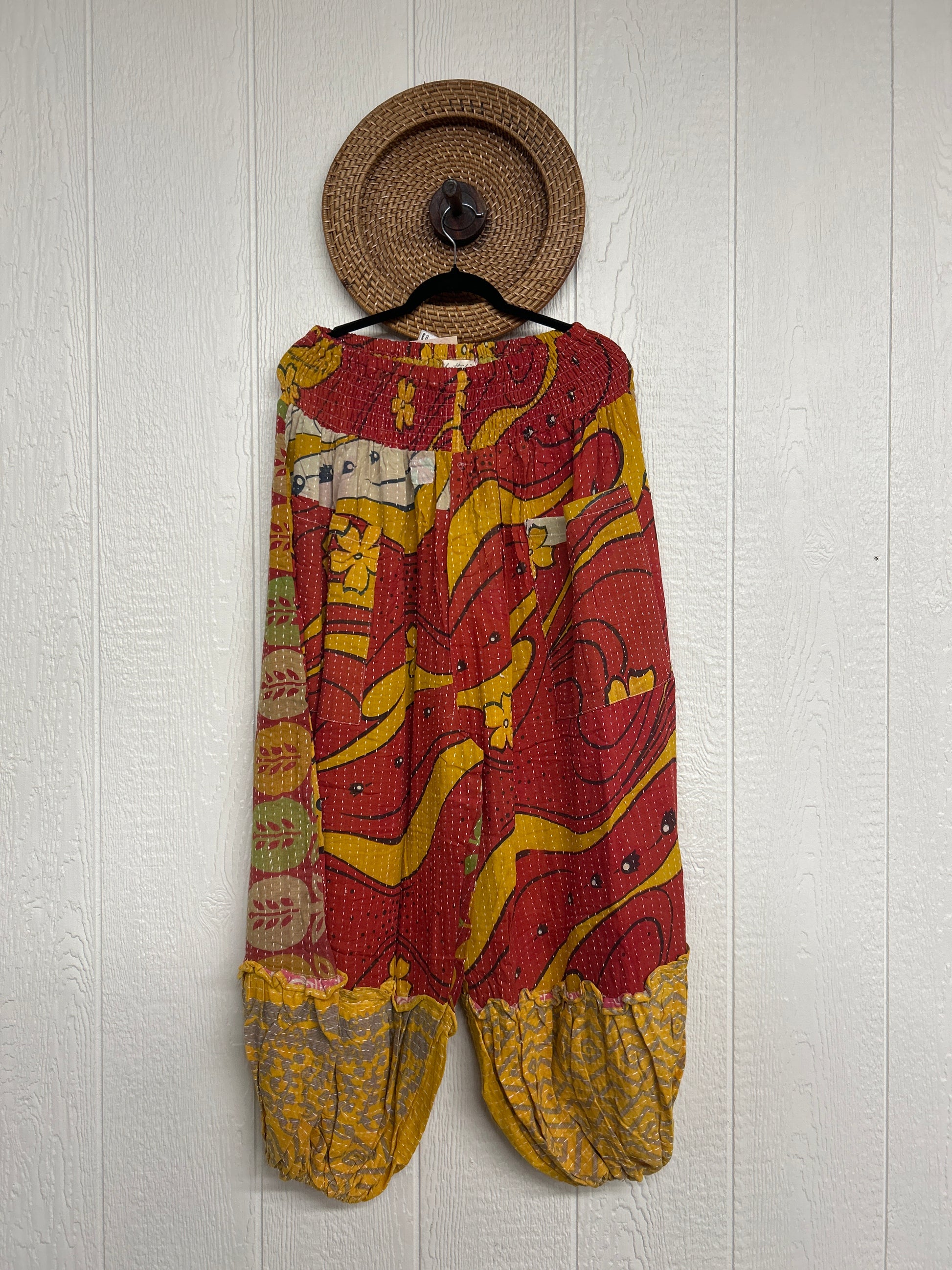 Crafted from our ultra lux kantha stitched vintage cotton sari these pants feature exterior slouchy pockets, a stretchy waistband and an elastic ankle opening. Dress these dream pants up or down to become the ultimate vibe!