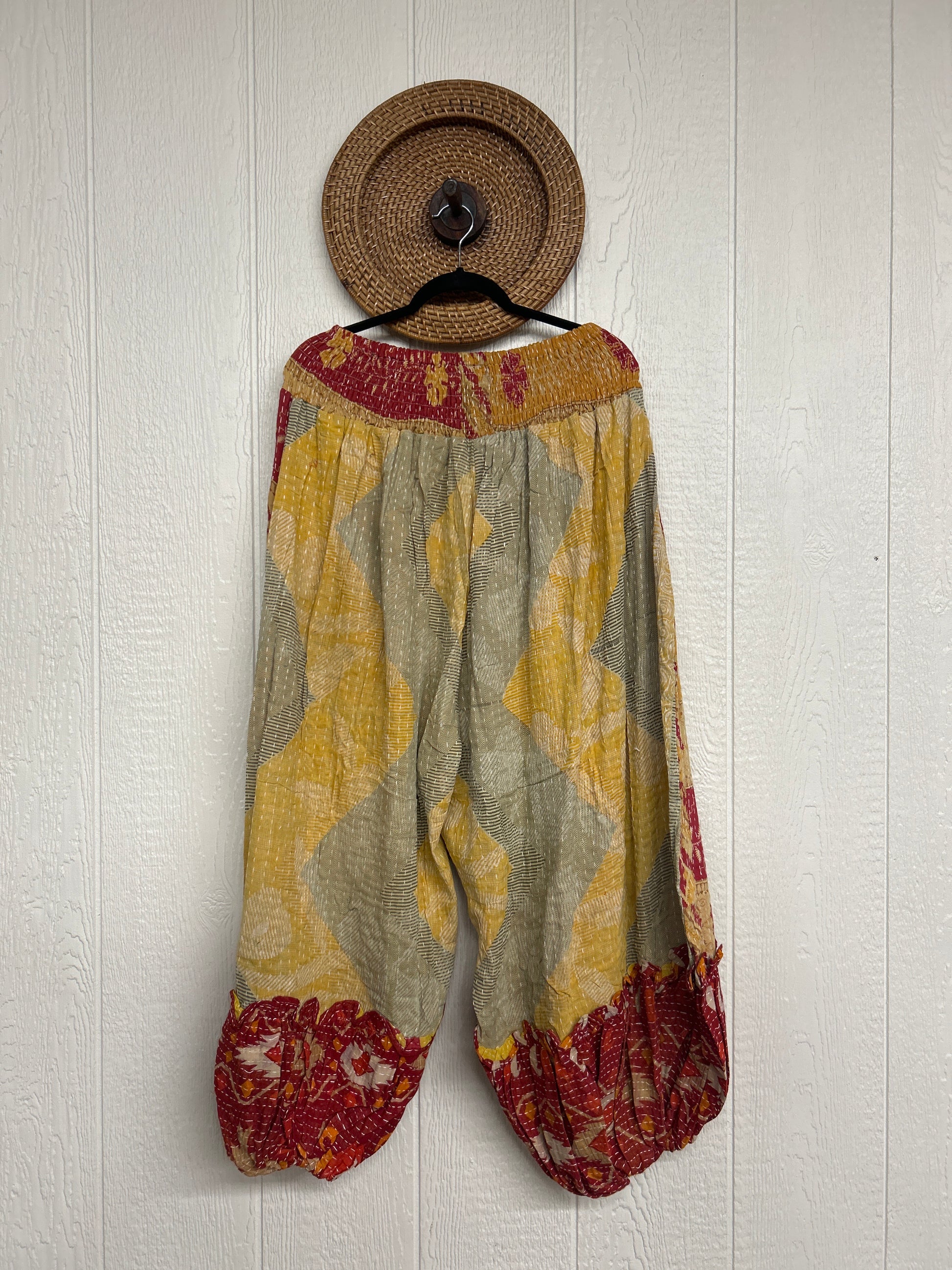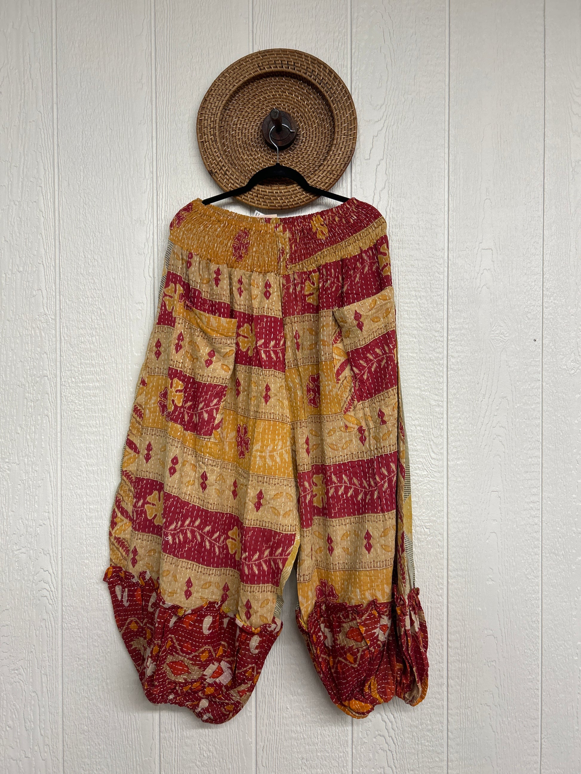 Crafted from our ultra lux kantha stitched vintage cotton sari these pants feature exterior slouchy pockets, a stretchy waistband and an elastic ankle opening. Dress these dream pants up or down to become the ultimate vibe!