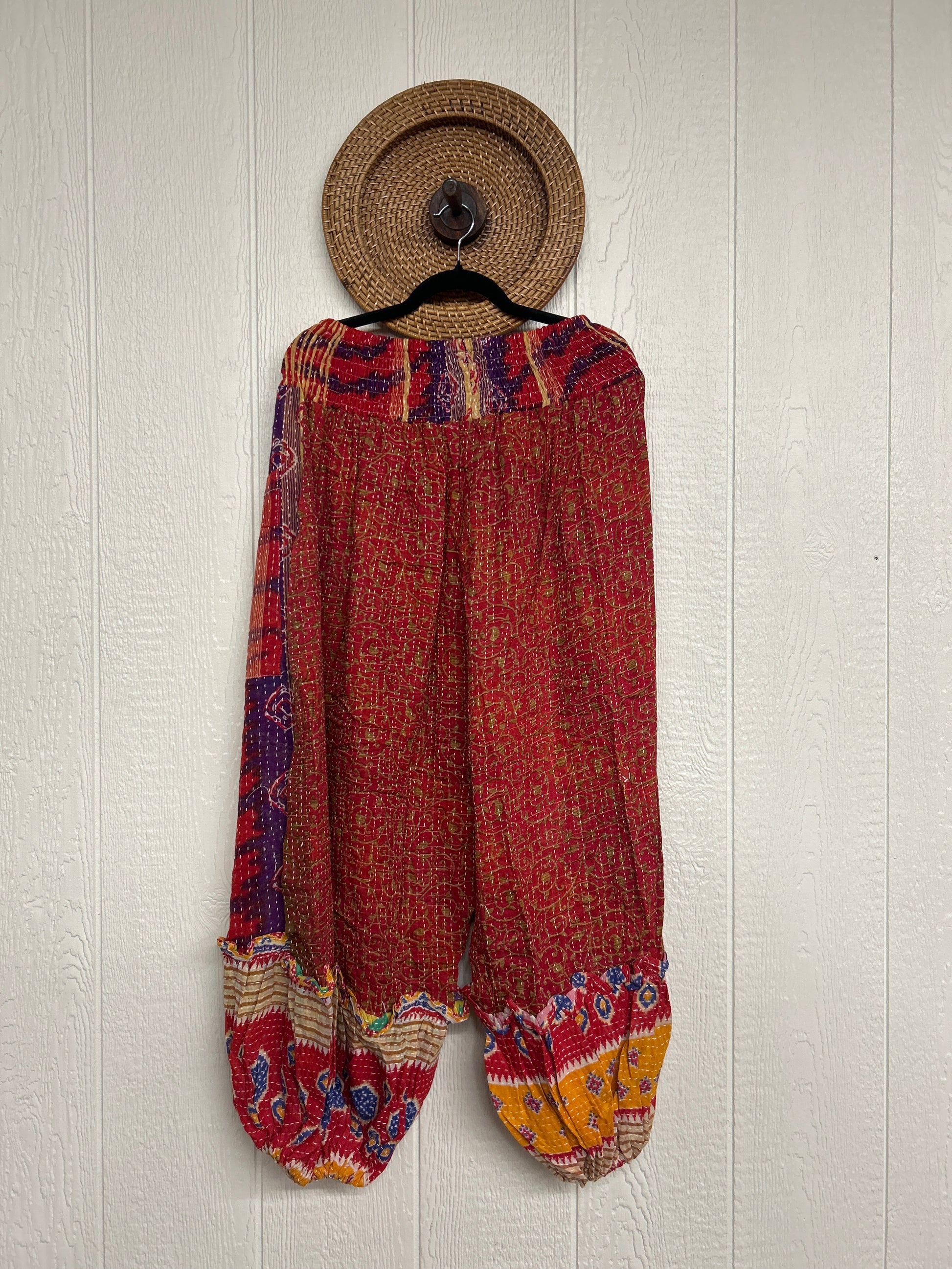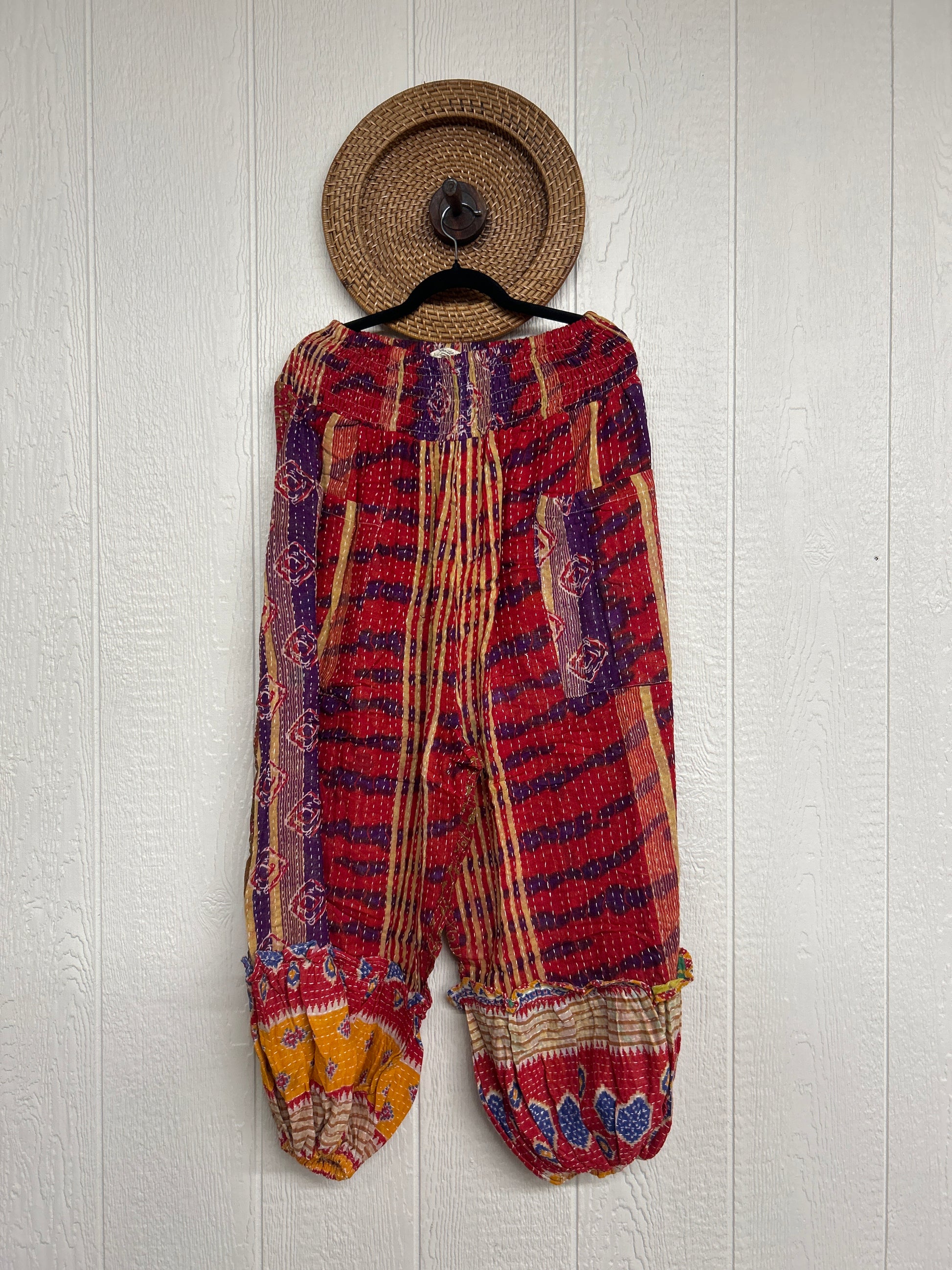 Crafted from our ultra lux kantha stitched vintage cotton sari these pants feature exterior slouchy pockets, a stretchy waistband and an elastic ankle opening. Dress these dream pants up or down to become the ultimate vibe!