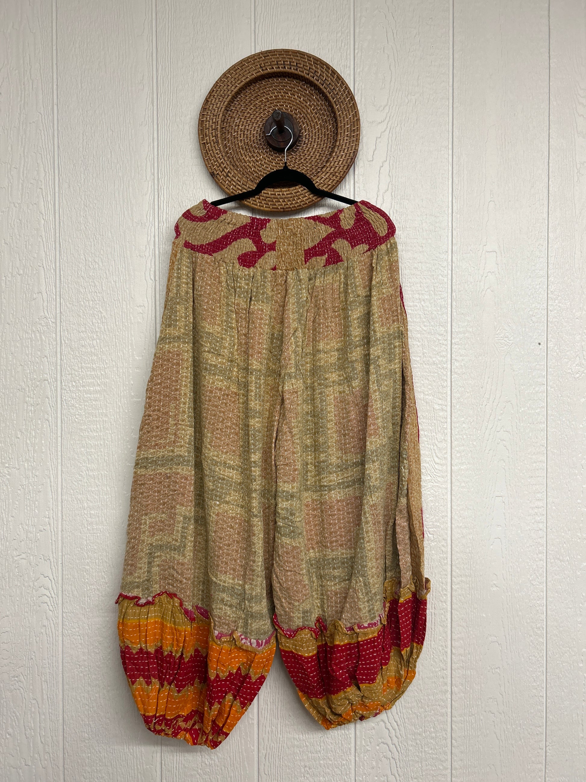 Crafted from our ultra lux kantha stitched vintage cotton sari these pants feature exterior slouchy pockets, a stretchy waistband and an elastic ankle opening. Dress these dream pants up or down to become the ultimate vibe!