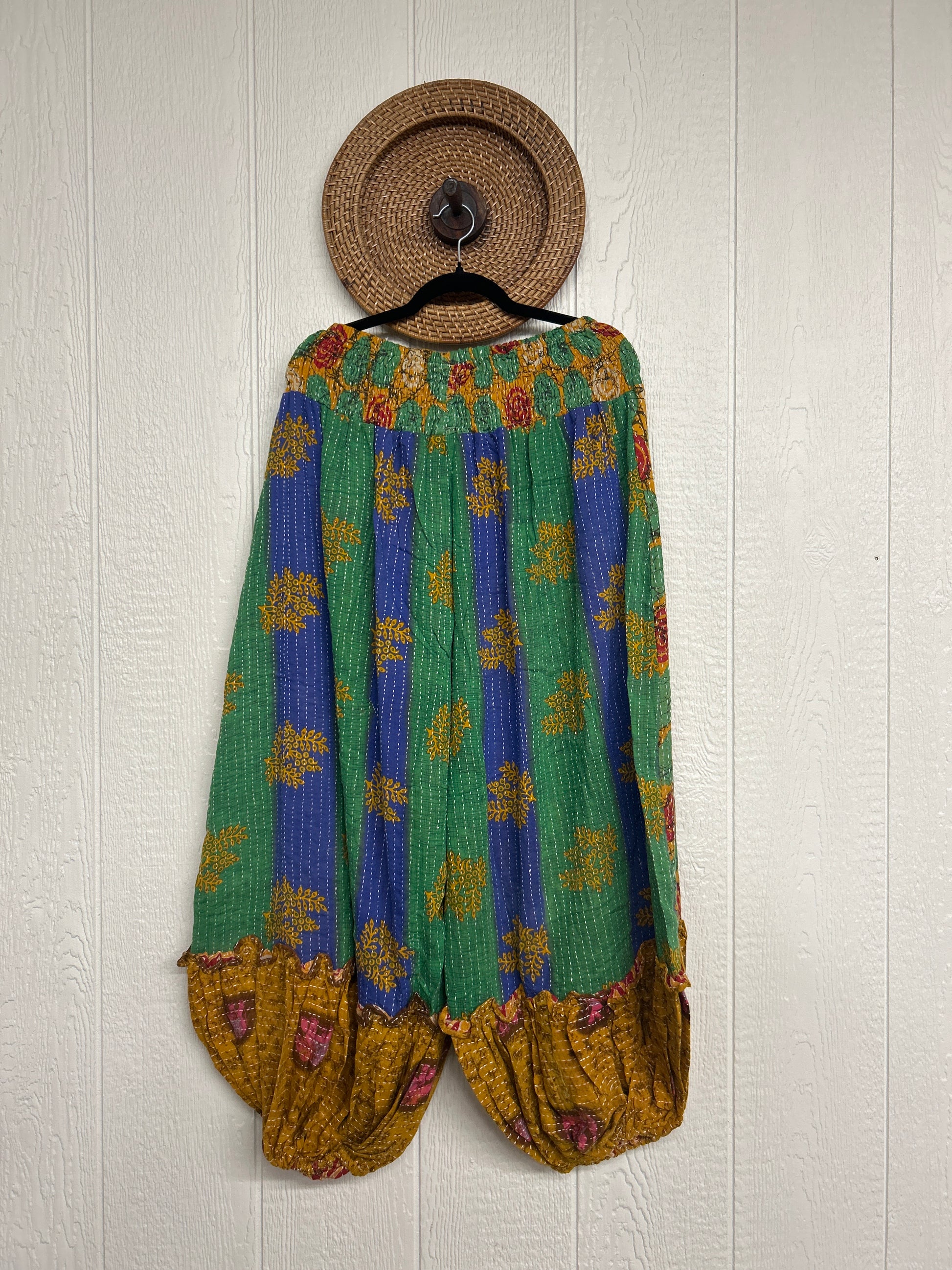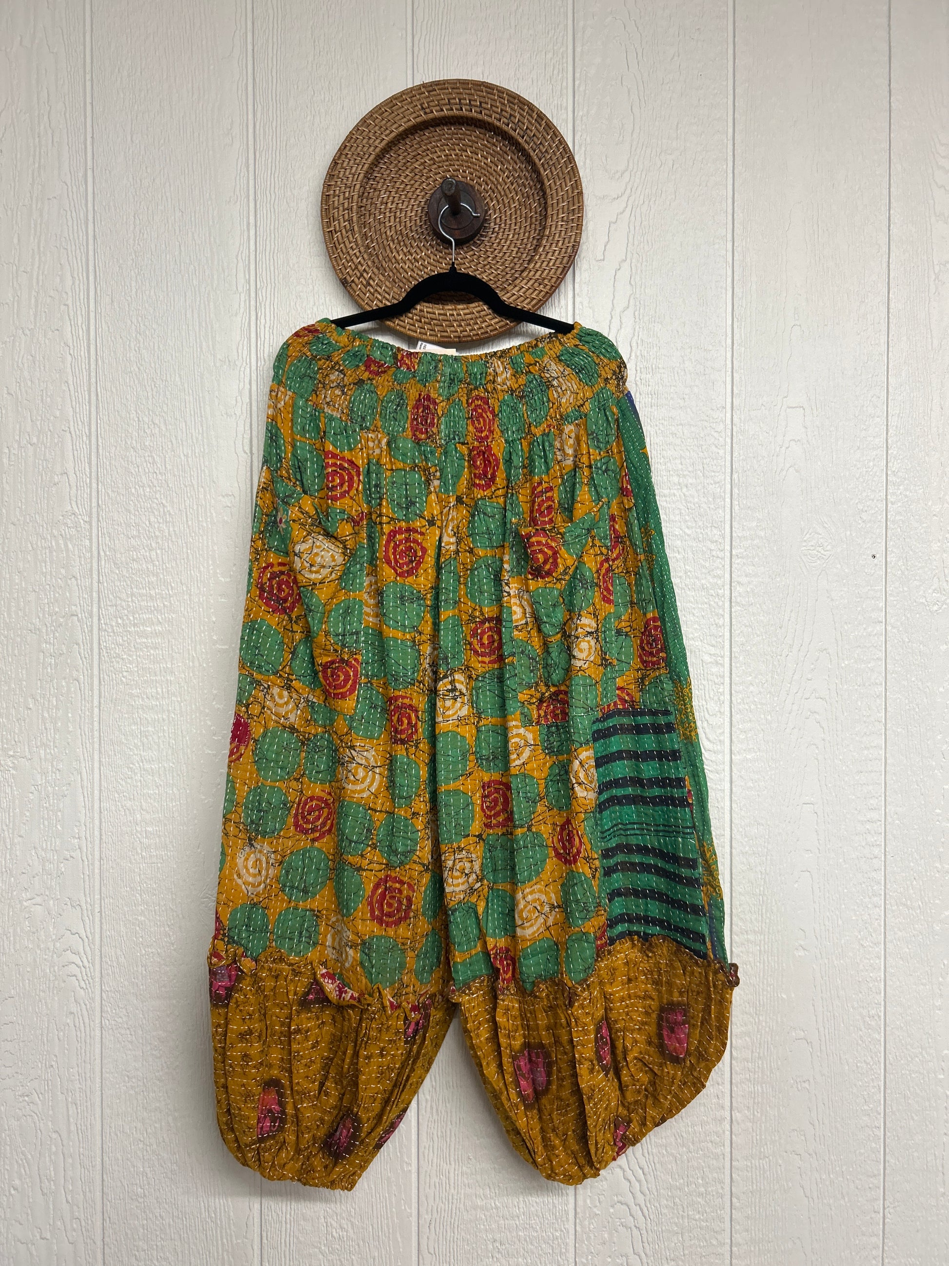 Crafted from our ultra lux kantha stitched vintage cotton sari these pants feature exterior slouchy pockets, a stretchy waistband and an elastic ankle opening. Dress these dream pants up or down to become the ultimate vibe!