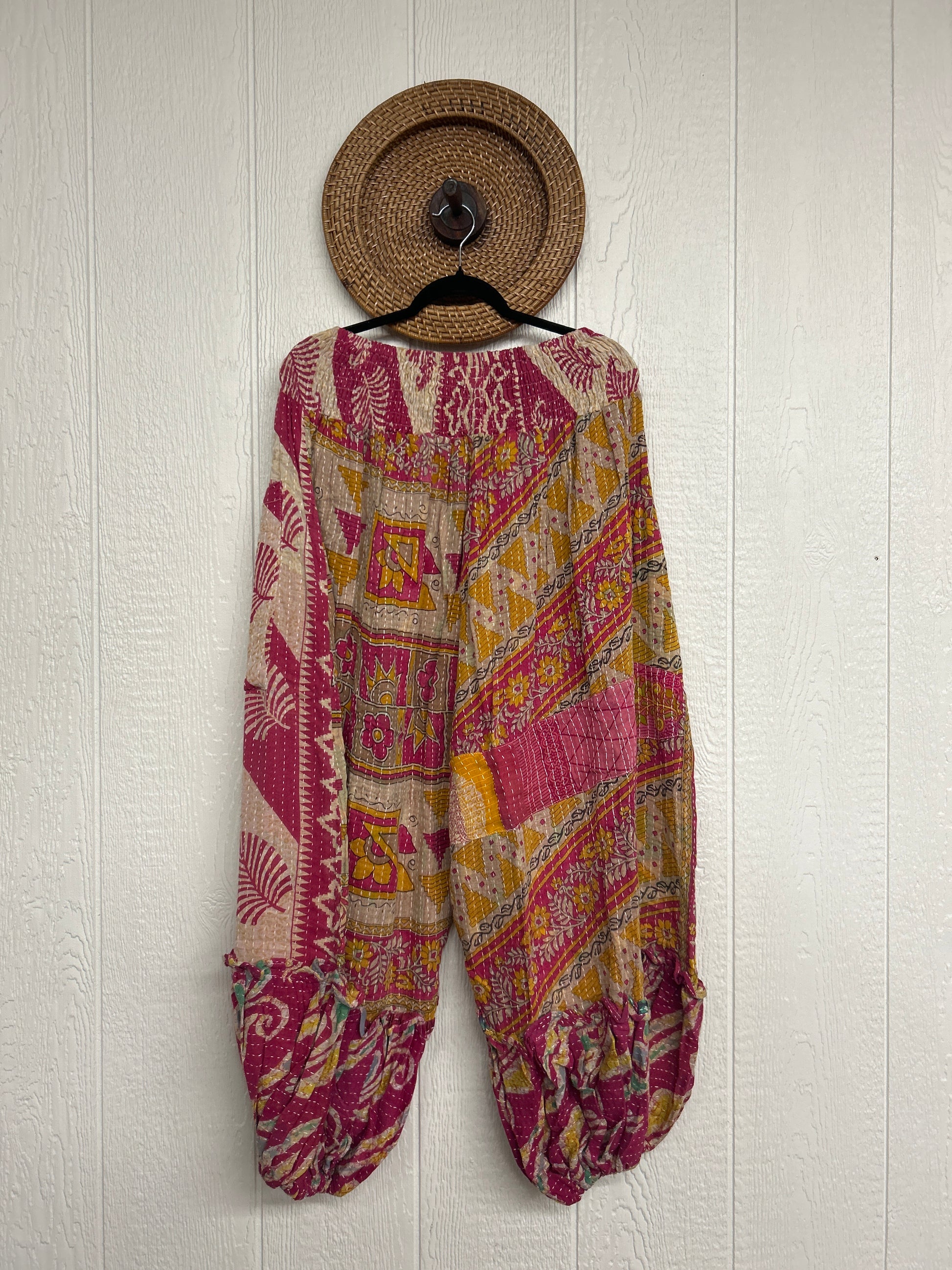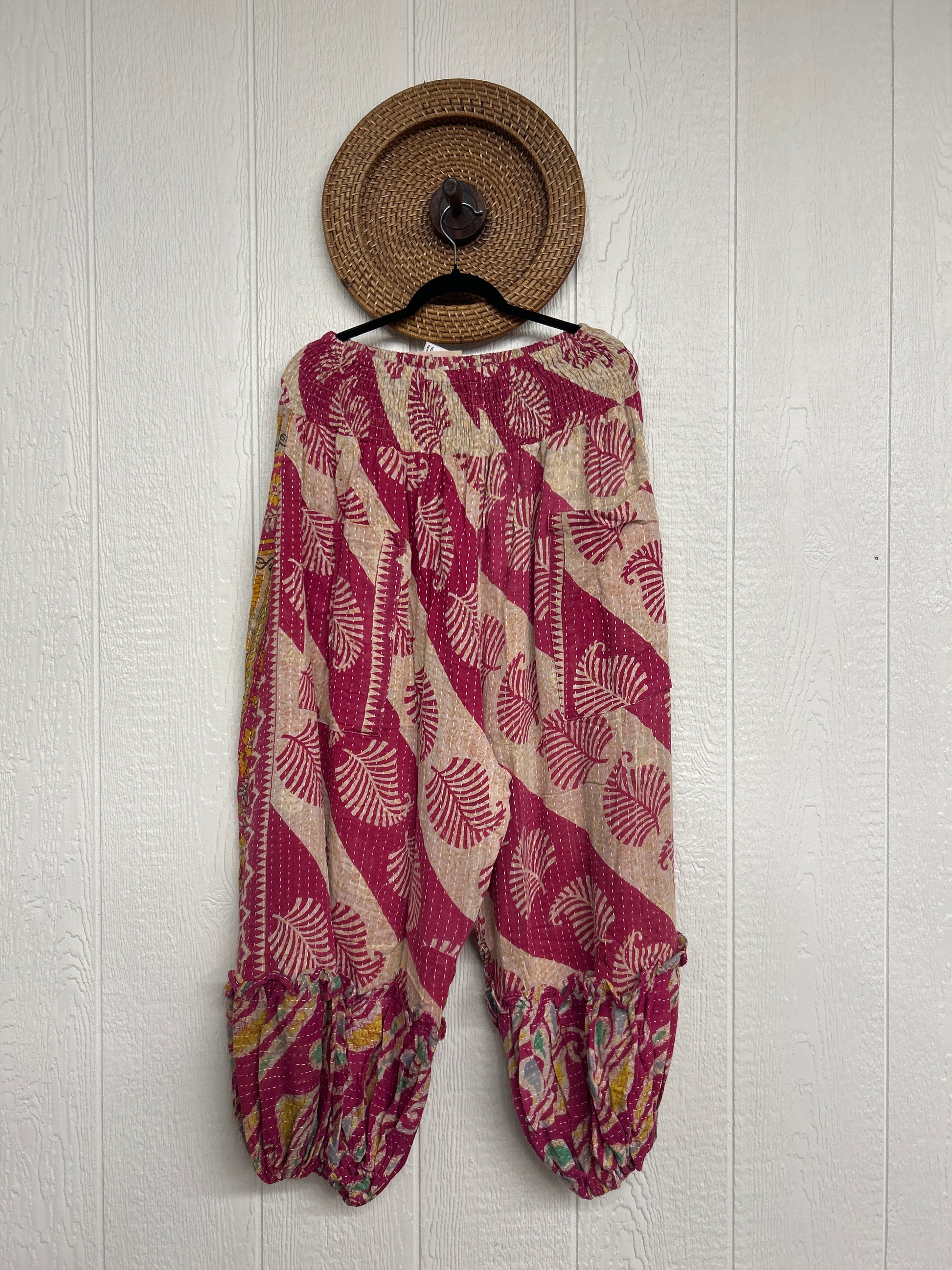Crafted from our ultra lux kantha stitched vintage cotton sari these pants feature exterior slouchy pockets, a stretchy waistband and an elastic ankle opening. Dress these dream pants up or down to become the ultimate vibe!