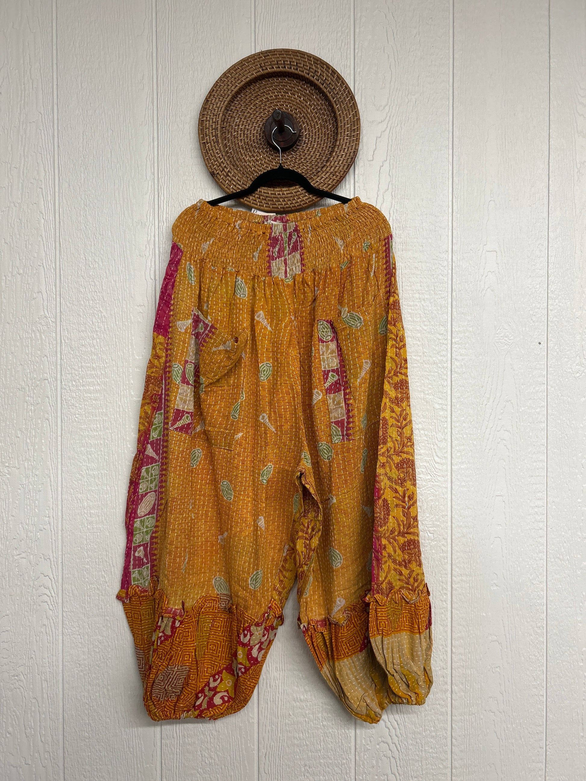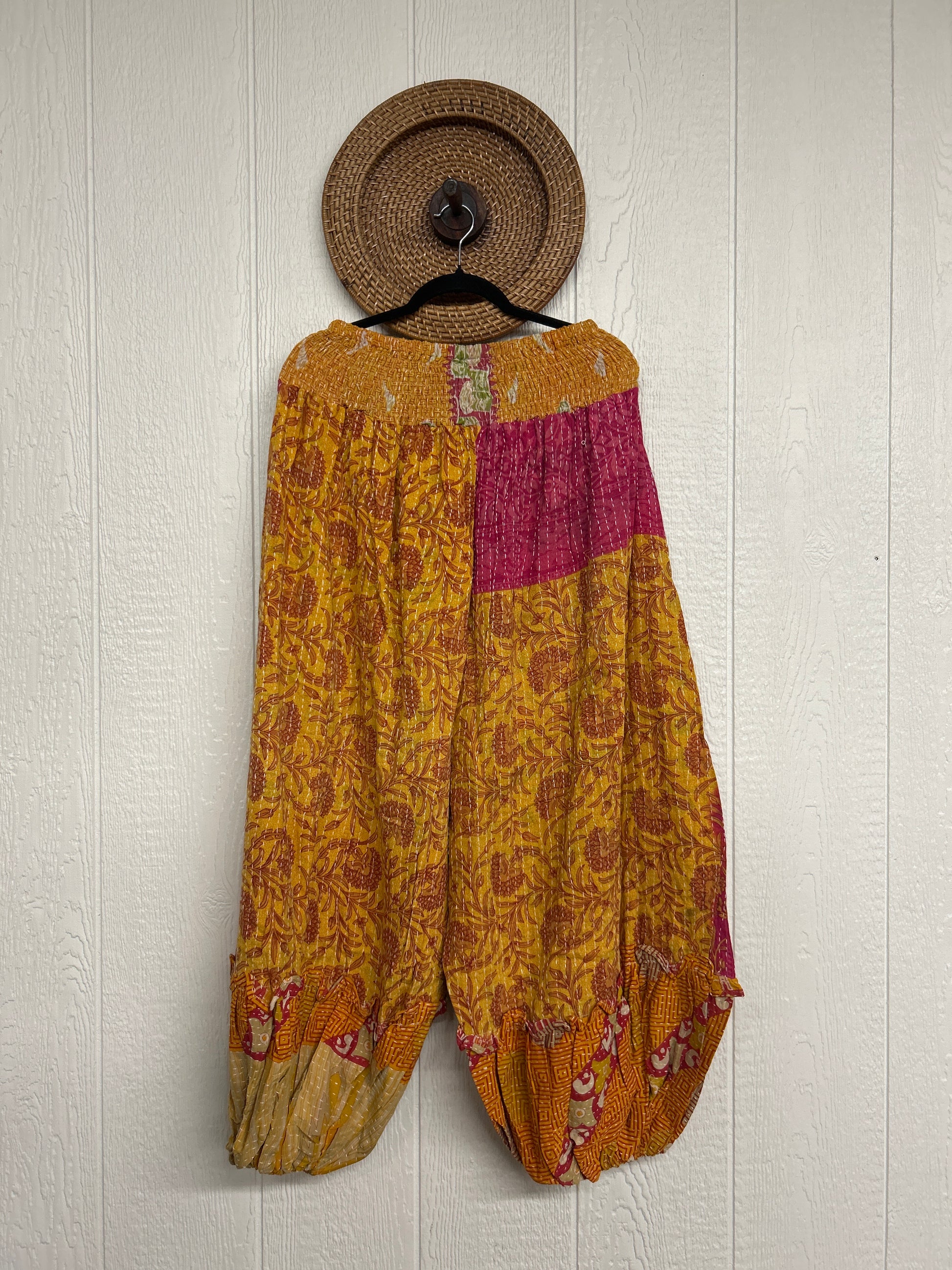 Crafted from our ultra lux kantha stitched vintage cotton sari these pants feature exterior slouchy pockets, a stretchy waistband and an elastic ankle opening. Dress these dream pants up or down to become the ultimate vibe!