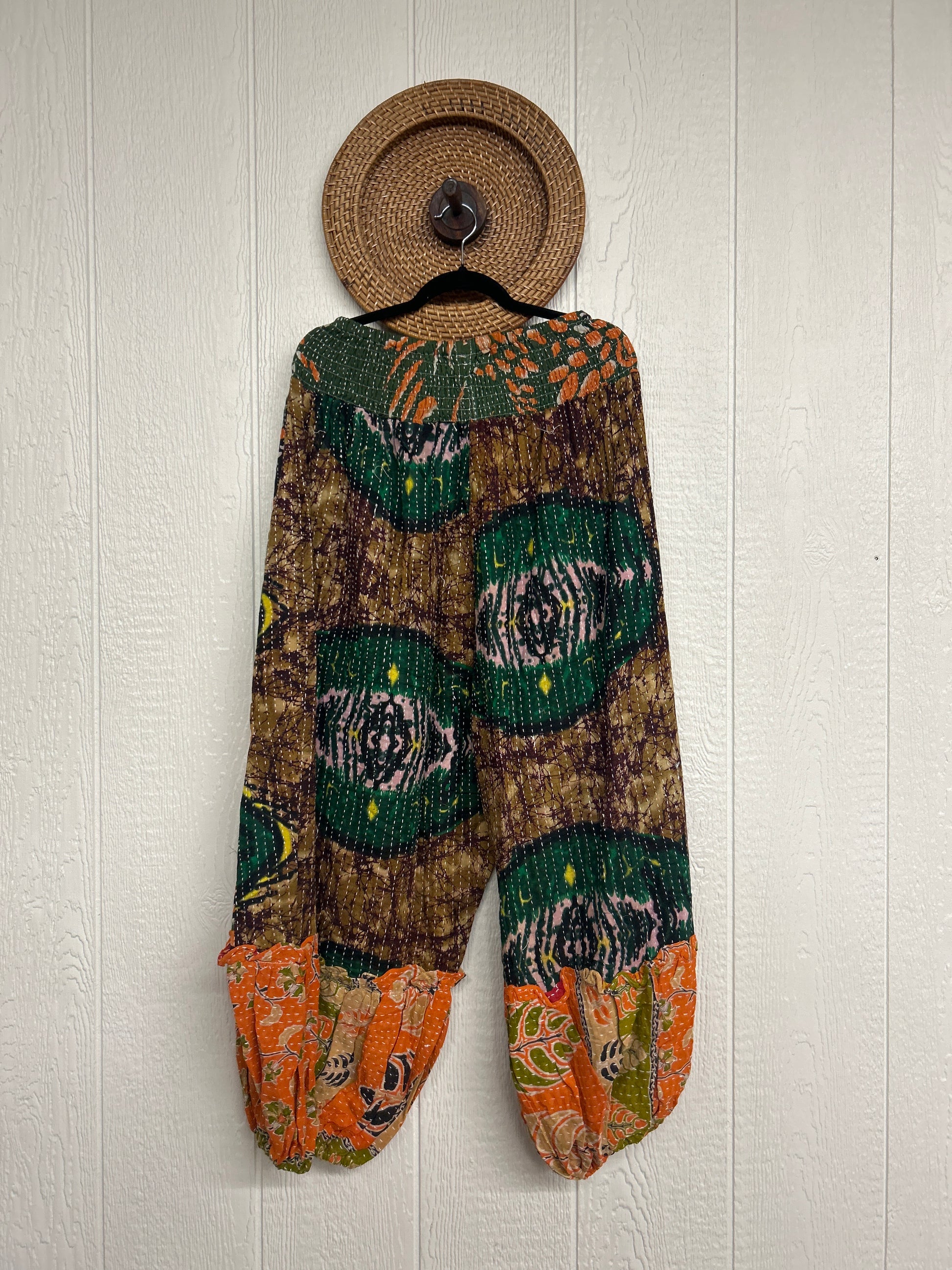 Crafted from our ultra lux kantha stitched vintage cotton sari these pants feature exterior slouchy pockets, a stretchy waistband and an elastic ankle opening. Dress these dream pants up or down to become the ultimate vibe!