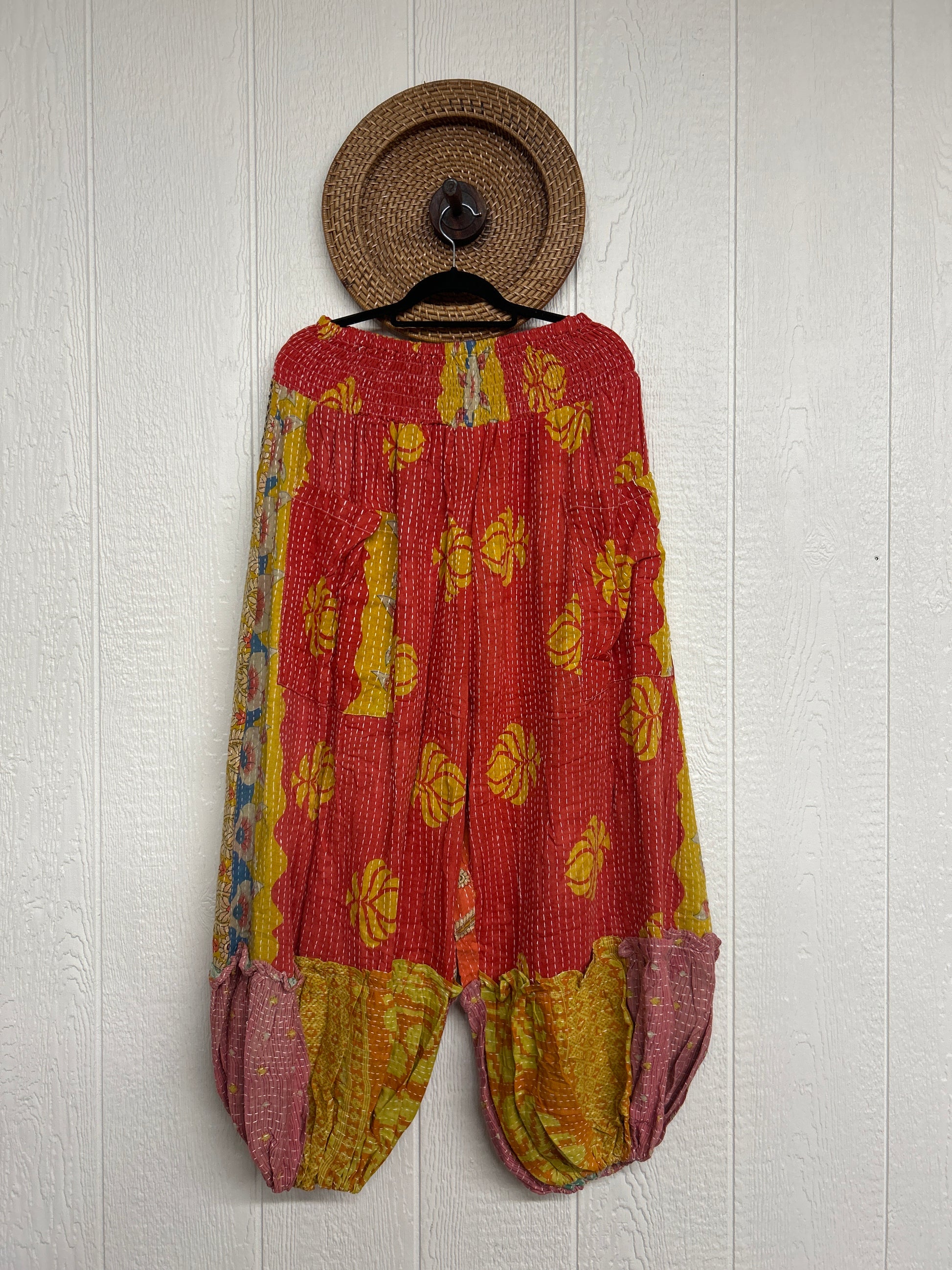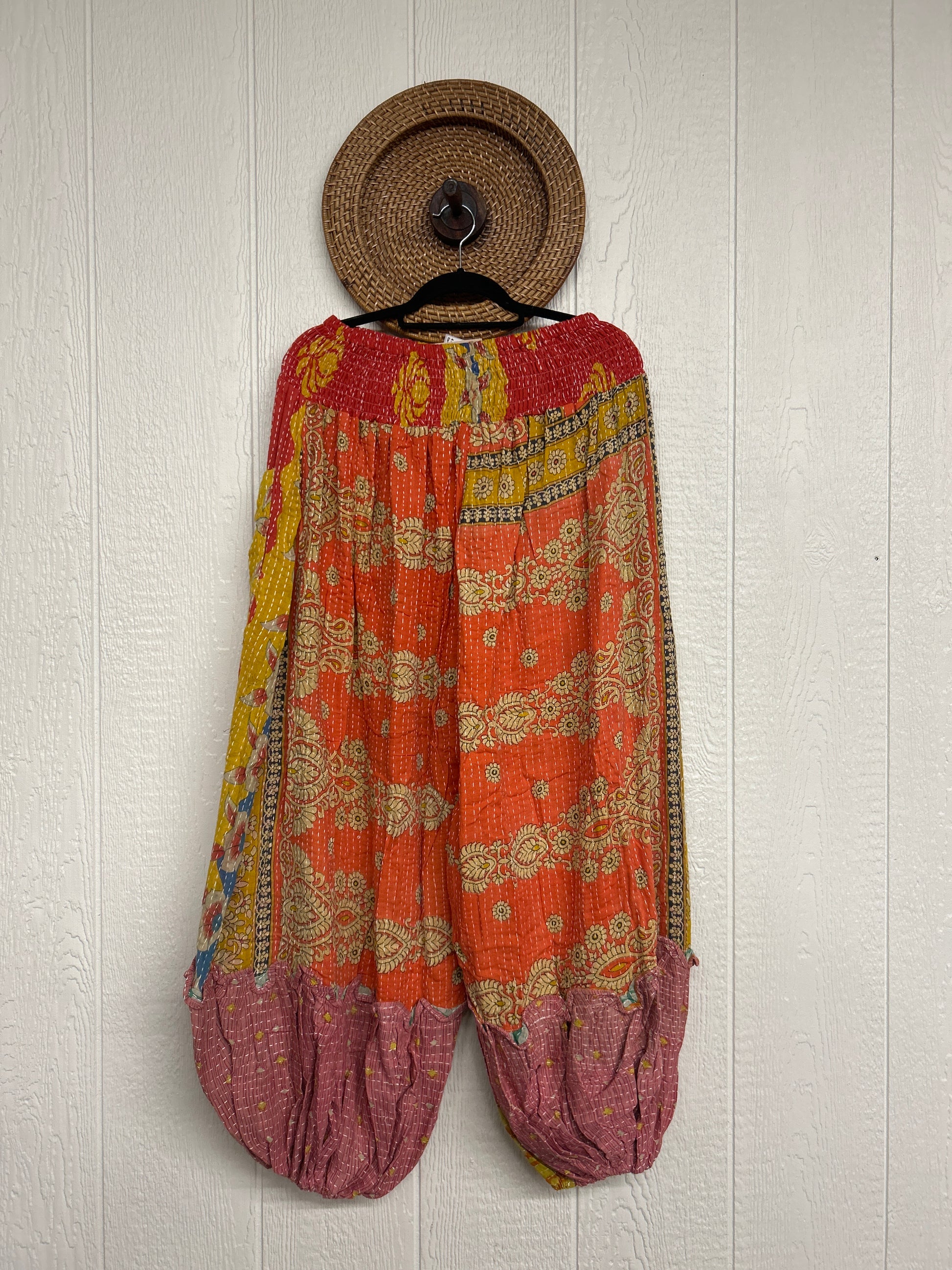 Crafted from our ultra lux kantha stitched vintage cotton sari these pants feature exterior slouchy pockets, a stretchy waistband and an elastic ankle opening. Dress these dream pants up or down to become the ultimate vibe!