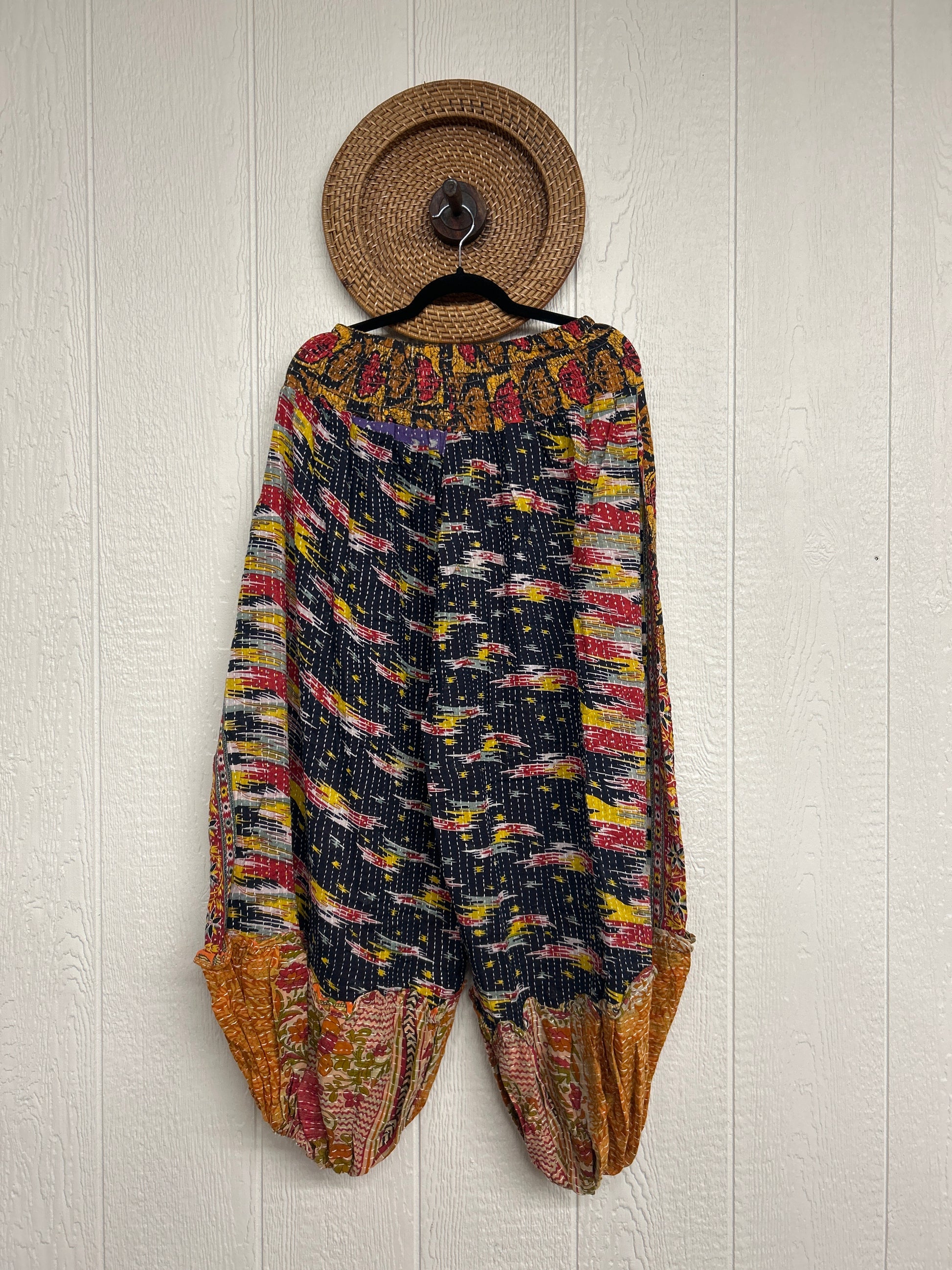 Crafted from our ultra lux kantha stitched vintage cotton sari these pants feature exterior slouchy pockets, a stretchy waistband and an elastic ankle opening. Dress these dream pants up or down to become the ultimate vibe!