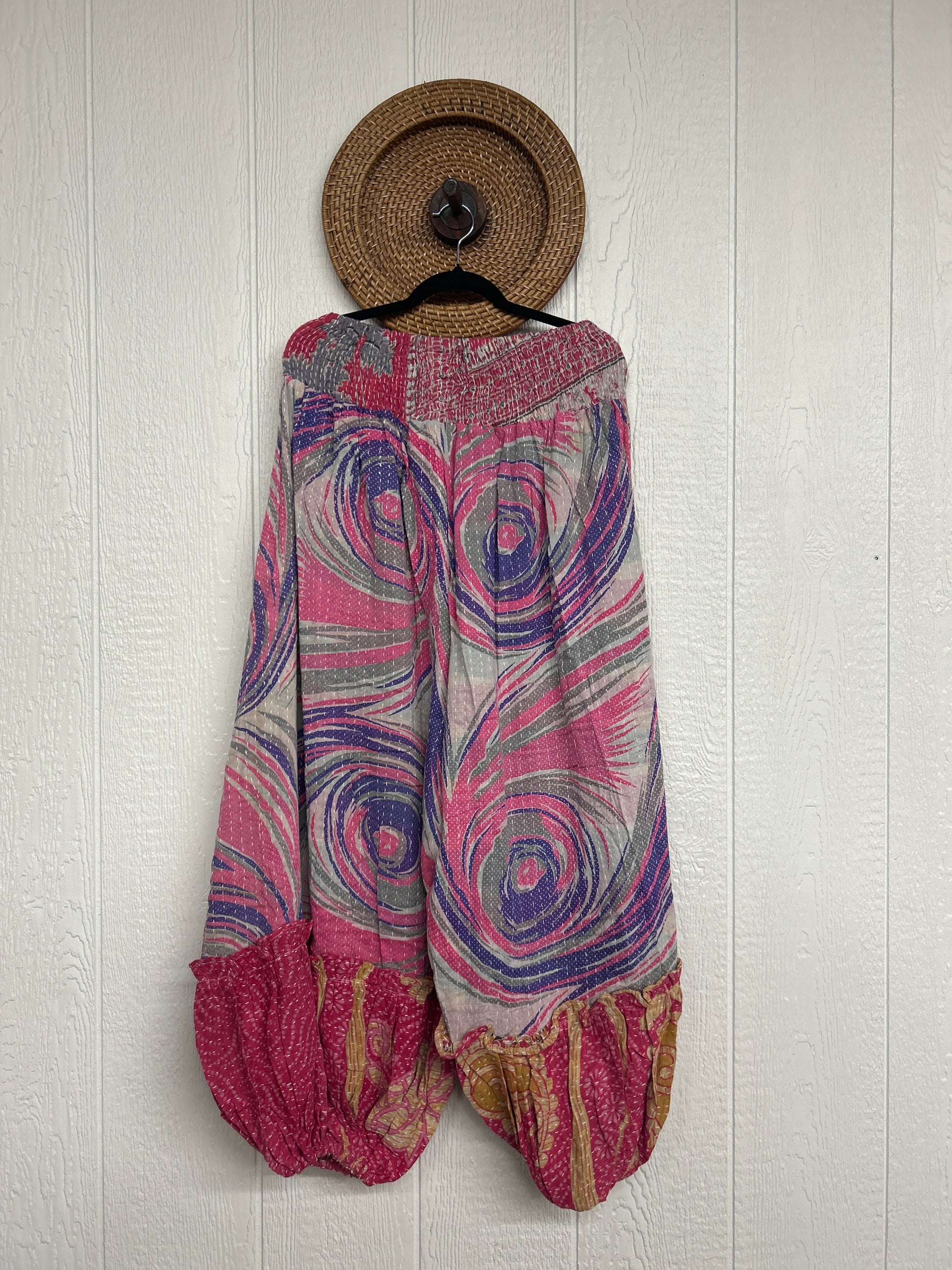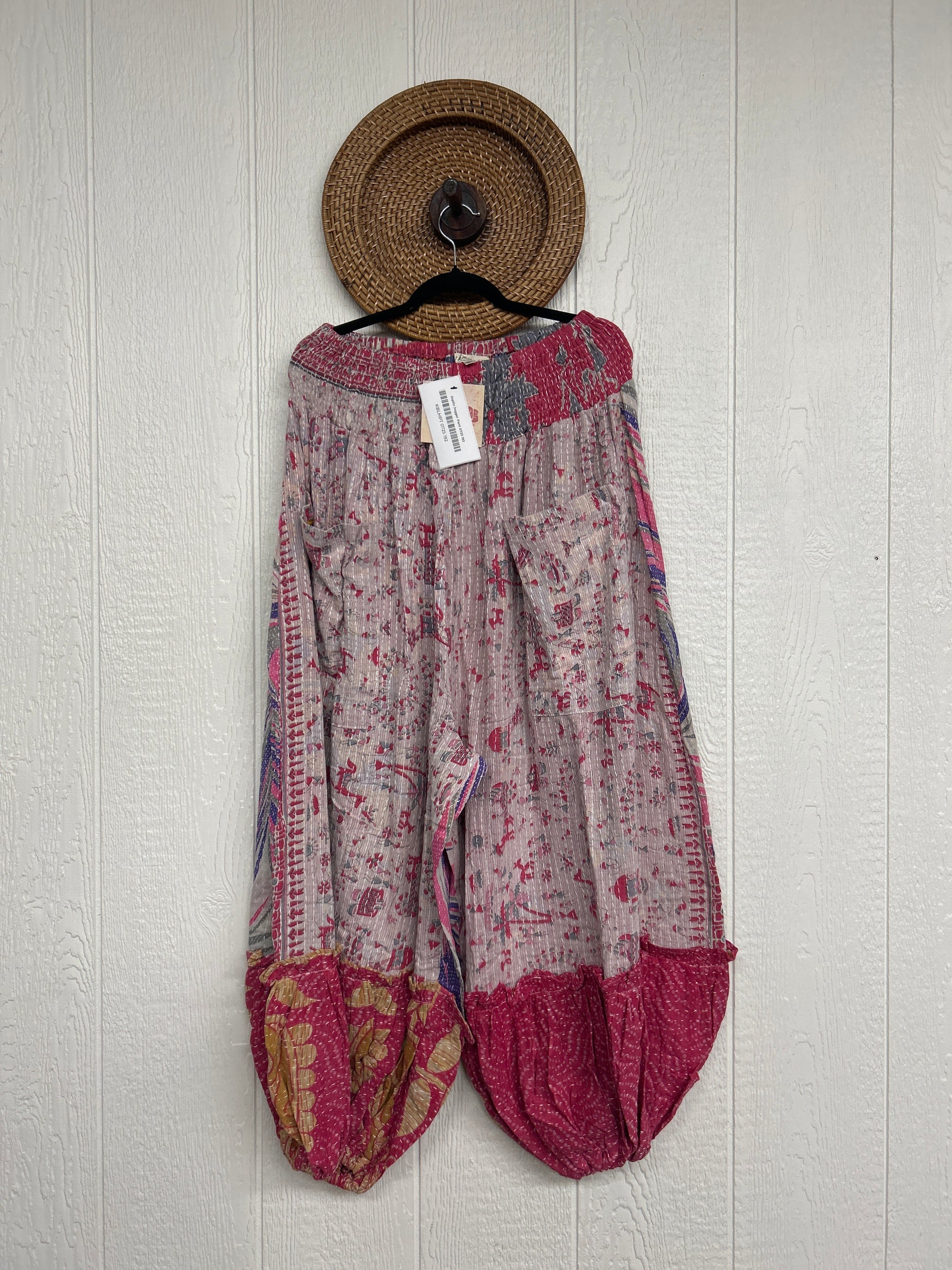 Crafted from our ultra lux kantha stitched vintage cotton sari these pants feature exterior slouchy pockets, a stretchy waistband and an elastic ankle opening. Dress these dream pants up or down to become the ultimate vibe!