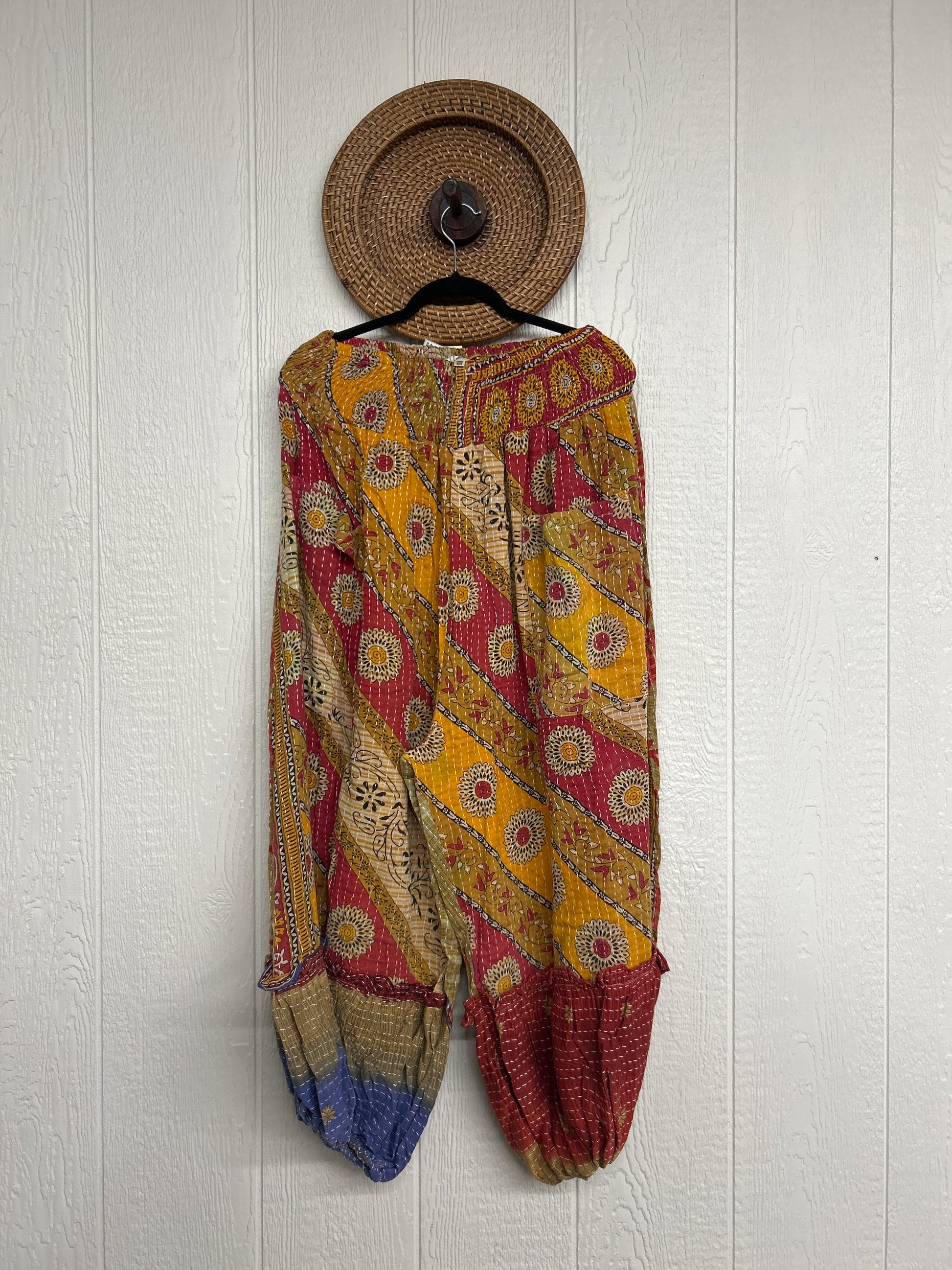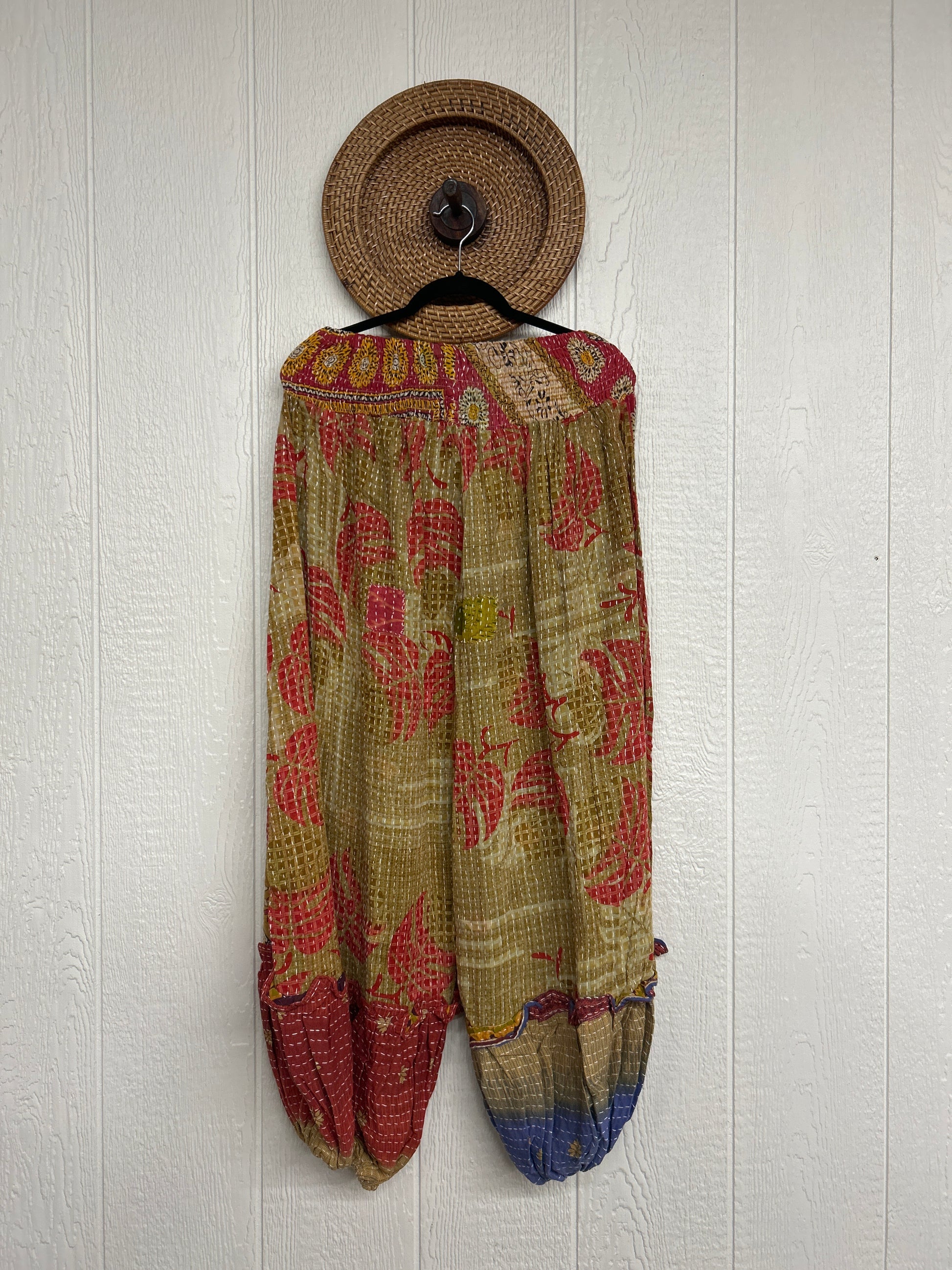 Crafted from our ultra lux kantha stitched vintage cotton sari these pants feature exterior slouchy pockets, a stretchy waistband and an elastic ankle opening. Dress these dream pants up or down to become the ultimate vibe!