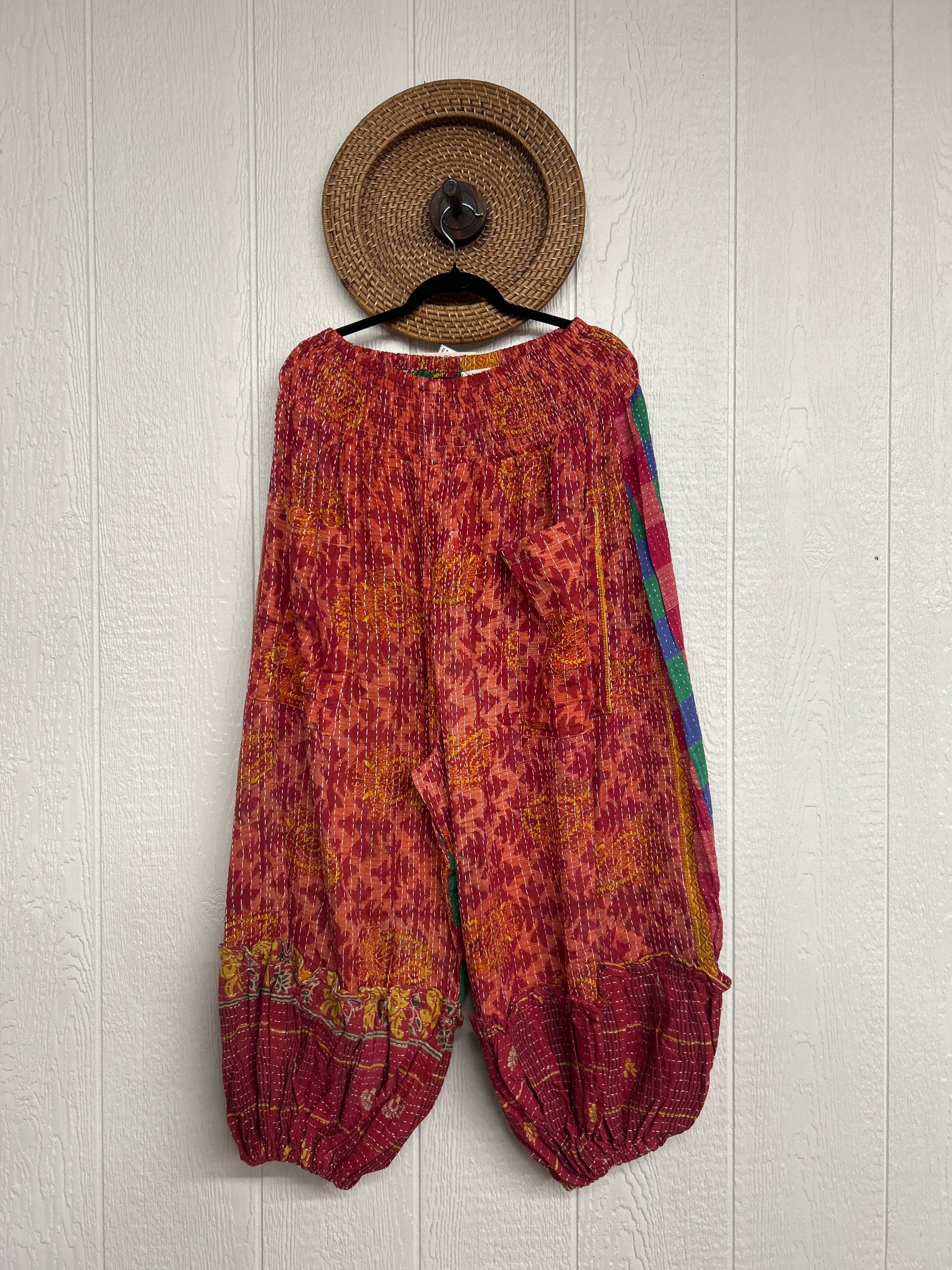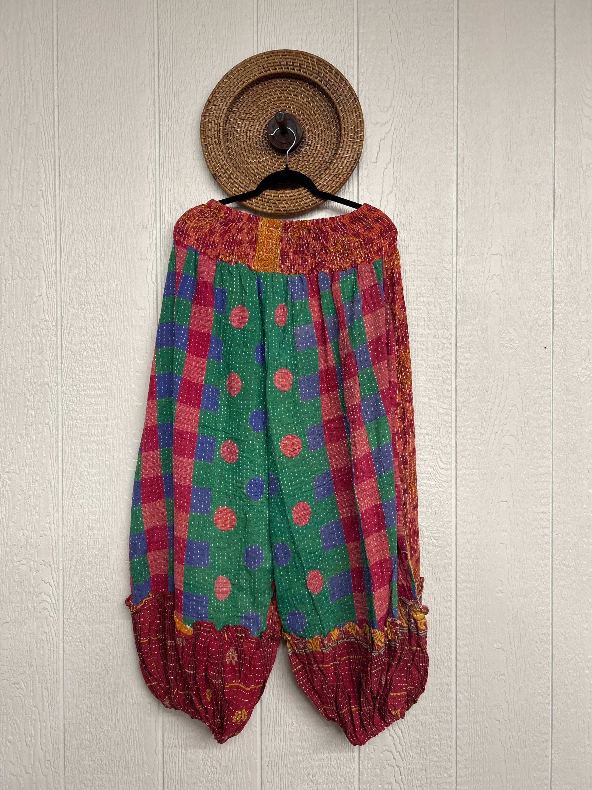 Crafted from our ultra lux kantha stitched vintage cotton sari these pants feature exterior slouchy pockets, a stretchy waistband and an elastic ankle opening. Dress these dream pants up or down to become the ultimate vibe!