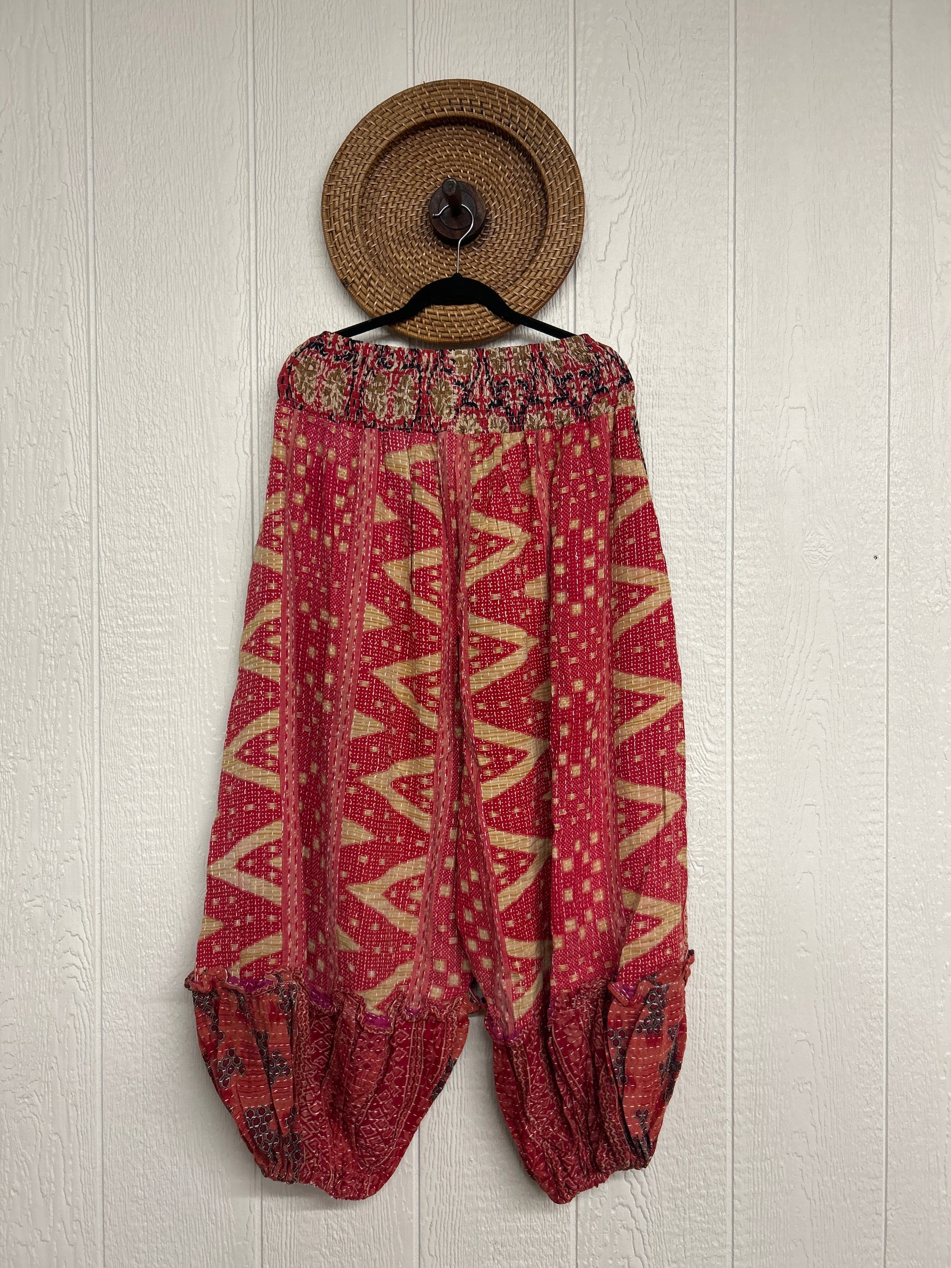 Crafted from our ultra lux kantha stitched vintage cotton sari these pants feature exterior slouchy pockets, a stretchy waistband and an elastic ankle opening. Dress these dream pants up or down to become the ultimate vibe!