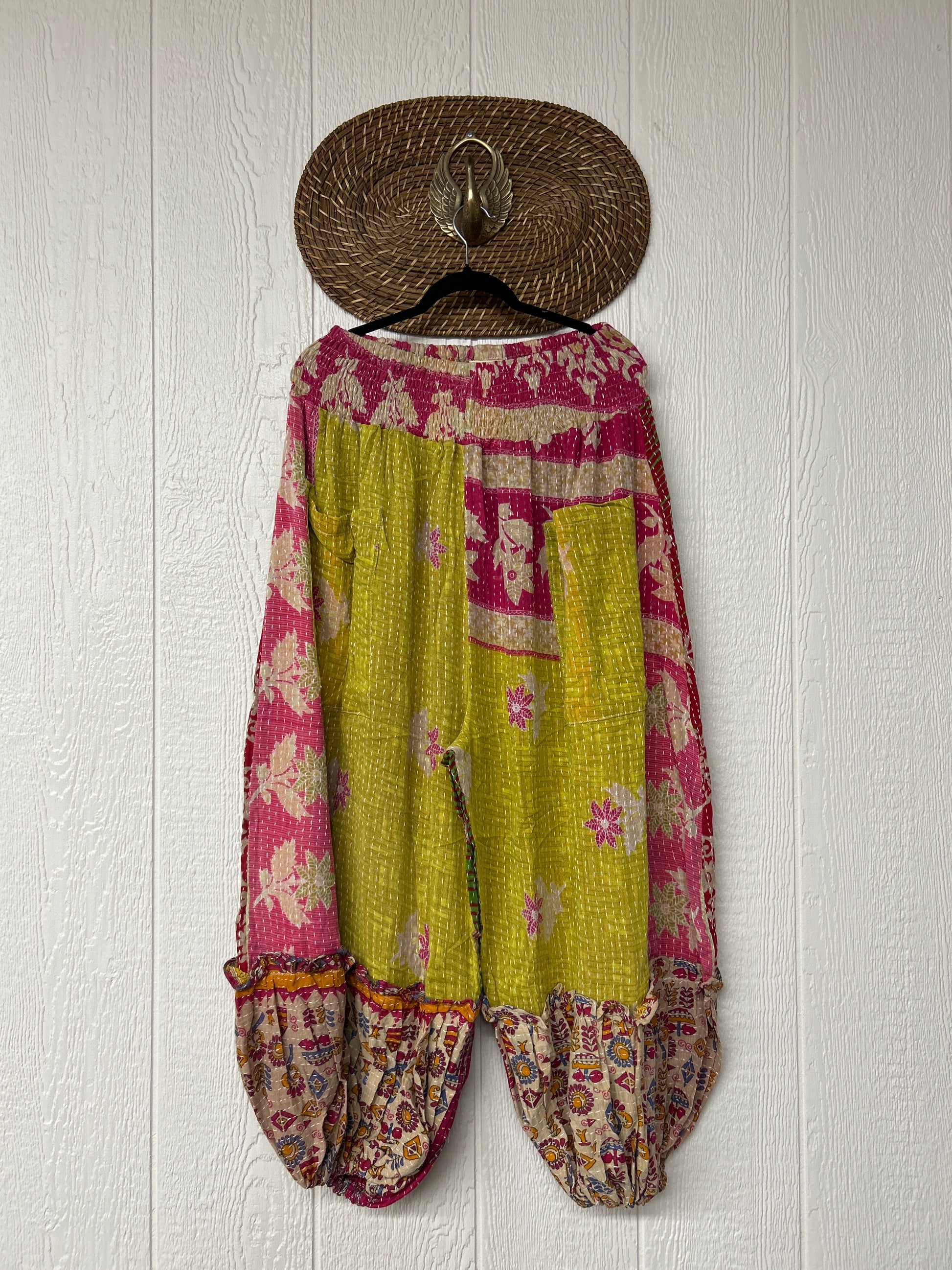 Crafted from our ultra lux kantha stitched vintage cotton sari these pants feature exterior slouchy pockets, a stretchy waistband and an elastic ankle opening. Dress these dream pants up or down to become the ultimate vibe!