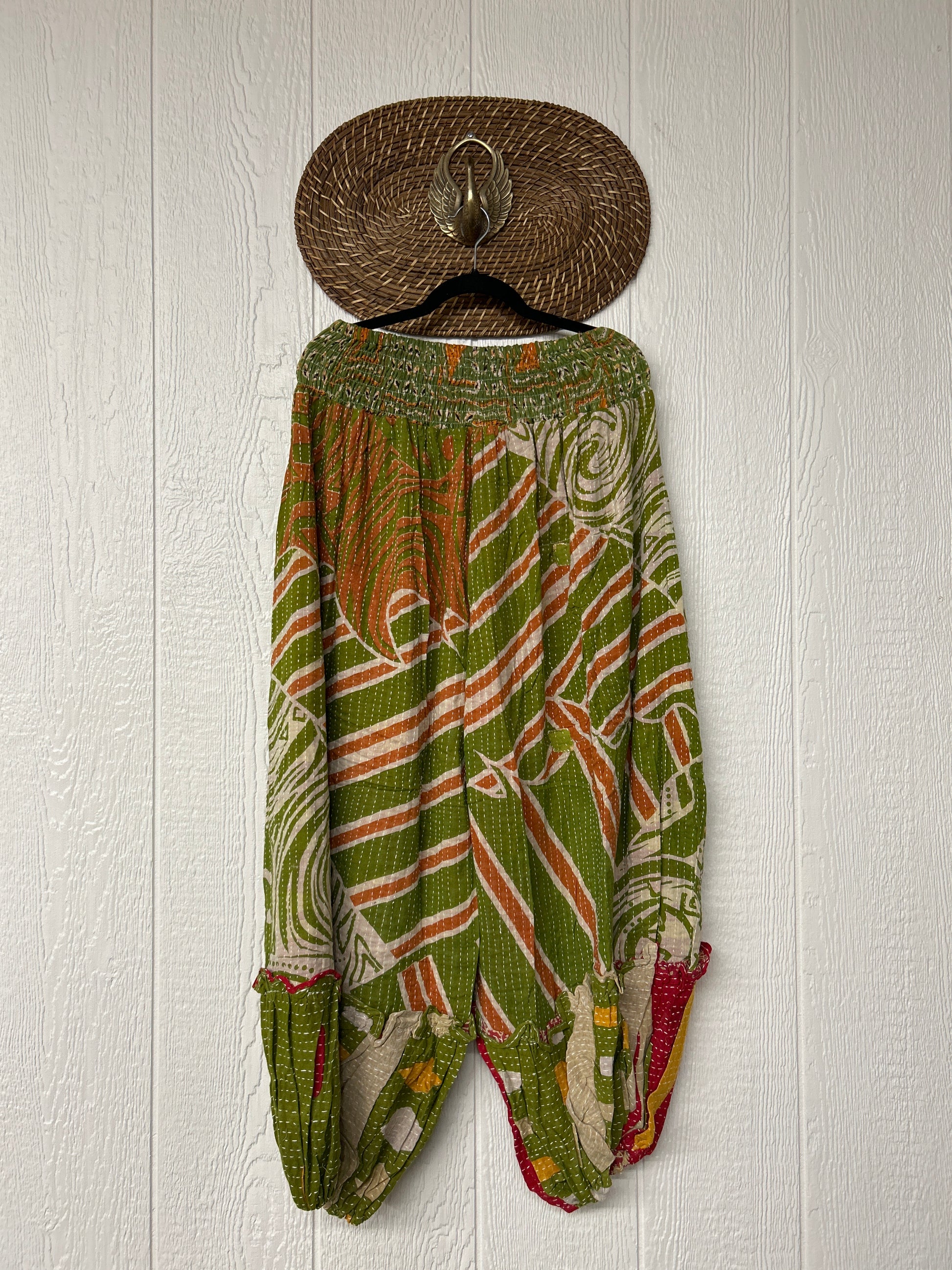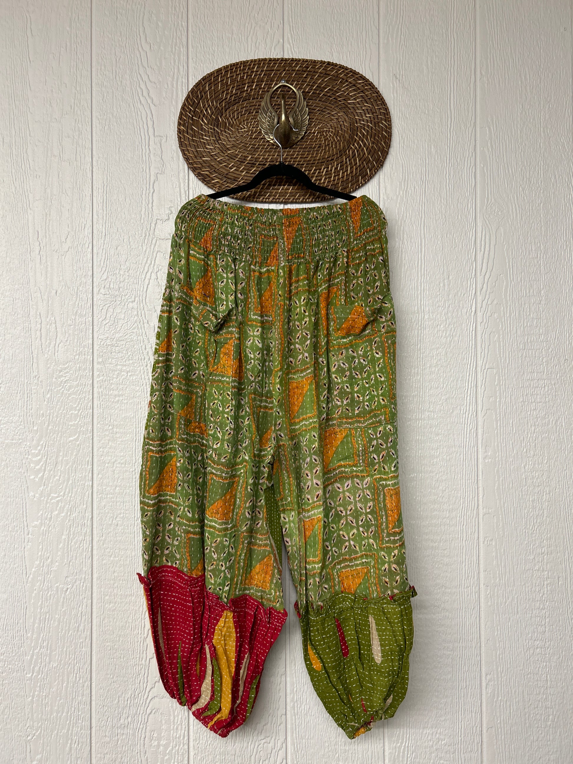Crafted from our ultra lux kantha stitched vintage cotton sari these pants feature exterior slouchy pockets, a stretchy waistband and an elastic ankle opening. Dress these dream pants up or down to become the ultimate vibe!