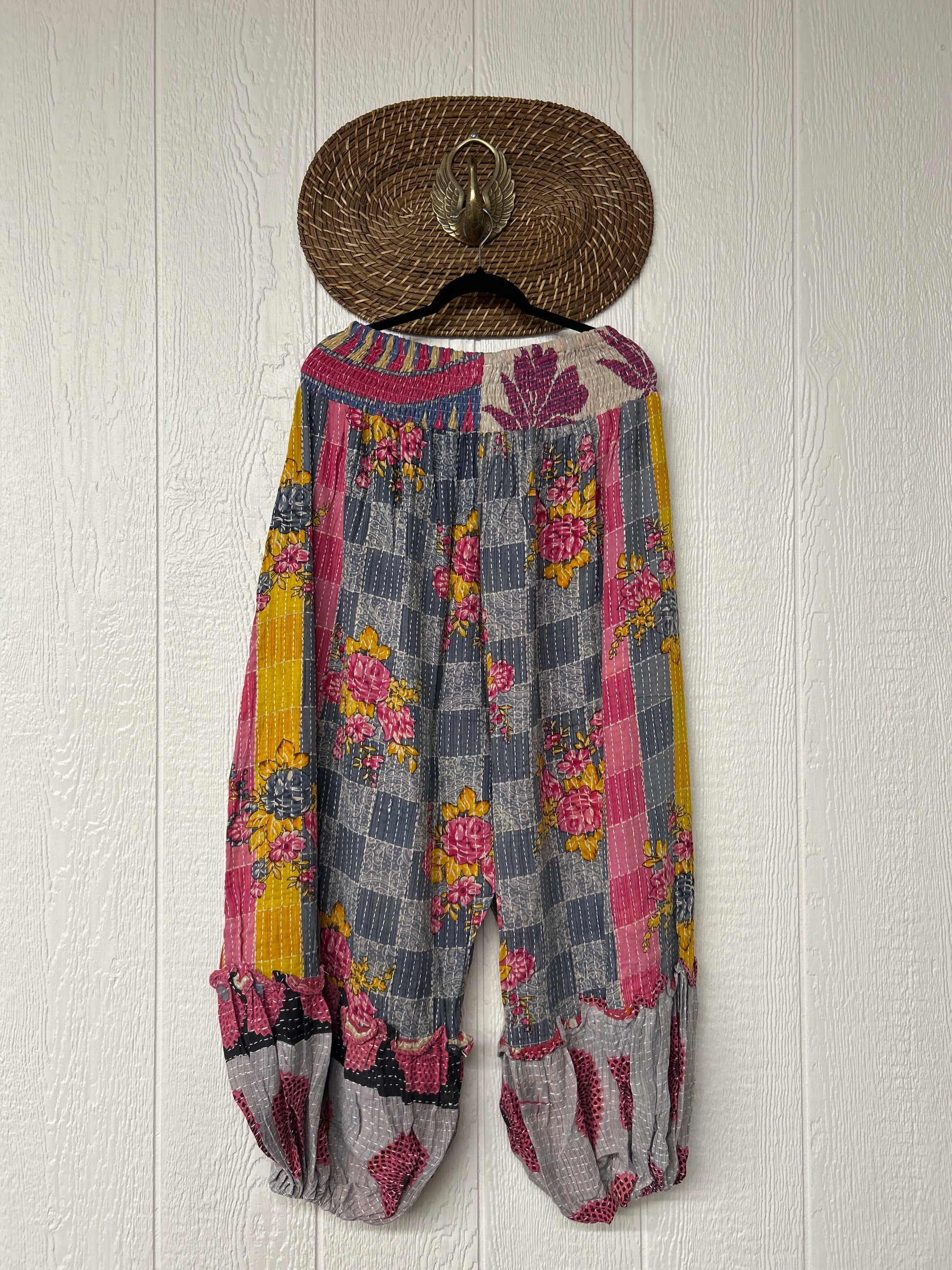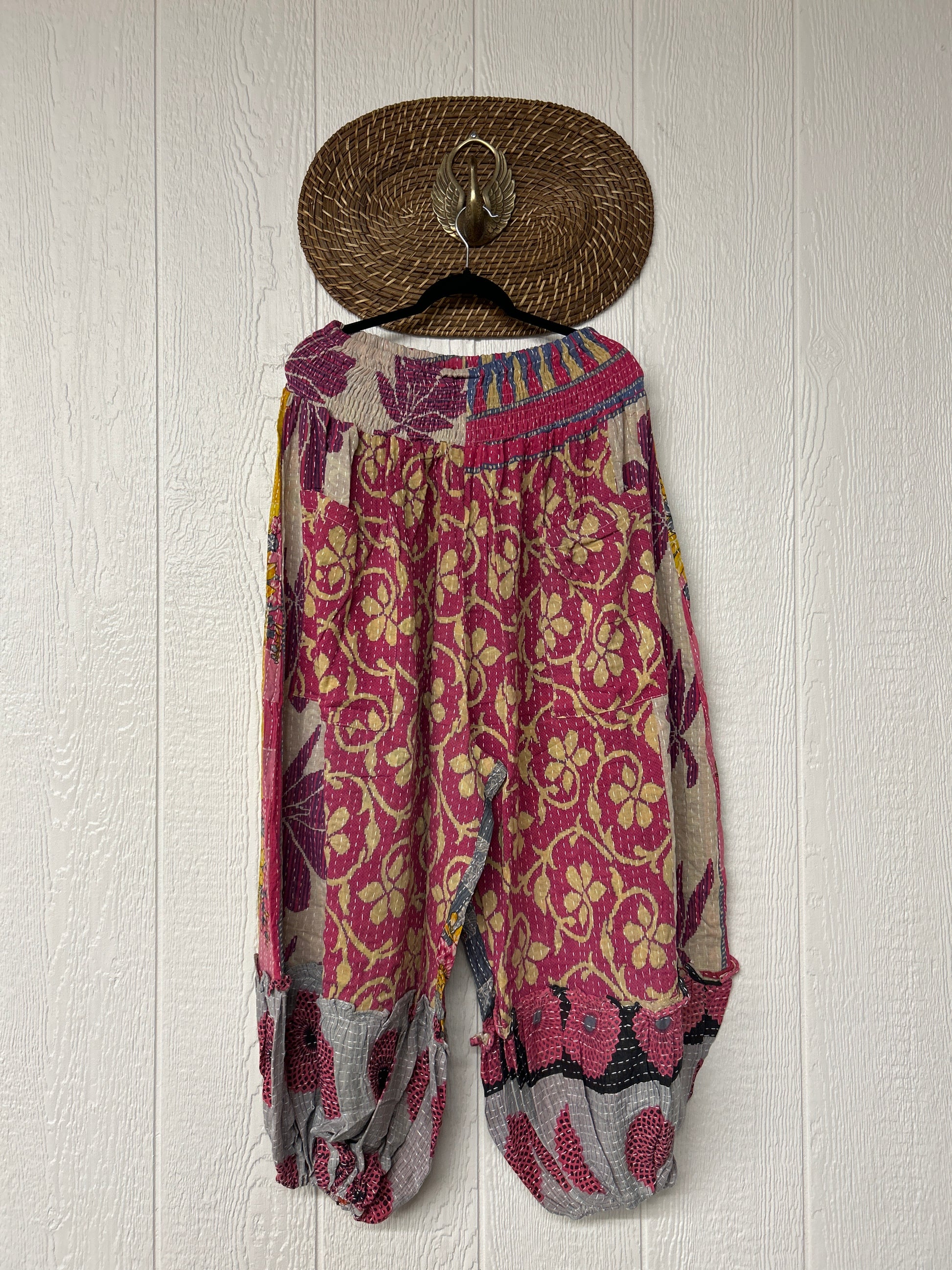 Crafted from our ultra lux kantha stitched vintage cotton sari these pants feature exterior slouchy pockets, a stretchy waistband and an elastic ankle opening. Dress these dream pants up or down to become the ultimate vibe!
