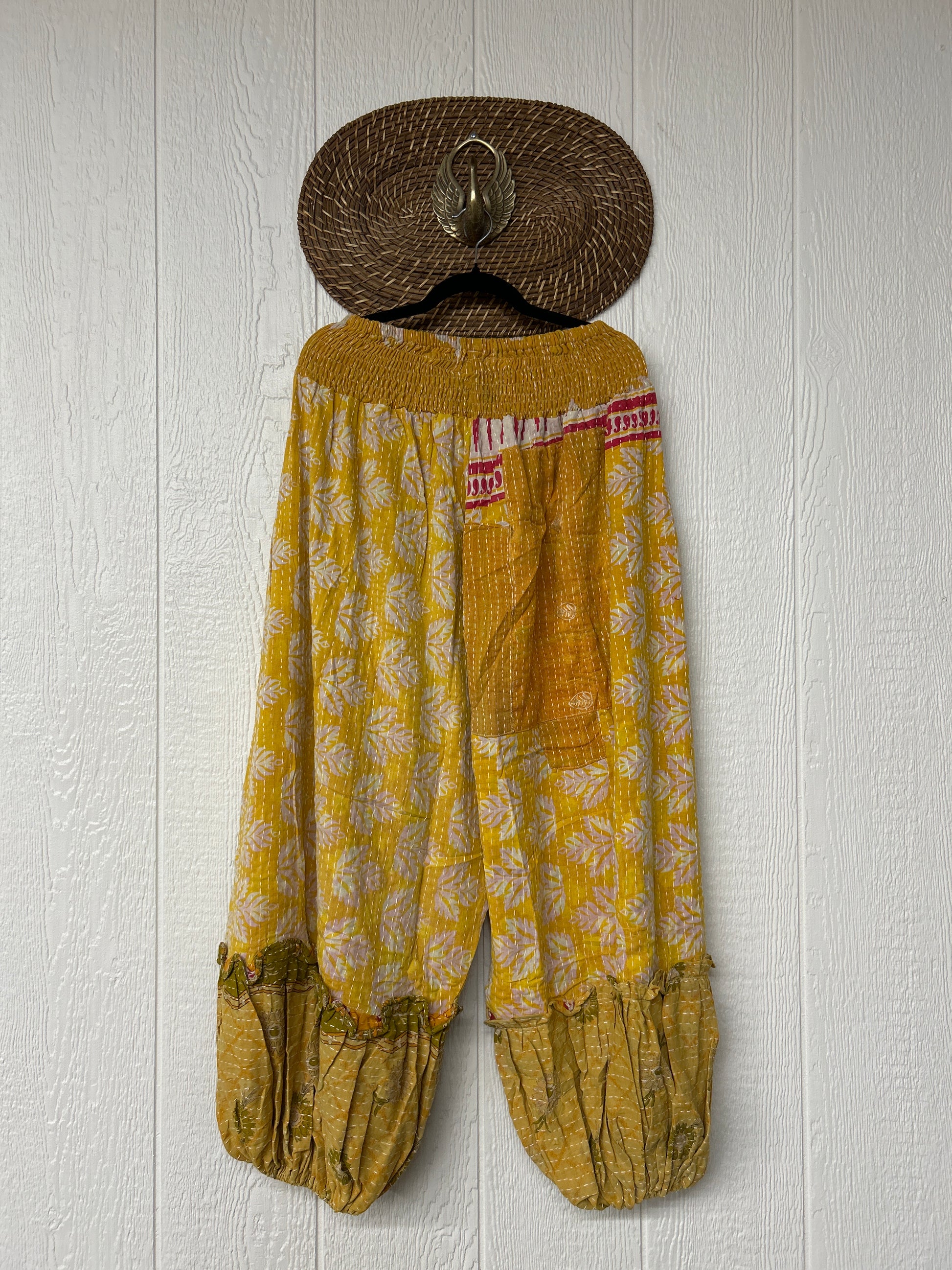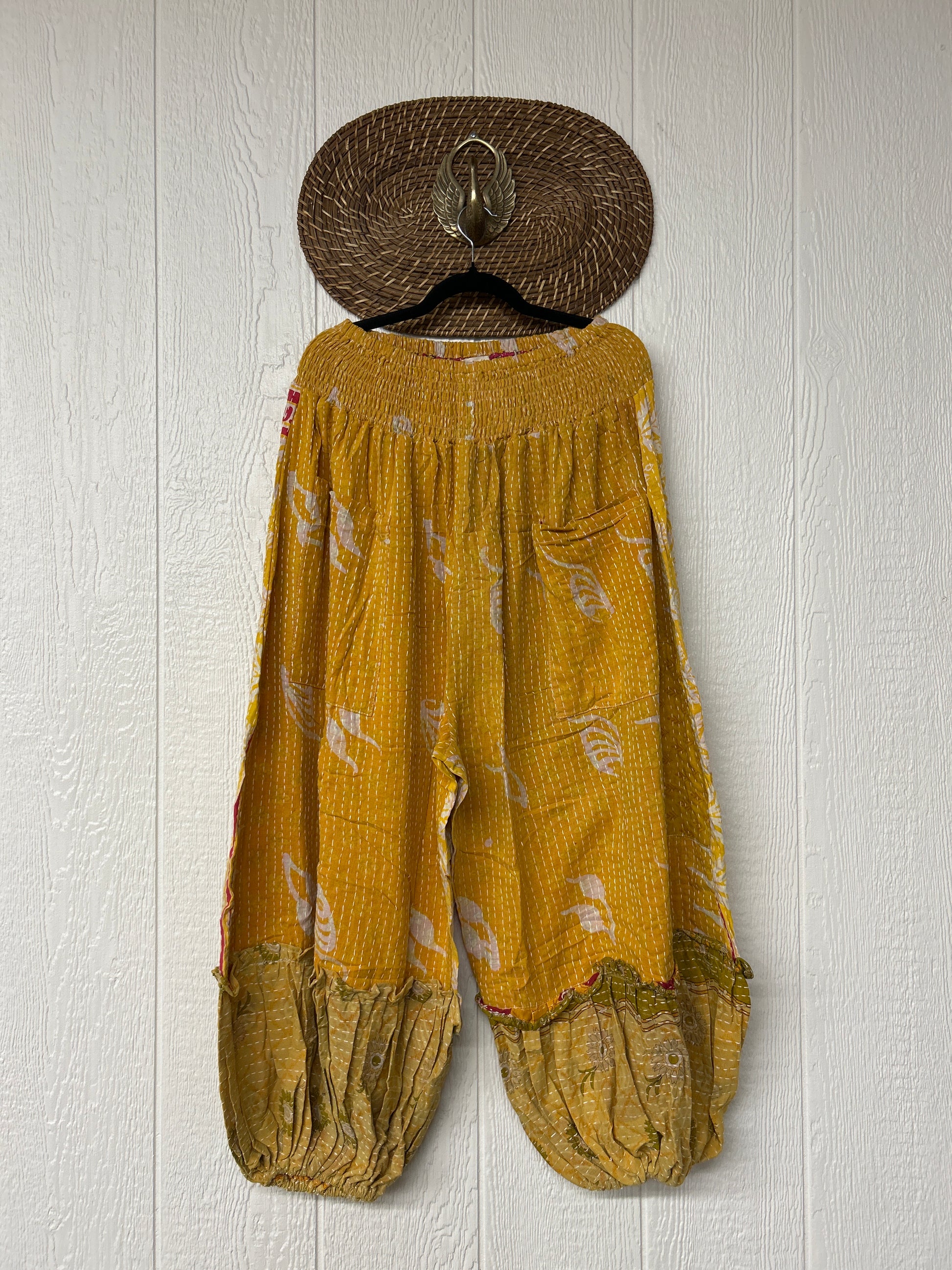 Crafted from our ultra lux kantha stitched vintage cotton sari these pants feature exterior slouchy pockets, a stretchy waistband and an elastic ankle opening. Dress these dream pants up or down to become the ultimate vibe!