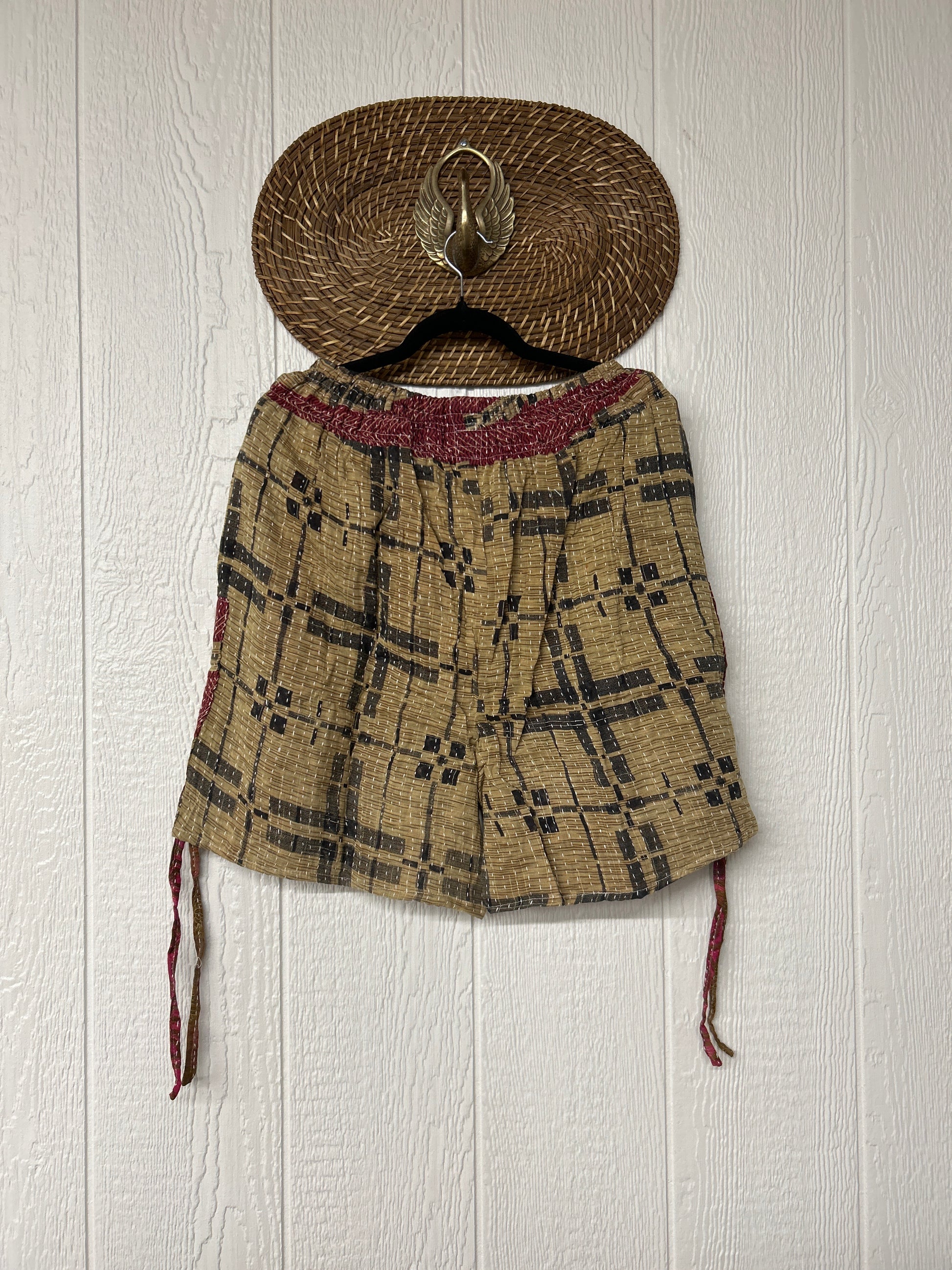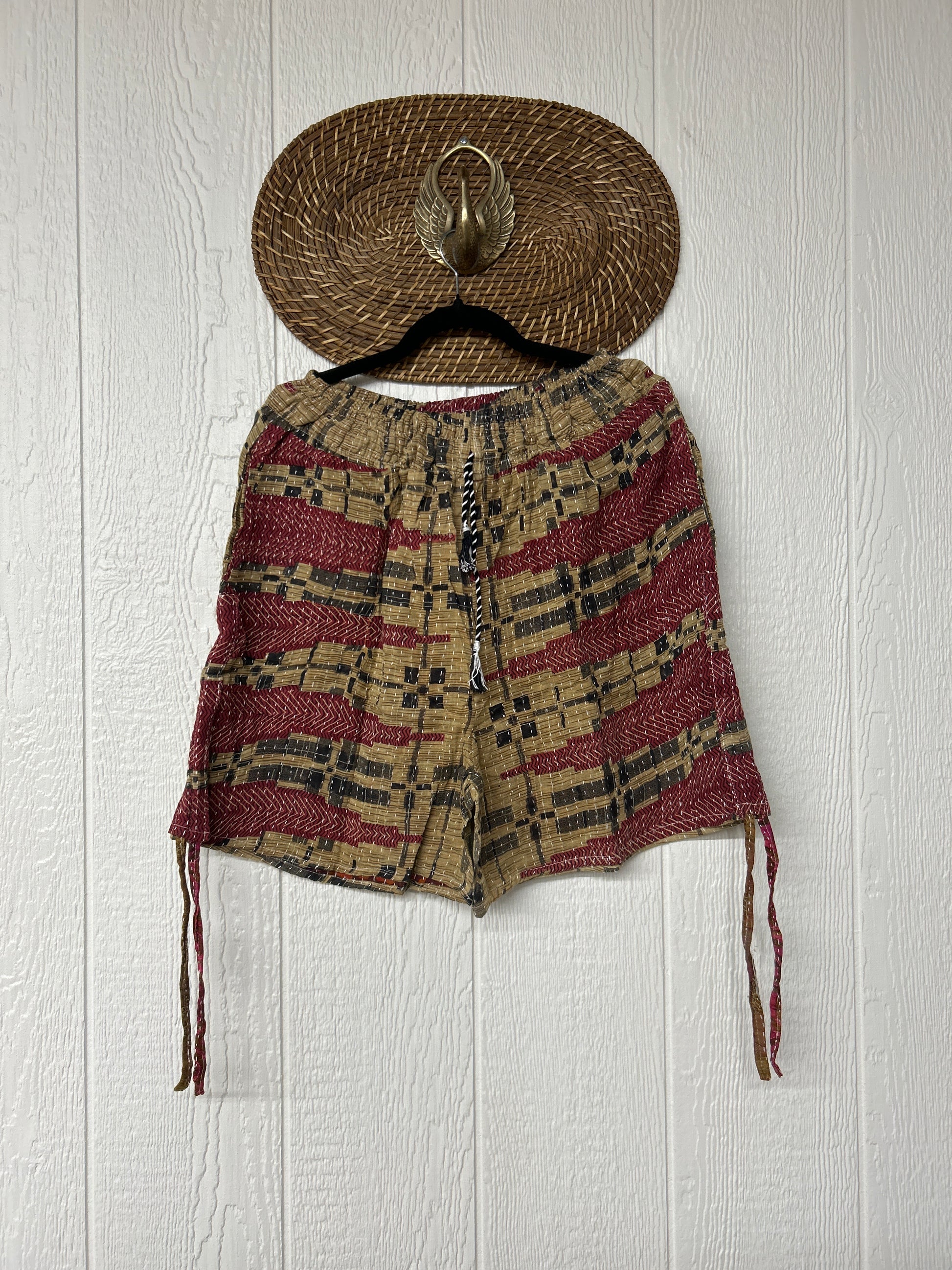 Crafted from our ultra lux vintage cotton Kantha stitched sari. Features interior pockets, a smocked waistband that is soft against the skin with an adjustable drawstring. This fully customizable piece also has a cinch drawstring on the outer leg so you can make the shorts longer or shorter. We are obsessed!