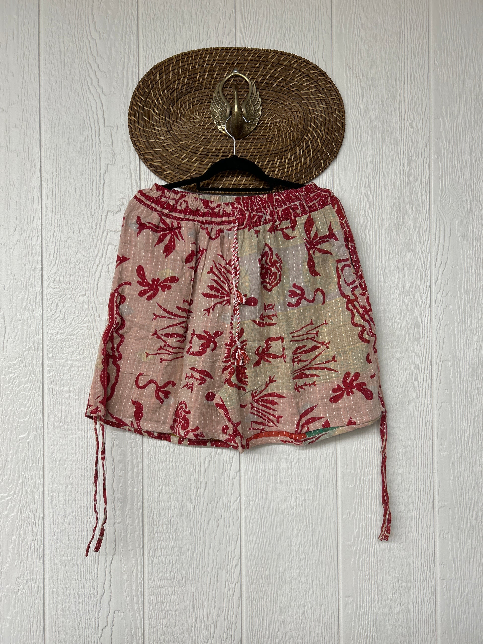 Crafted from our ultra lux vintage cotton Kantha stitched sari. Features interior pockets, a smocked waistband that is soft against the skin with an adjustable drawstring. This fully customizable piece also has a cinch drawstring on the outer leg so you can make the shorts longer or shorter. We are obsessed!