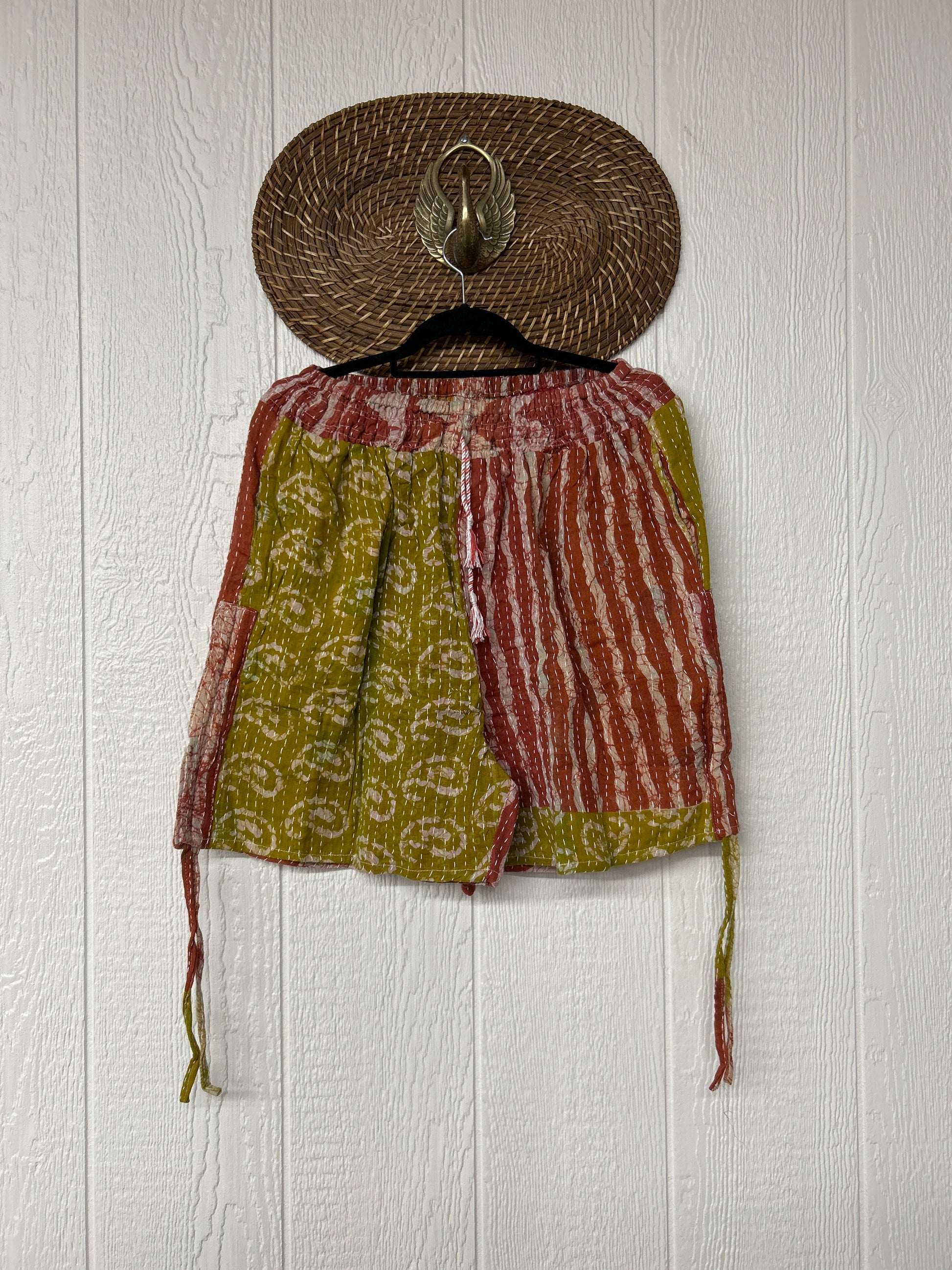 Crafted from our ultra lux vintage cotton Kantha stitched sari. Features interior pockets, a smocked waistband that is soft against the skin with an adjustable drawstring. This fully customizable piece also has a cinch drawstring on the outer leg so you can make the shorts longer or shorter. We are obsessed!