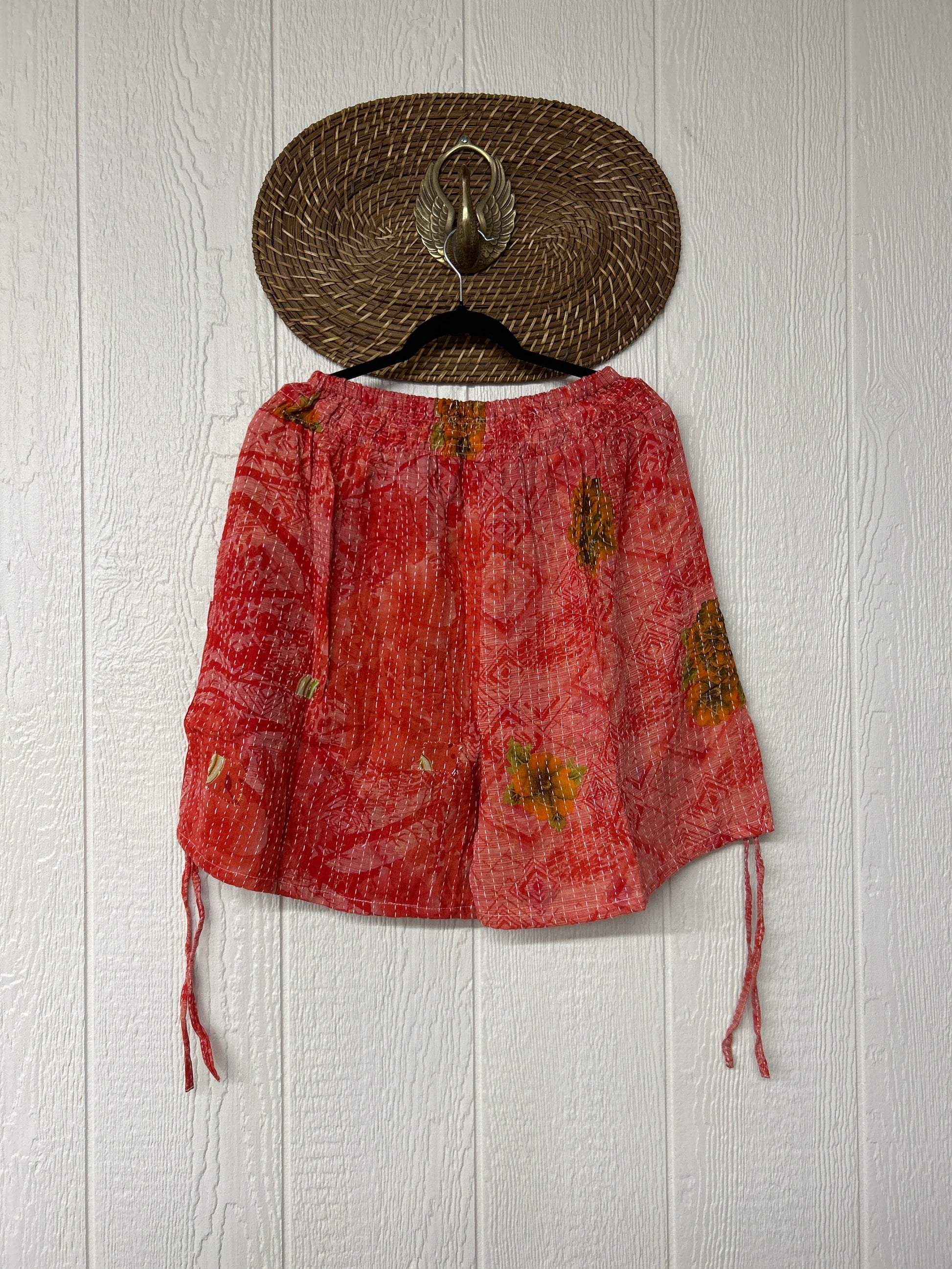 Crafted from our ultra lux vintage cotton Kantha stitched sari. Features interior pockets, a smocked waistband that is soft against the skin with an adjustable drawstring. This fully customizable piece also has a cinch drawstring on the outer leg so you can make the shorts longer or shorter. We are obsessed!