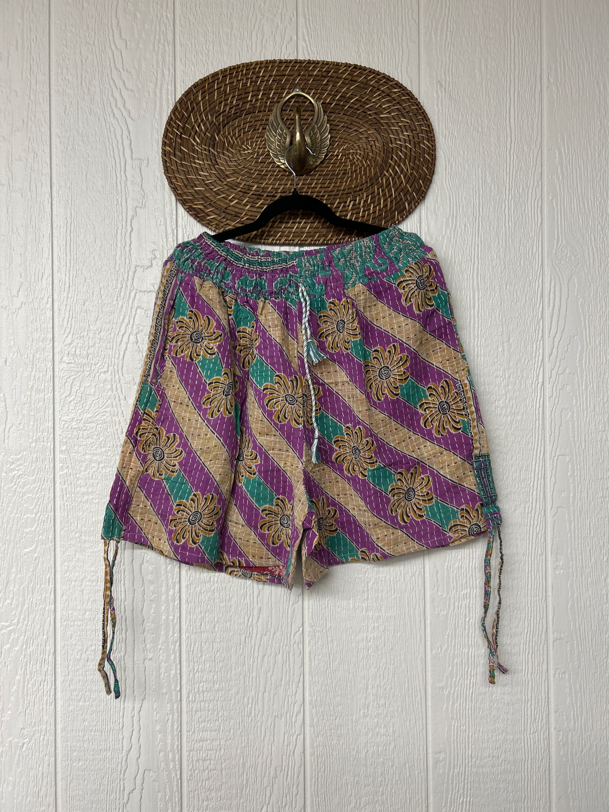 Crafted from our ultra lux vintage cotton Kantha stitched sari. Features interior pockets, a smocked waistband that is soft against the skin with an adjustable drawstring. This fully customizable piece also has a cinch drawstring on the outer leg so you can make the shorts longer or shorter. We are obsessed!